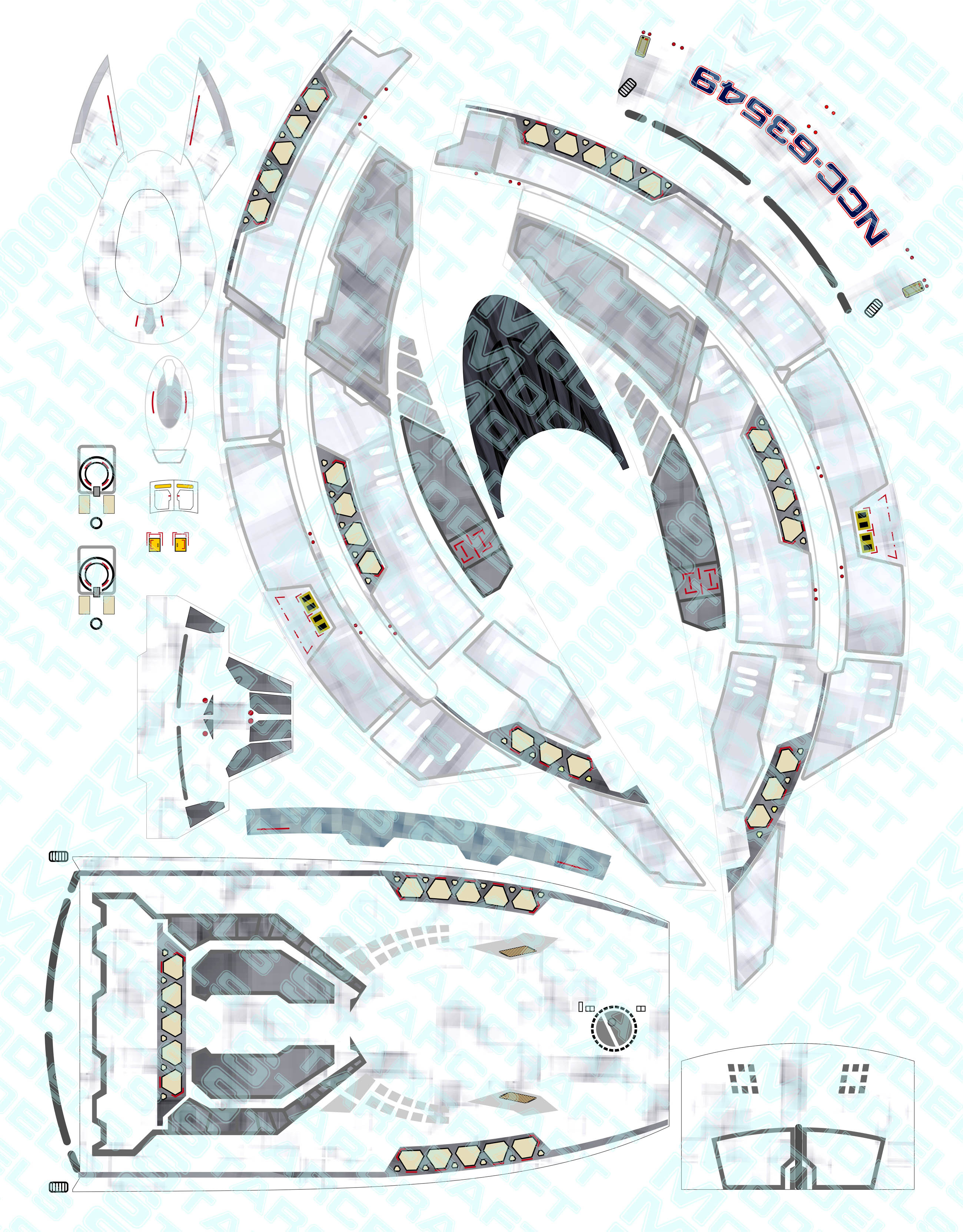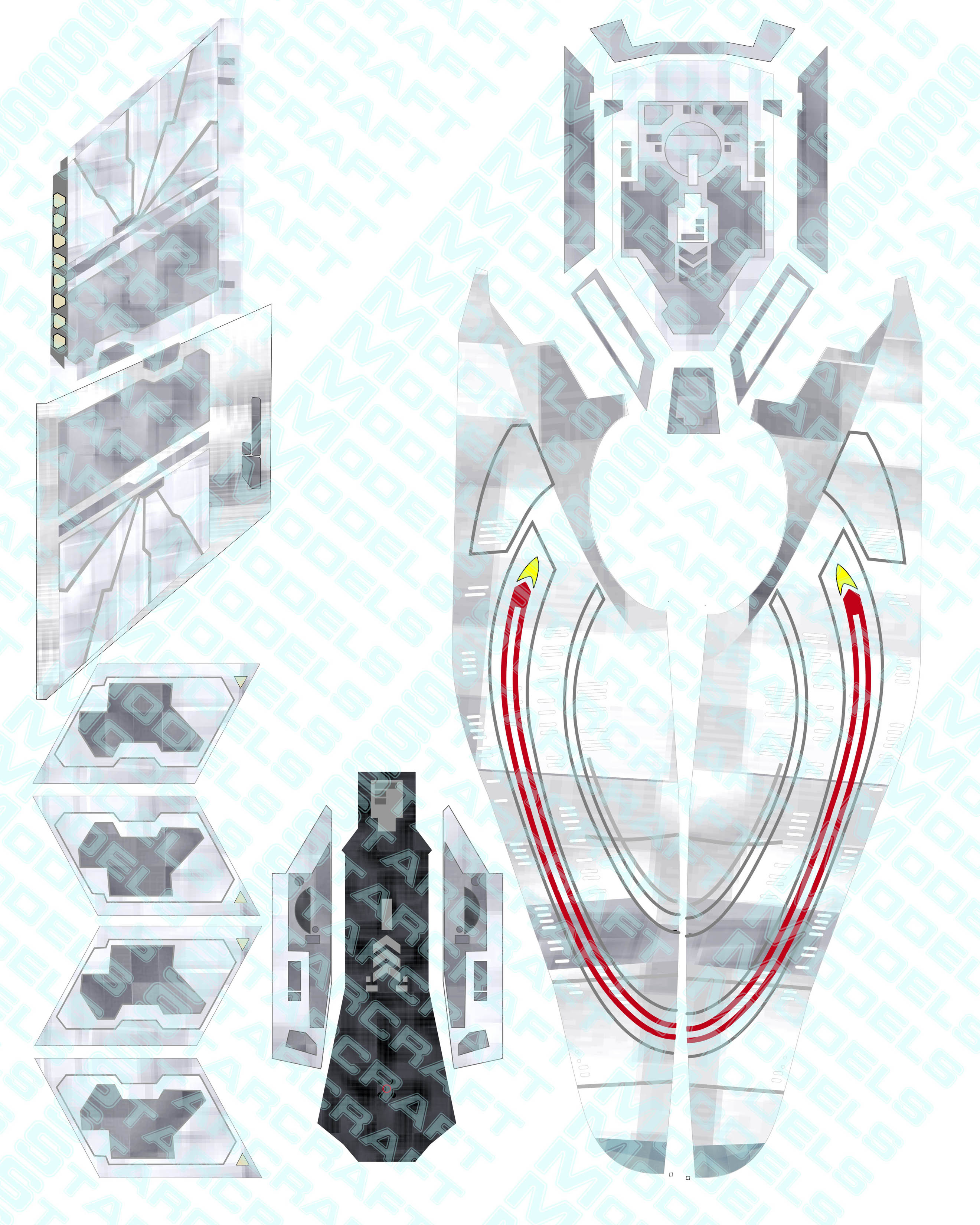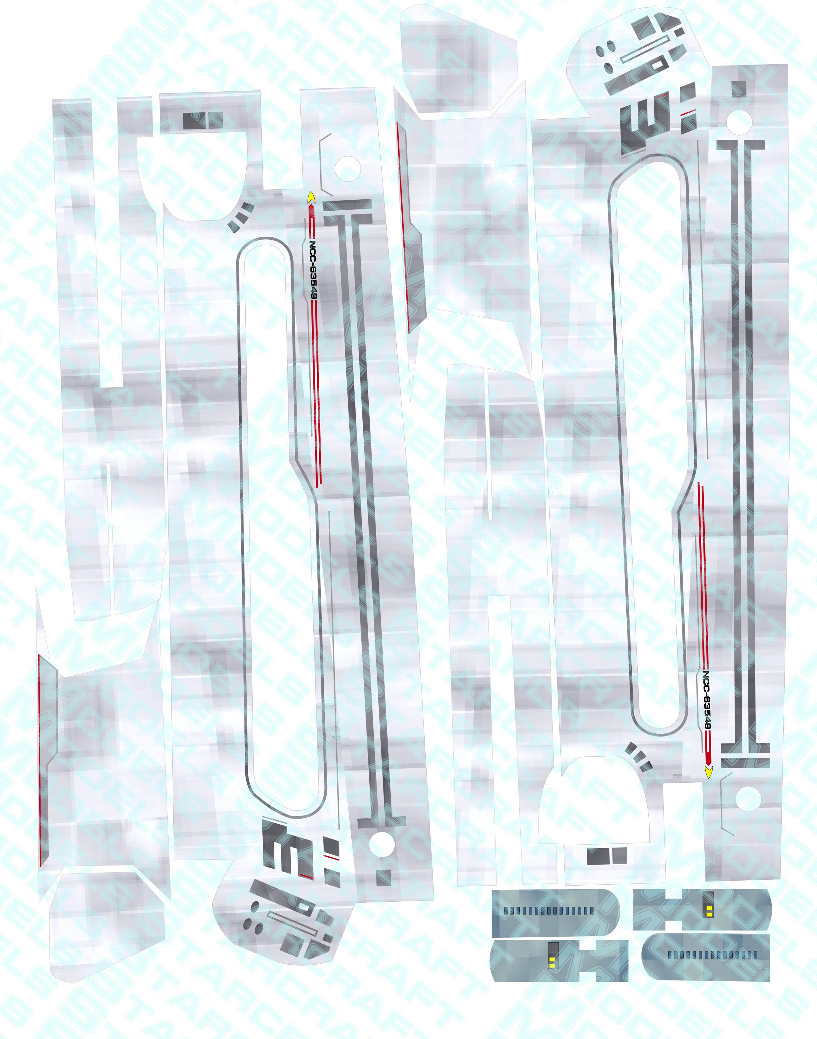 The wallpaper decals covers the whole ship with aztec patterns and take 6 pages of letter size sheets and retails for $50.00I also had Evans Lighting create a lighting kit for this model. You can see many pictures of the work done and a couple cool videos here: