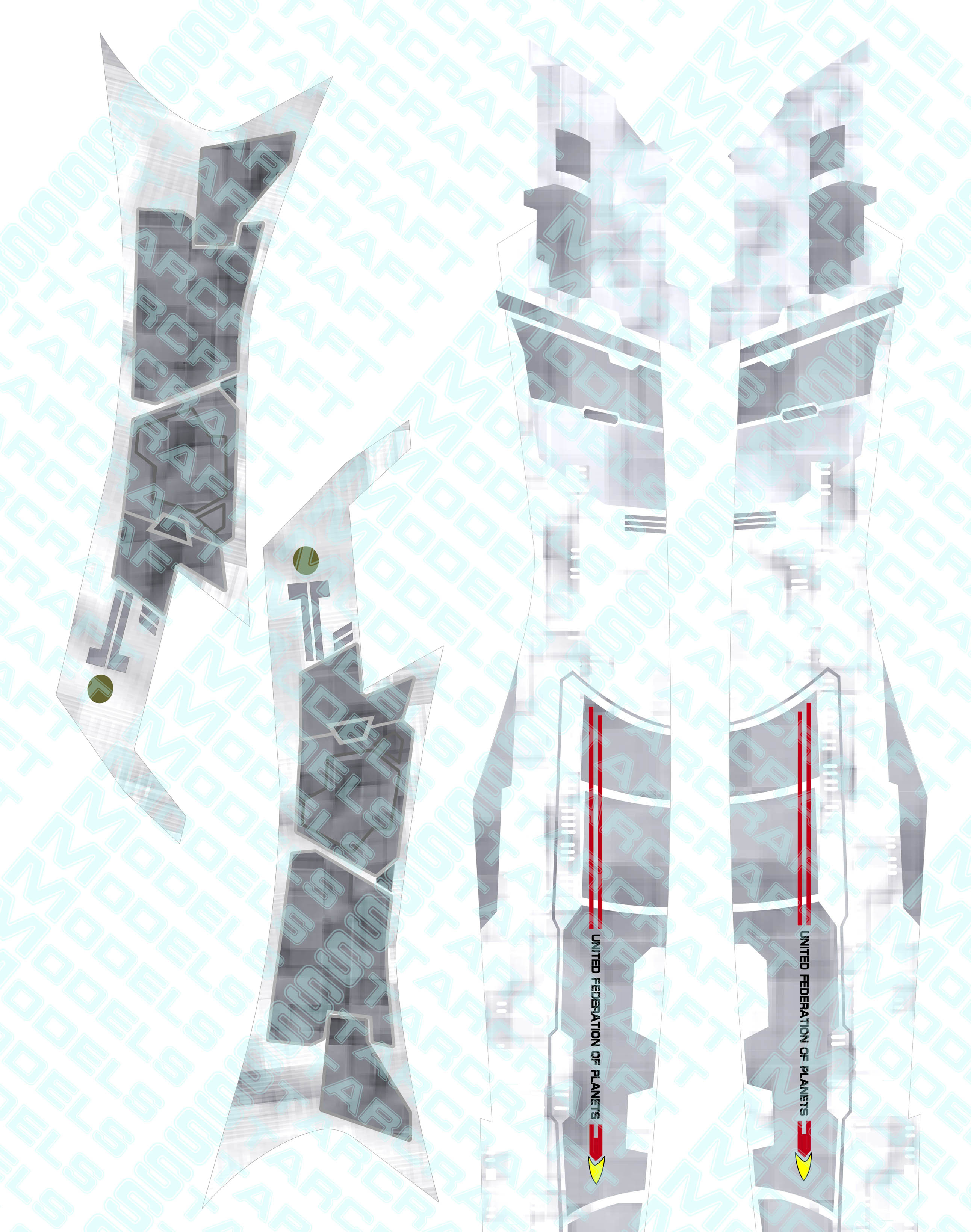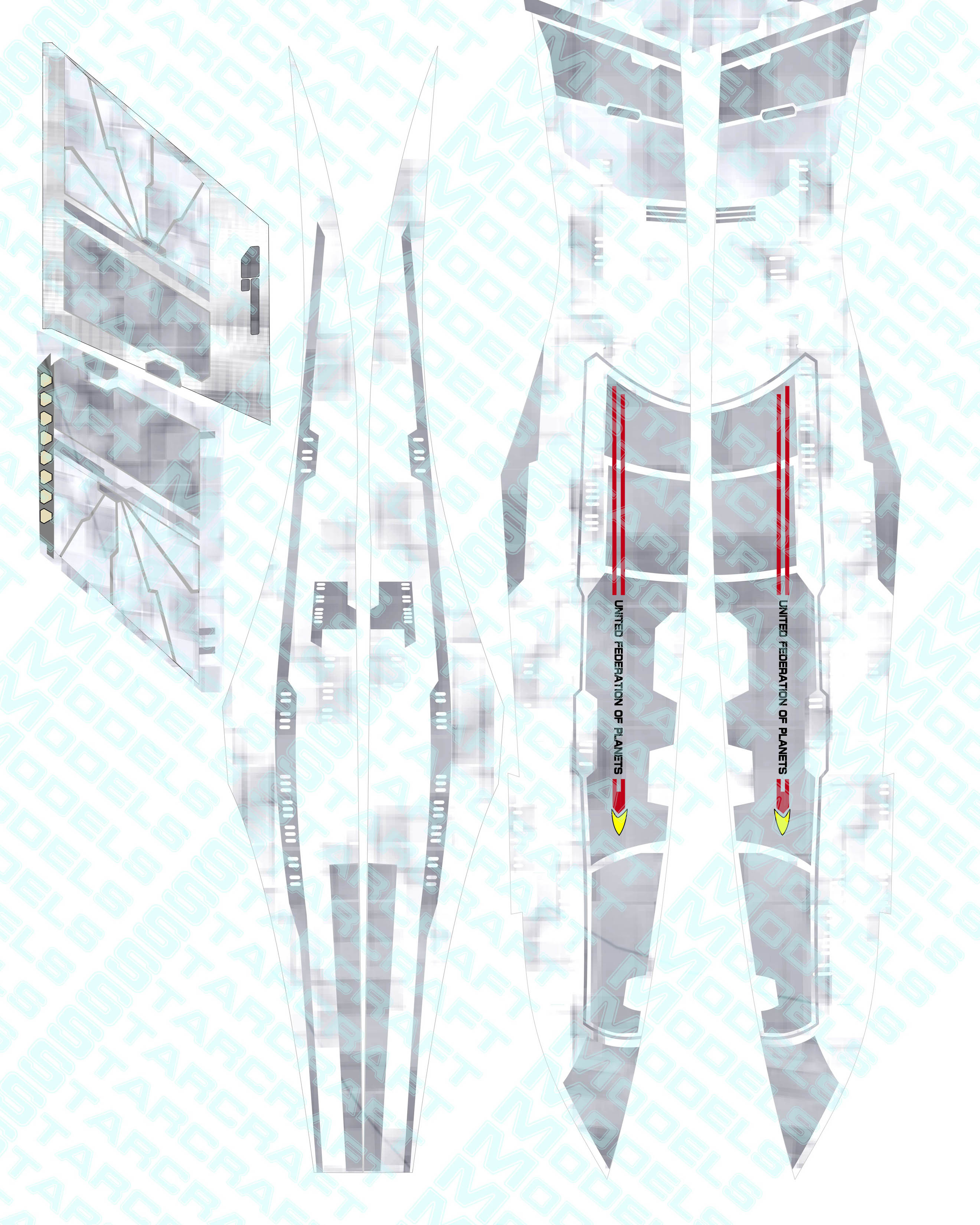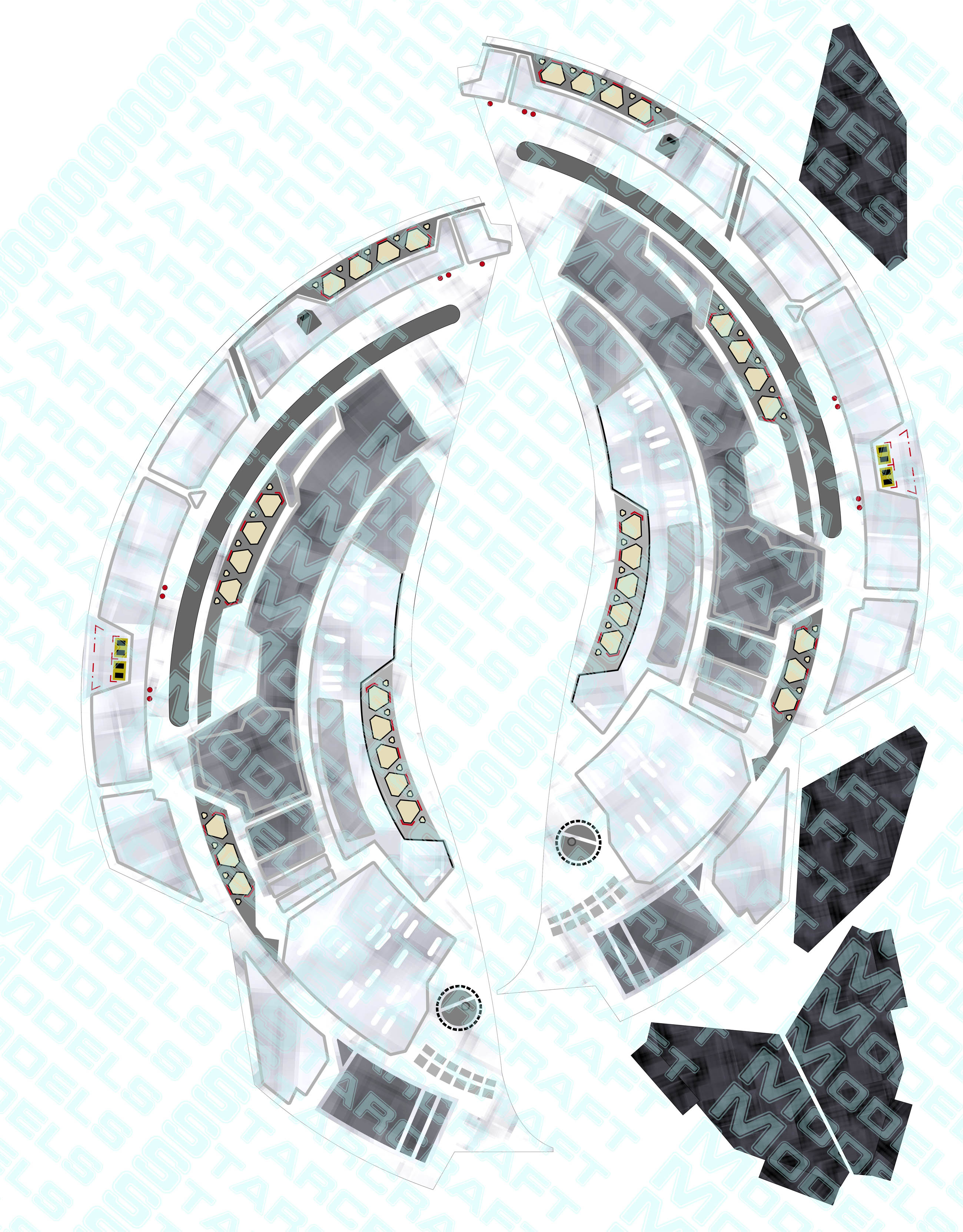 The wallpaper decals covers the whole ship with aztec patterns and take 6 pages of letter size sheets and retails for $50.00I also had Evans Lighting create a lighting kit for this model. You can see many pictures of the work done and a couple cool videos here: