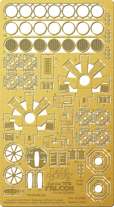 I am pleased to announce my latest item, a photoetch set for the 1/144 scale “Force Awakens” Millennium Falcon from Bandai.