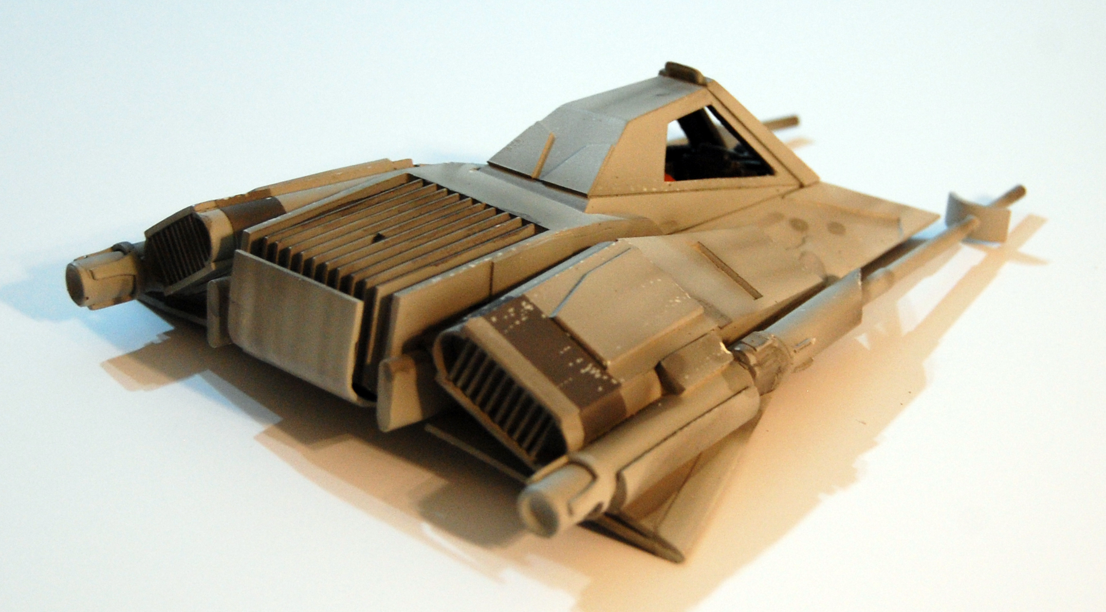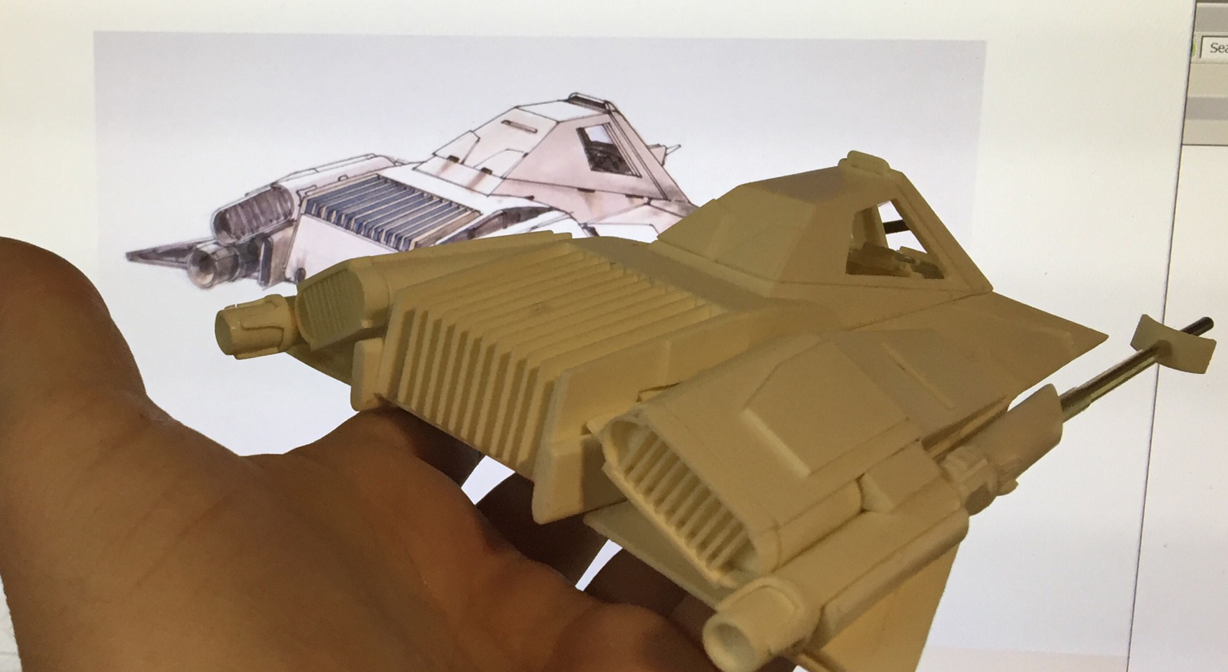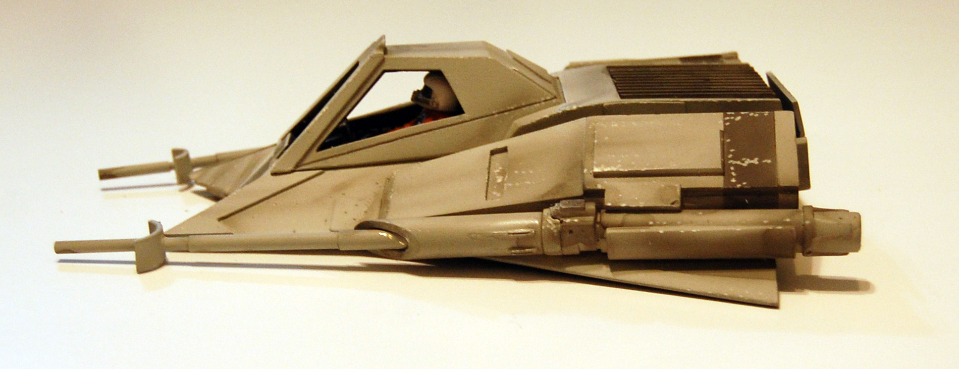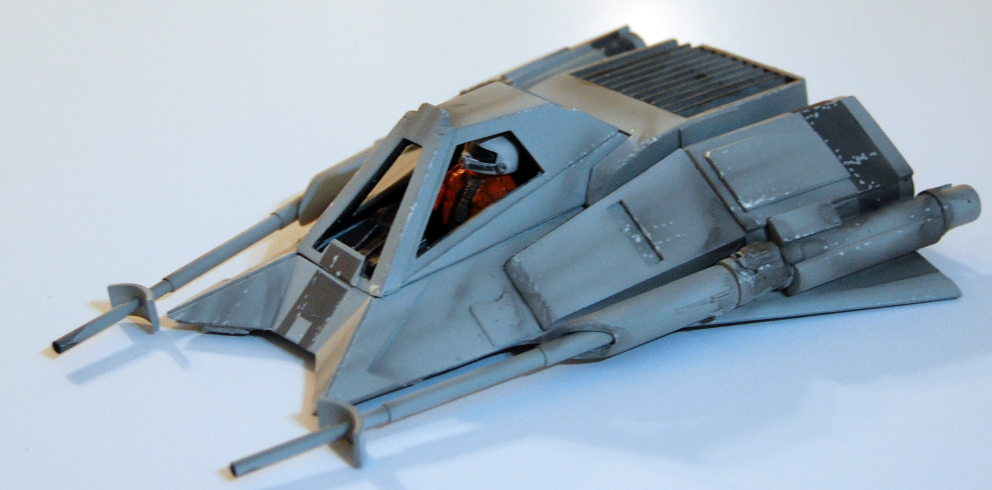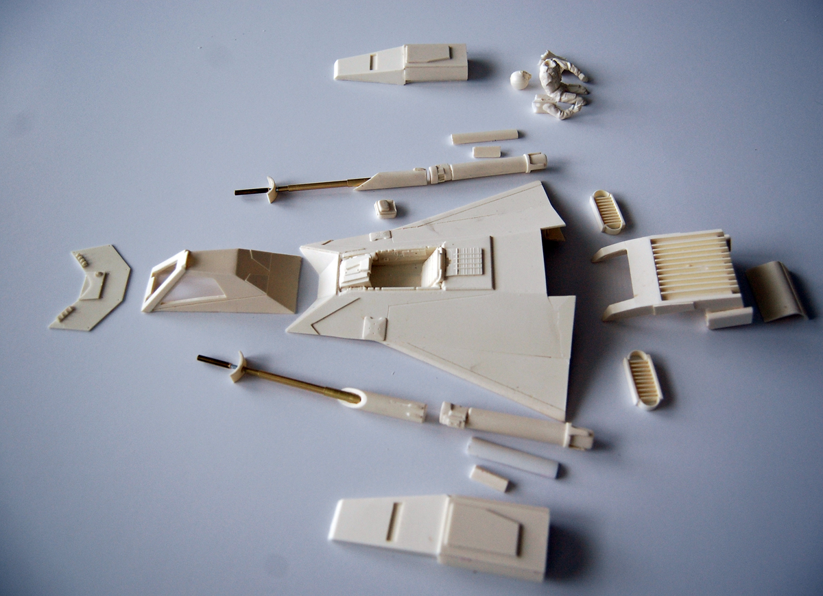 Kit Description: This kit is a highly detailed model of the single piloted Ralph McQuarrie SnowSpeeder as seen in the Sketchbook, and McQuarrie paintings! It has a highly detailed interior cockpit, and comes with the pilot figure! A must have for any collection!!