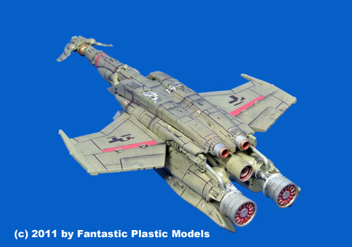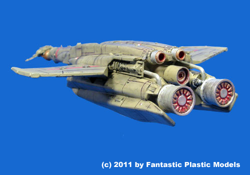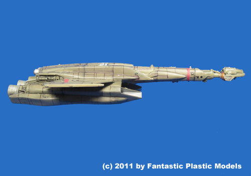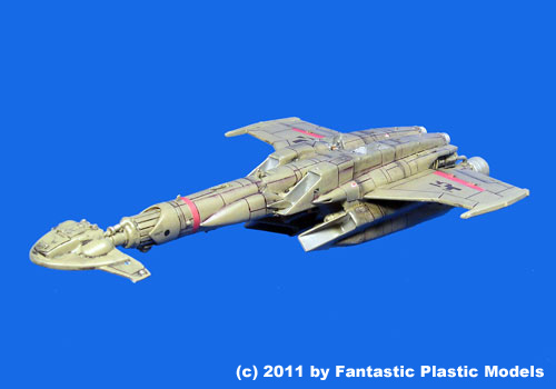 *Kit Description:  The is a 1:288 recreation of the Eastern Alliance Destroyer featured in the “Battlestar Galactica” (TOS) episodes “Greetings from Earth,” “Balstar’s Escape” and “Experiment in Terra.”  The kit was mastered by Alfred Wong and cast by Millennium Models International (MMI).  Decals are by JBOT.  The finished model is just shy of 13 inches long.