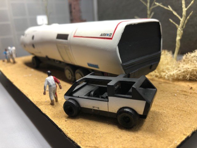 Kit Description: Ark II resin 1:72 scale model kit. If you are a fan of the old TV show Ark II then this is a must have. Built and painted by Oggie Gonzalez Interstellar Modeler. Mastered by Alfred Wong and was Produced and distributed by LARSON DESIGNS/LUNAR MODELS.