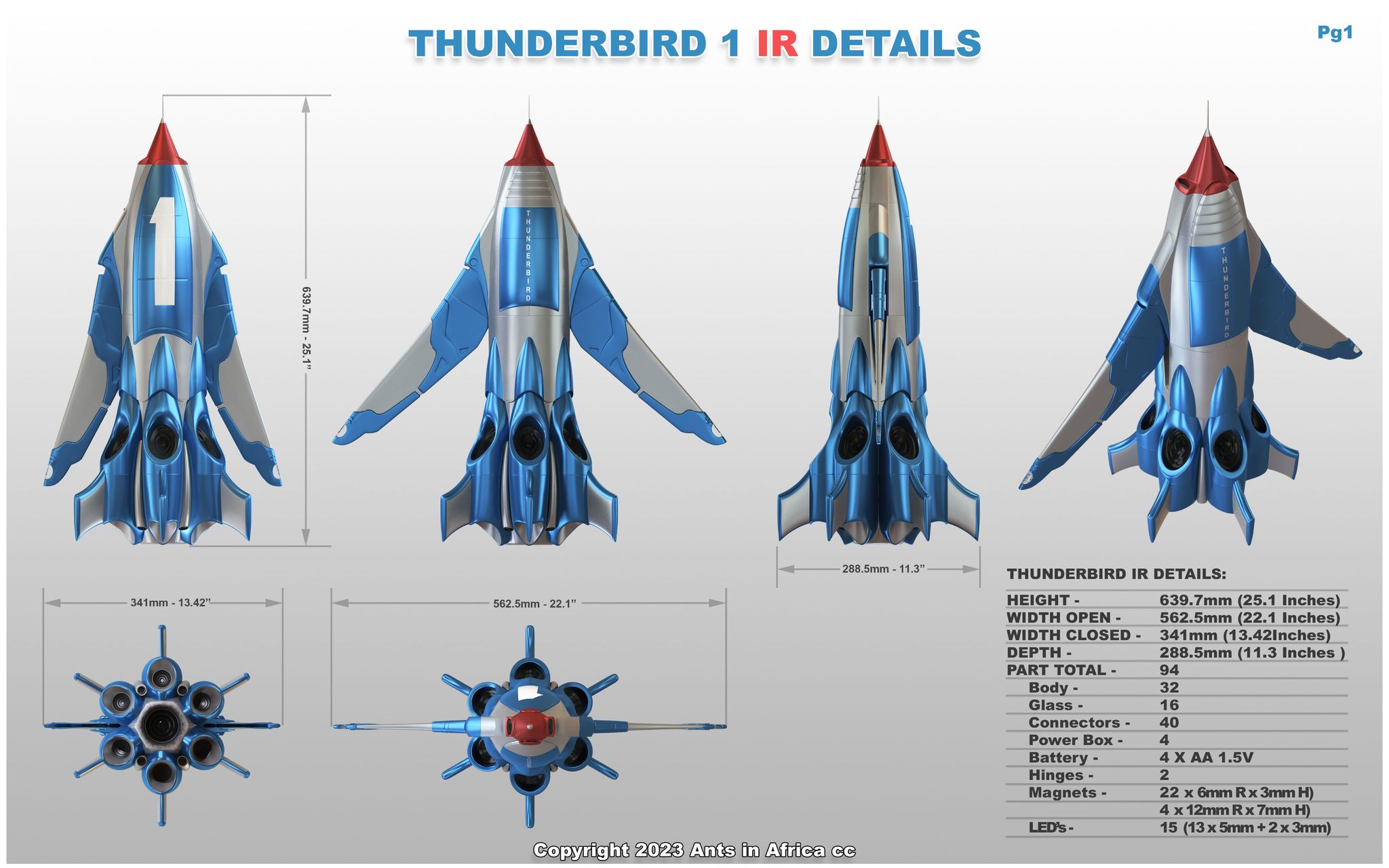 In partnership with FBW Models and Ants In Africa Design, we are please to announce we are releasing a 25 Inch tall Thunderbird 1 3D printed Resin Model Kit from the Thunderbirds IR proposed show from 2004 / 2005