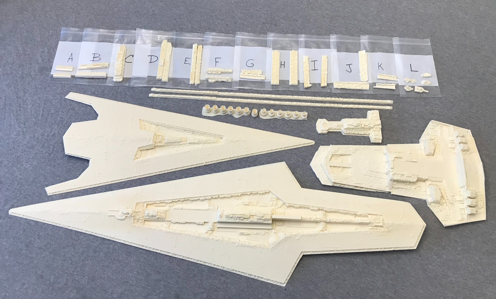 Kit Description: This is a 38” Super Star Destroyer “Executor” model. This was Darth Vader’s flagship used in Empire Strikes Back and Return of the Jedi. The model is cast in resin and is 45 parts.