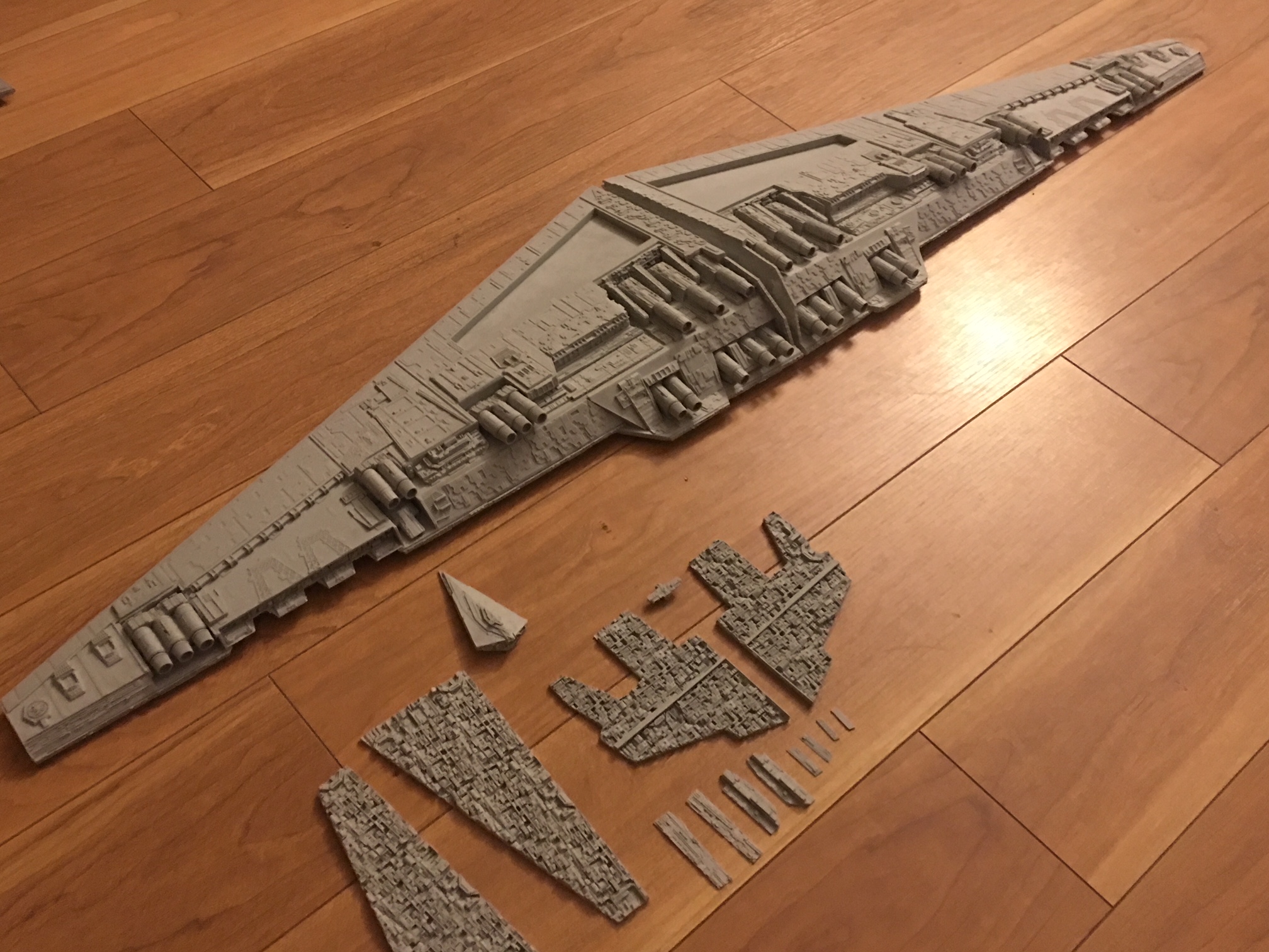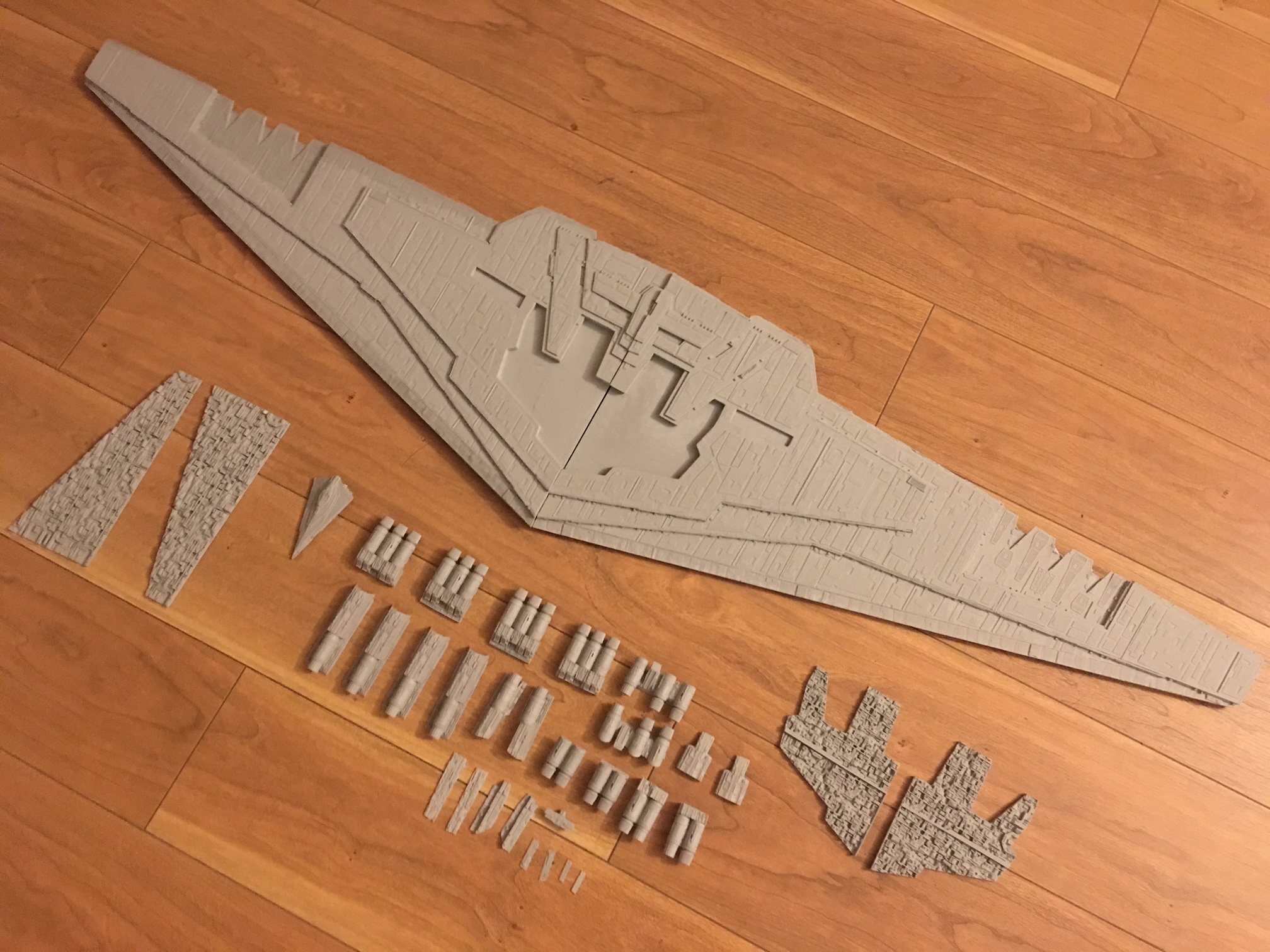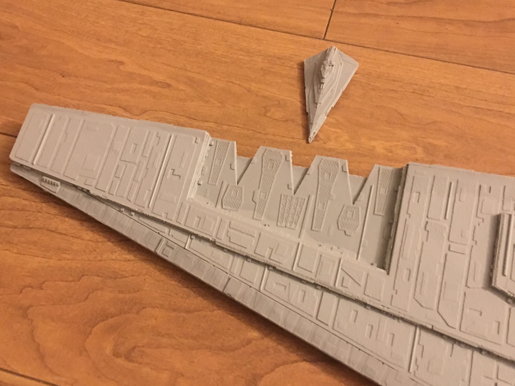 Kit Description: Patterned by Mark Worley, Korbanth Sabers is now offering this fantastic ~40 Inch wide model! Highly detailed for it’s size, this model also comes with Kylo Ren’s and General Hux’s Resurgent Class Star Destroyer, “Finalizer”, which is to scale with Snoke’s Mega-class Star Dreadnought “Supremacy” Star Destroyer! Add this magnificent model to your collection today!