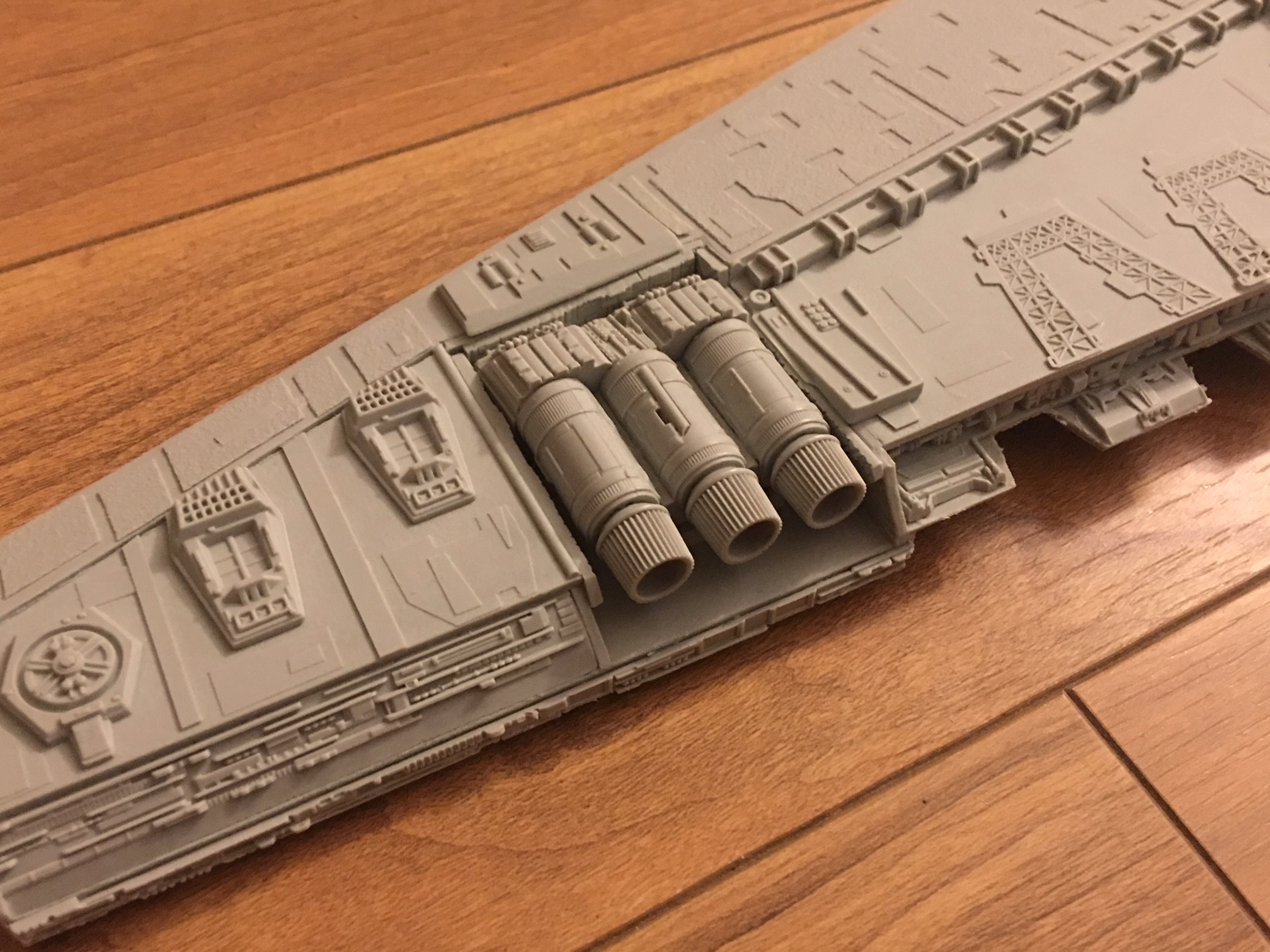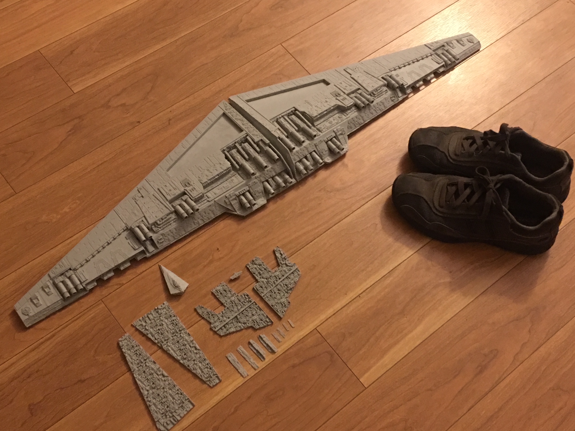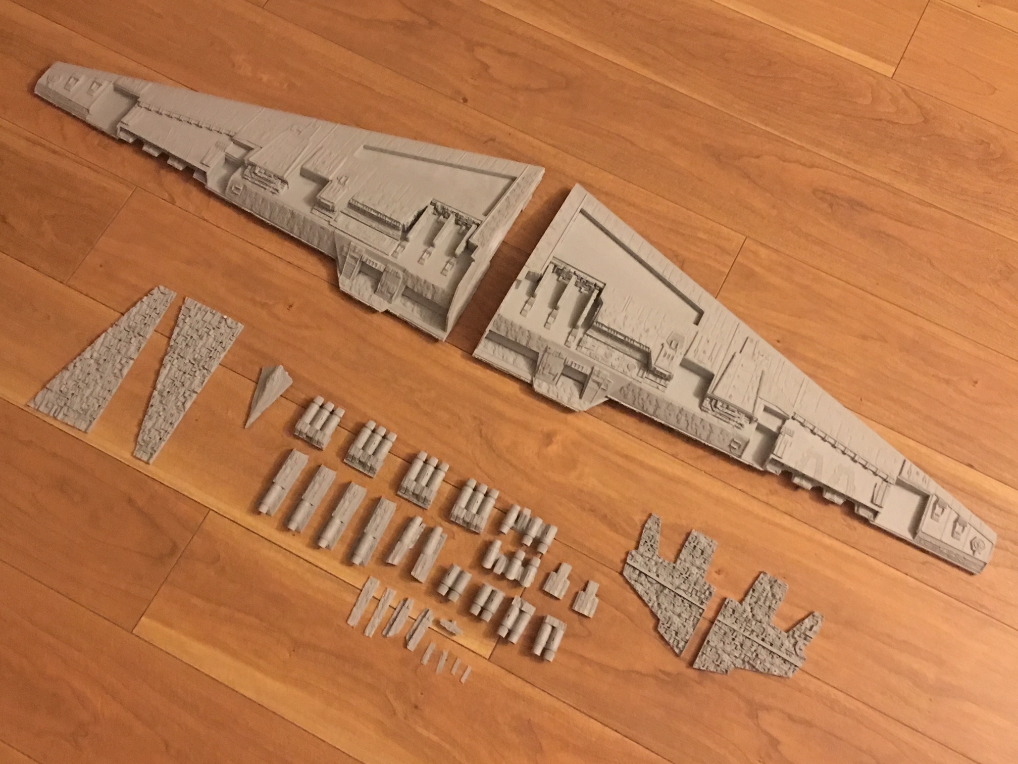 Kit Description: Patterned by Mark Worley, Korbanth Sabers is now offering this fantastic ~40 Inch wide model! Highly detailed for it’s size, this model also comes with Kylo Ren’s and General Hux’s Resurgent Class Star Destroyer, “Finalizer”, which is to scale with Snoke’s Mega-class Star Dreadnought “Supremacy” Star Destroyer! Add this magnificent model to your collection today!