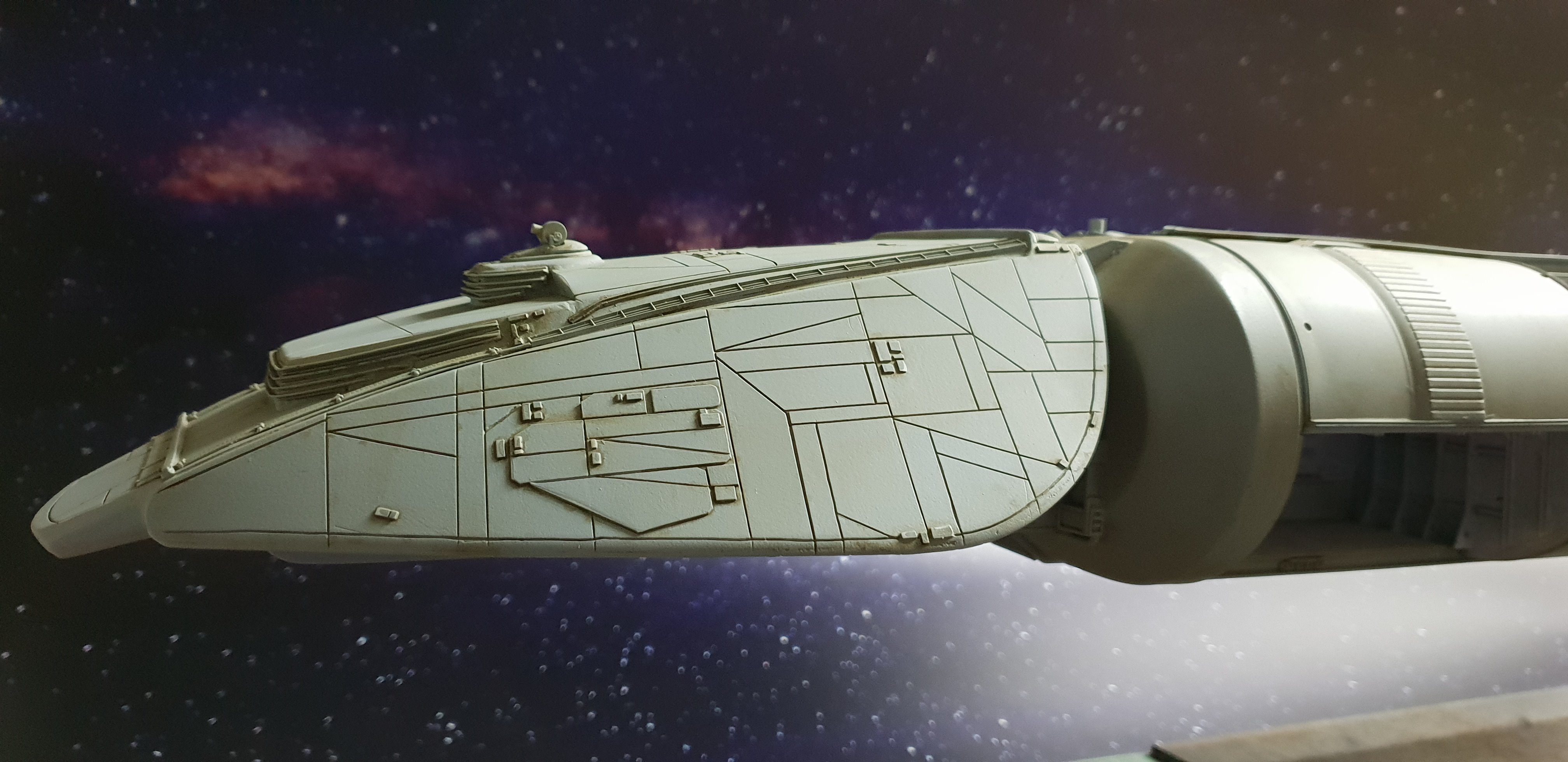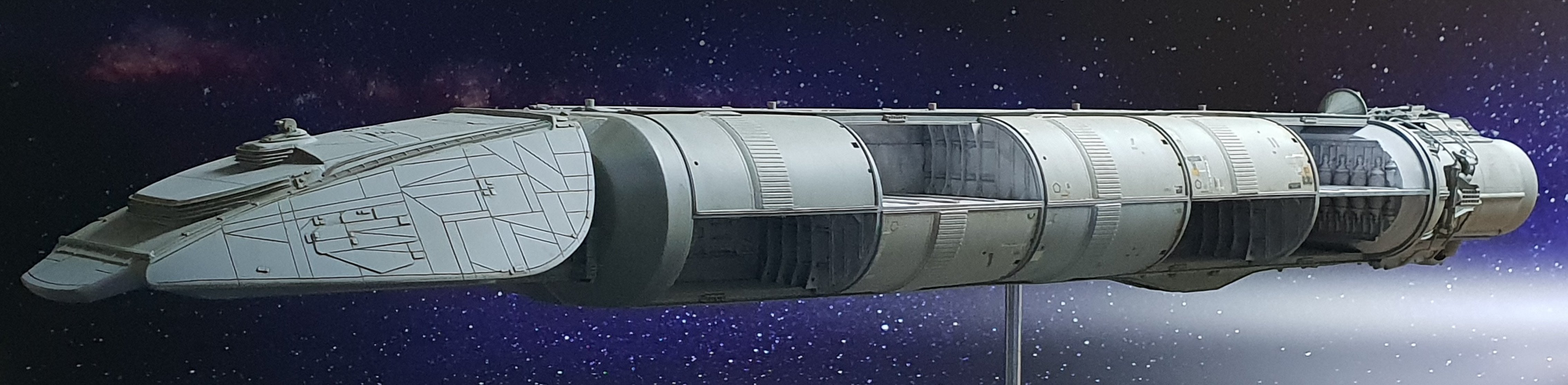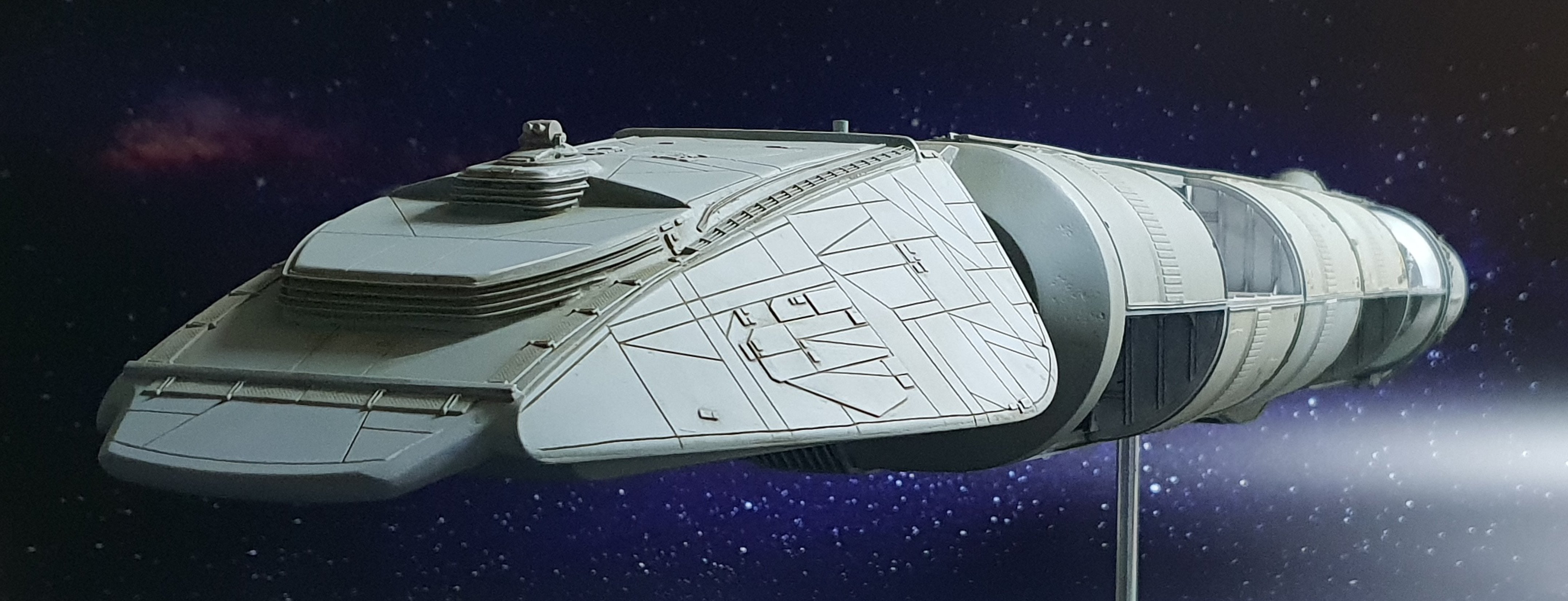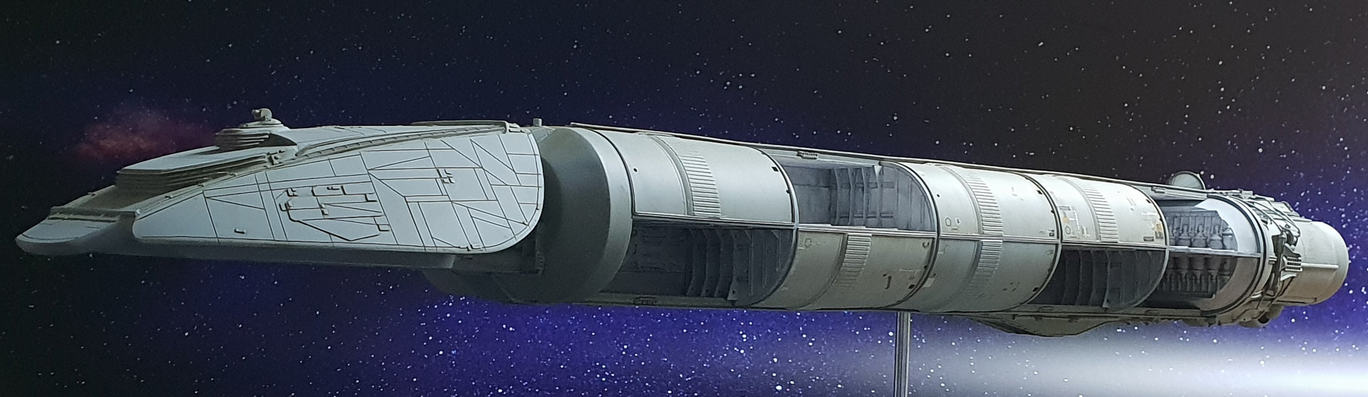 Due to the demand I offer, starting from January 2019, the model kit including the needed Evergreen profiles, a photo book as construction manual and the varnish stencil for the writing of the tank bays and the Cylon Logo for sale.