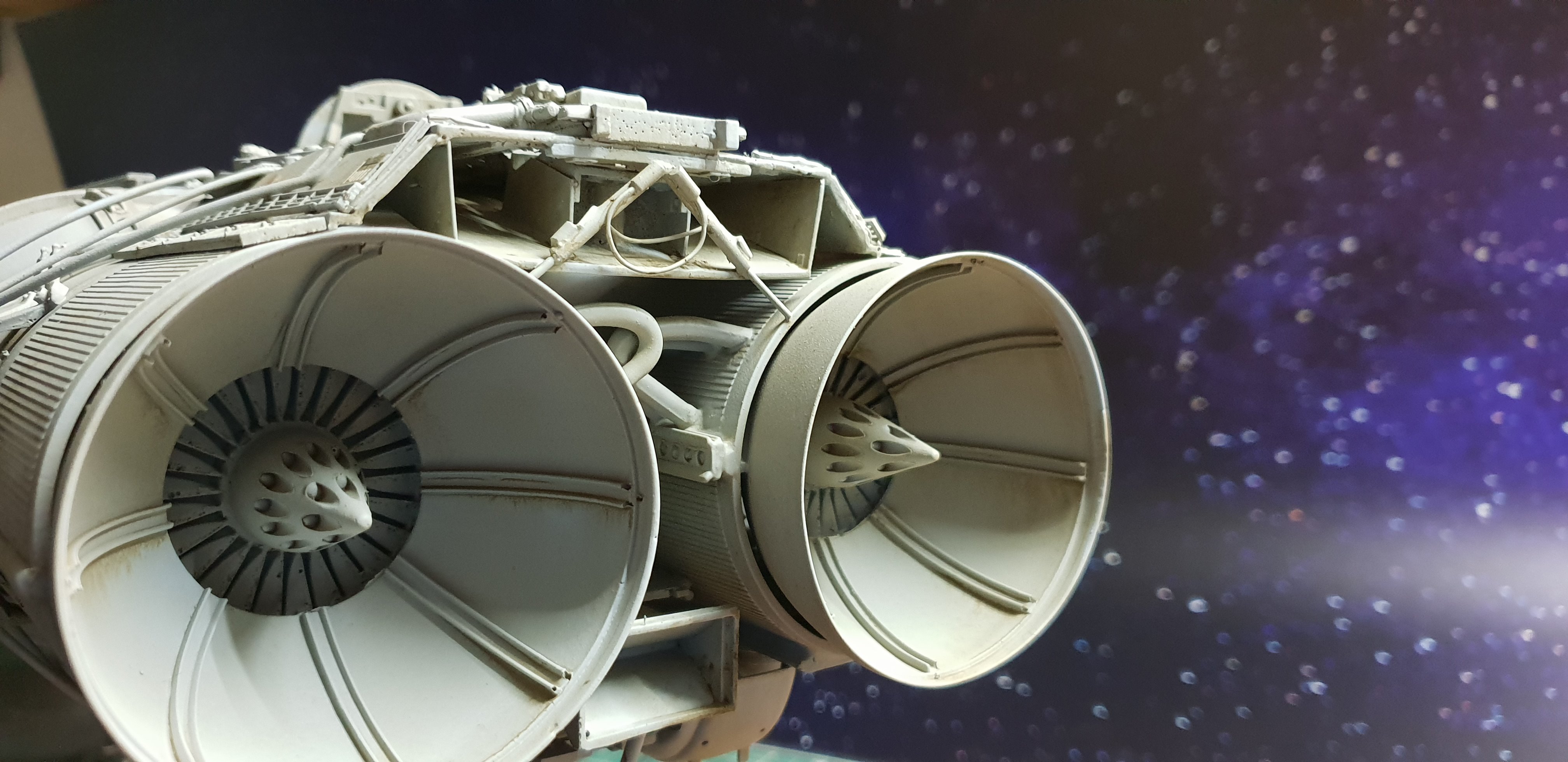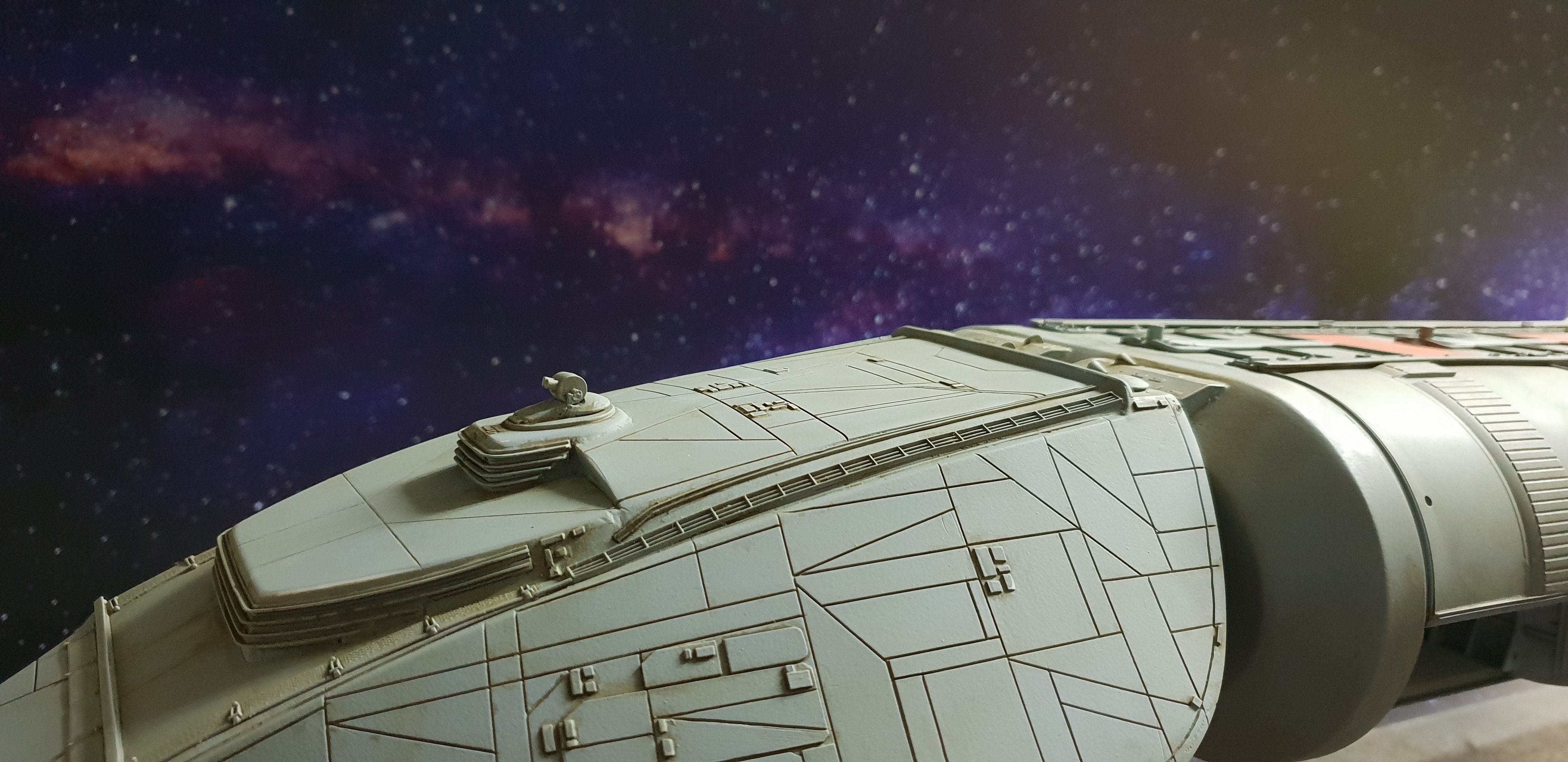 The specifications of the model are really amazing: about 1100 mm long, 190 mm width and 6kg Resin. The time required for construction including silicone rubber moulds and research on the internet about the original movie model and the building kits needed was about 700 hours.