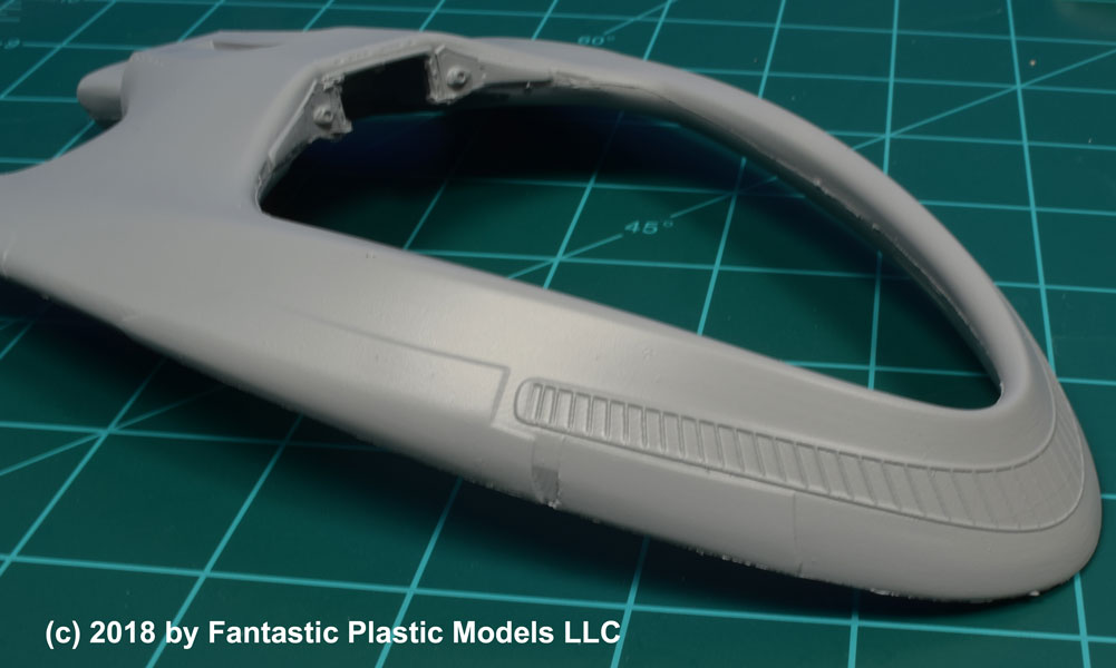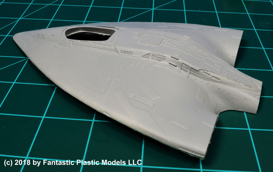 In just a few weeks, Fantastic Plastic Models will offer a 1:1400 scale all-resin kit of the “Orville” for you to add to your TV sci-fi collection. Designed in CAD by Scott Lowther and cast by Creative Cast Parts, our kit has 8 super-detailed pieces, including a hollow two-piece main body suitable for lighting. (Sorry, but the engine “loops” are way too thin to accommodate lights.) When complete, the model is an impressive 15 inches long.