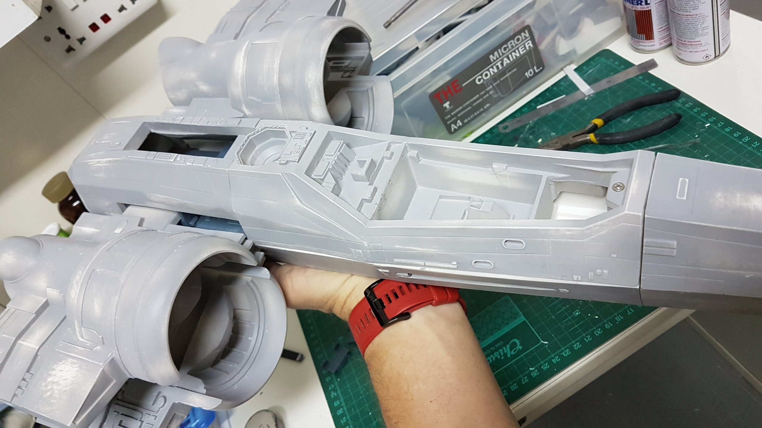 Kit Description: Here are updated photos of the Prototype resin kit made from 3D digital files I created myself. The finished kit is 74cm (29.1″) long with a 75cm (29.5″) wingspan. The Kit consists of resin casts, resin prints and FDM printed parts. It is designed to add lighting (which I will be doing at a later stage) and screw’s together with minimal glue. Please note the wings are not glued in and there as still work to be done on the cockpit interior and rear detail. The cockpit is designed to take the Brickstuff LCD screen and will have an customized animation. The price is $465 and excludes postage, insurance and bank fee. Kits will be available from mid Jan and the first run will be 5 kits. To be added to the list I need a pm on my Facebook page or an email to get on the mailing list.