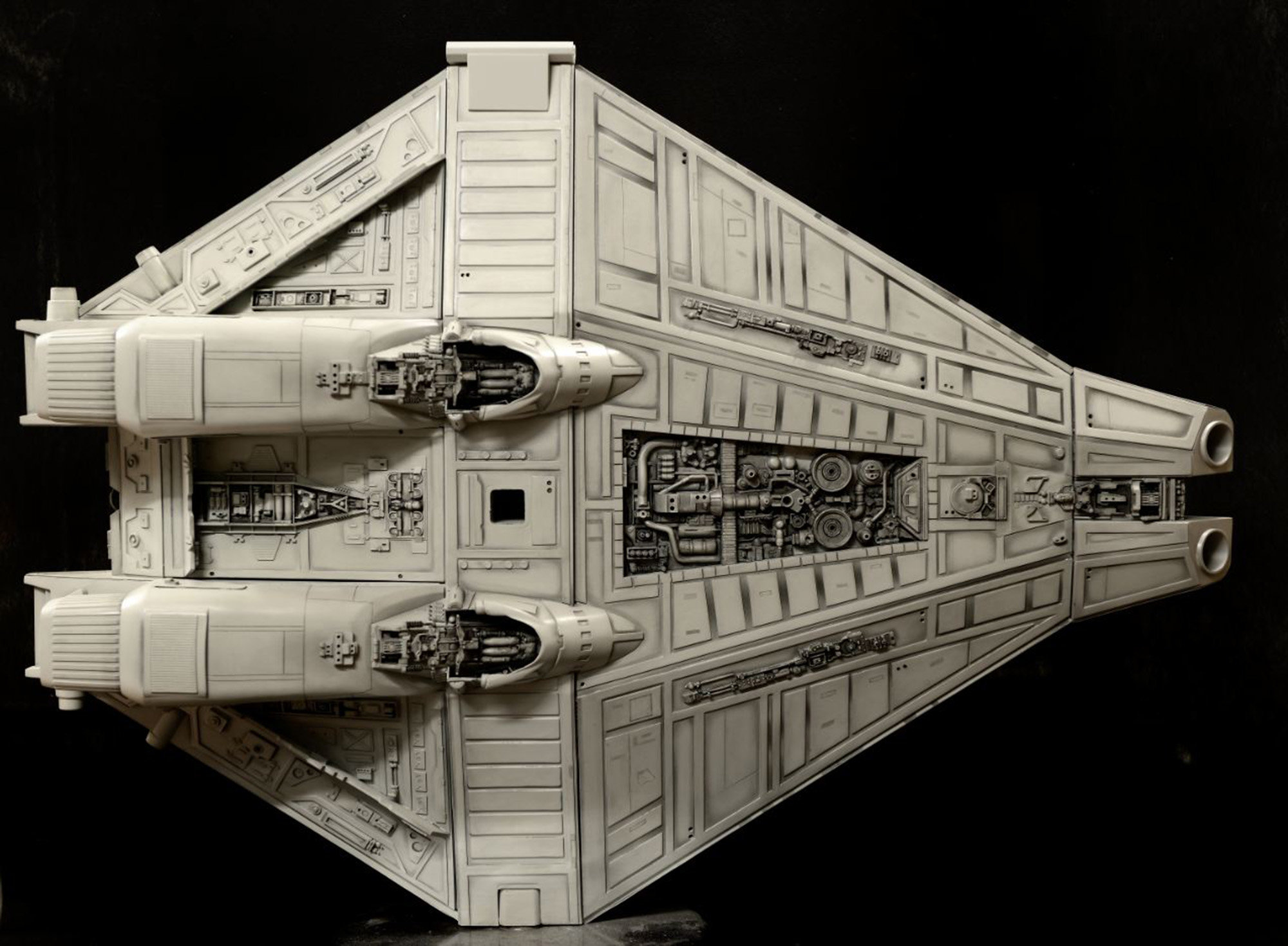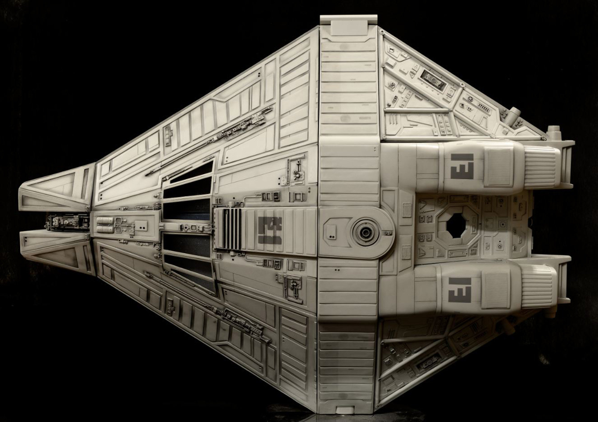 3D printed elements are also used across the ship – replicating the hand carved/modeled engines and nozzles is one such example. Commercially printed water-slide decals are included.