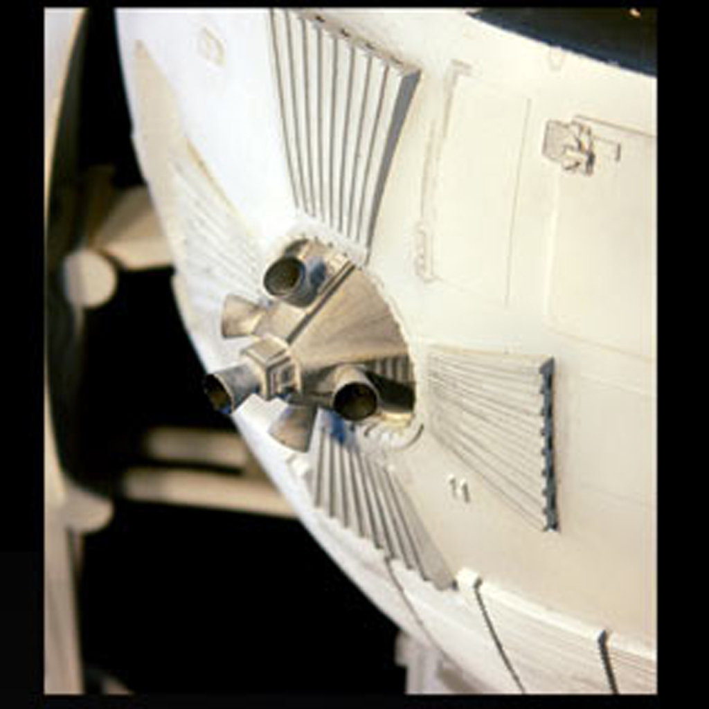This model of the Aries 1-B is the largest ever produced in a kit form, at 15 inches in diameter. The casting of the lower hull alone requires 2.5 pounds of resin! This kit was released in 2018, then selling for $415 USD, and shown here on Modeler Magic.