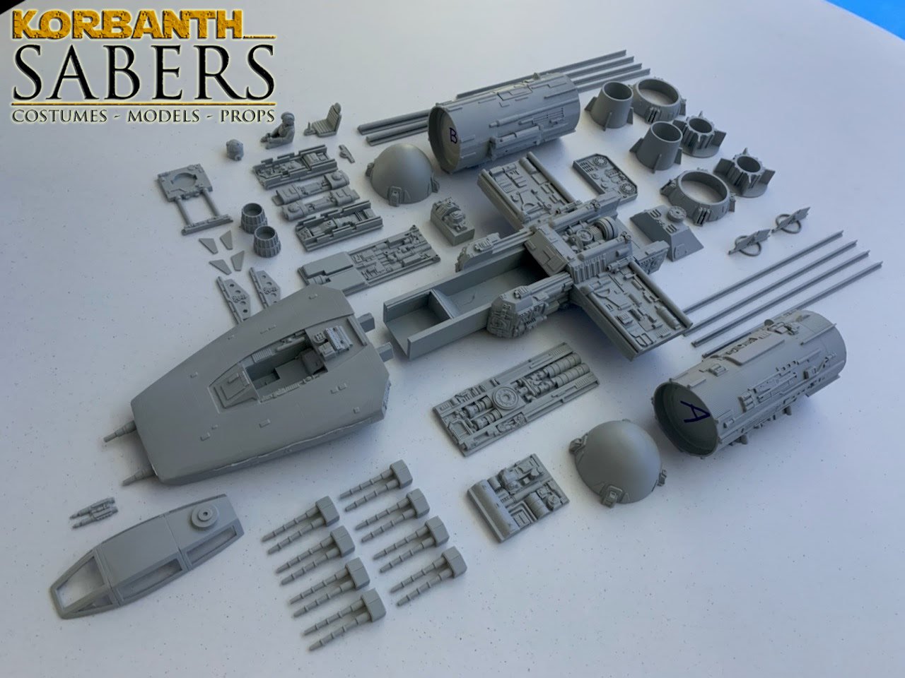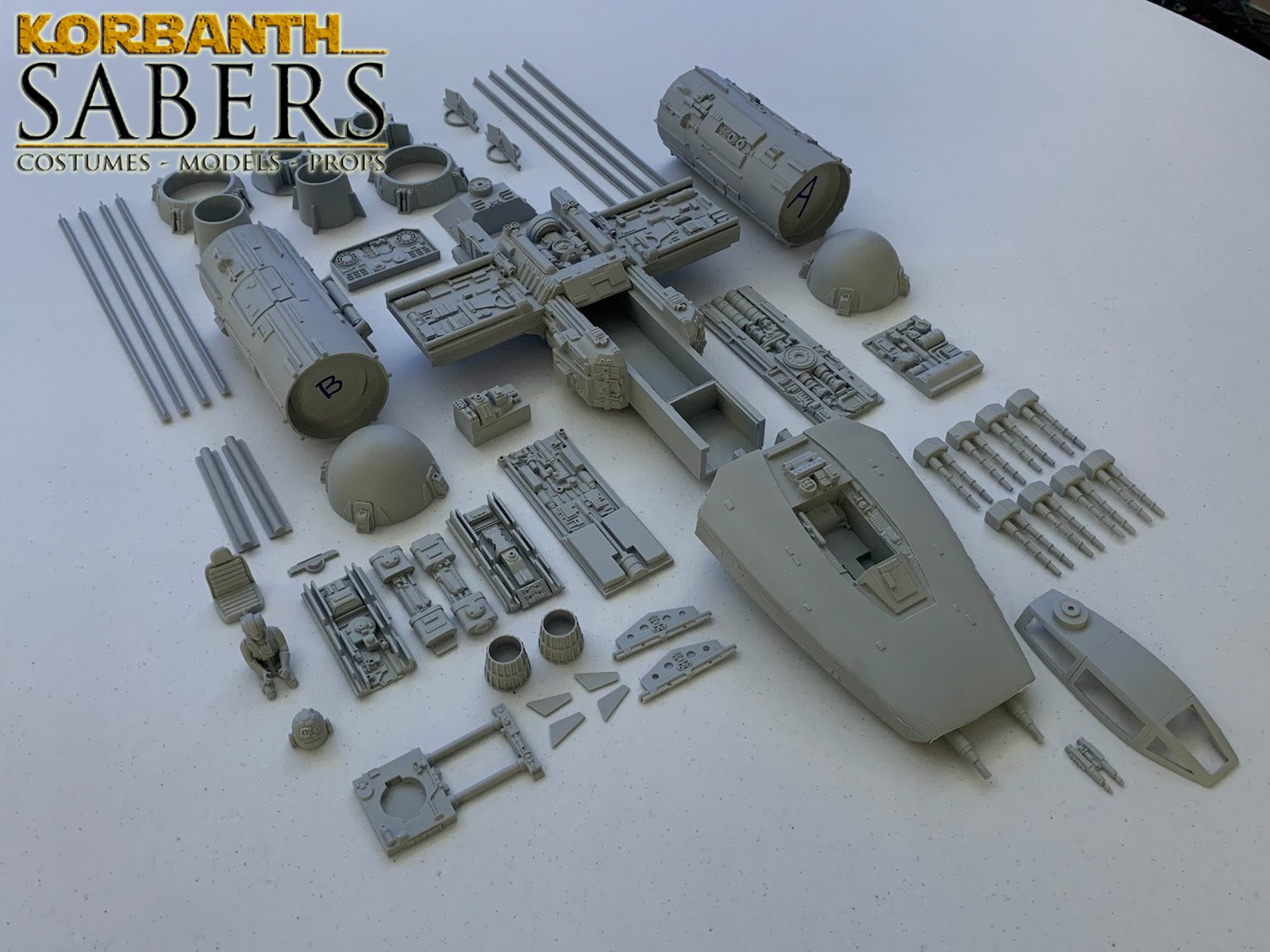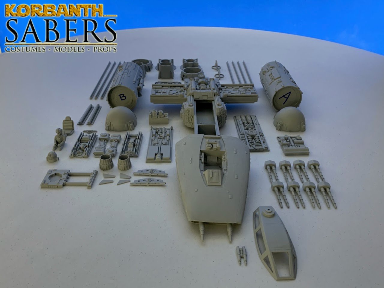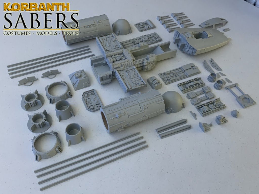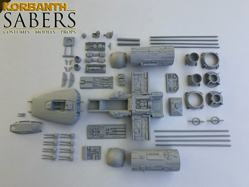 Kit Description: This is the 1:24 scale Spaceship model Y – Same scale as Model spaceship X (T-65 and T-70) as well as Model Spaceship A and B – and in same scale as DV-X1 and Bomber model – an incredible sculpted piece by Alfred Wong and made specifically for Korbanth models – limited Run of 10 pieces – Cast by Mark Worley
