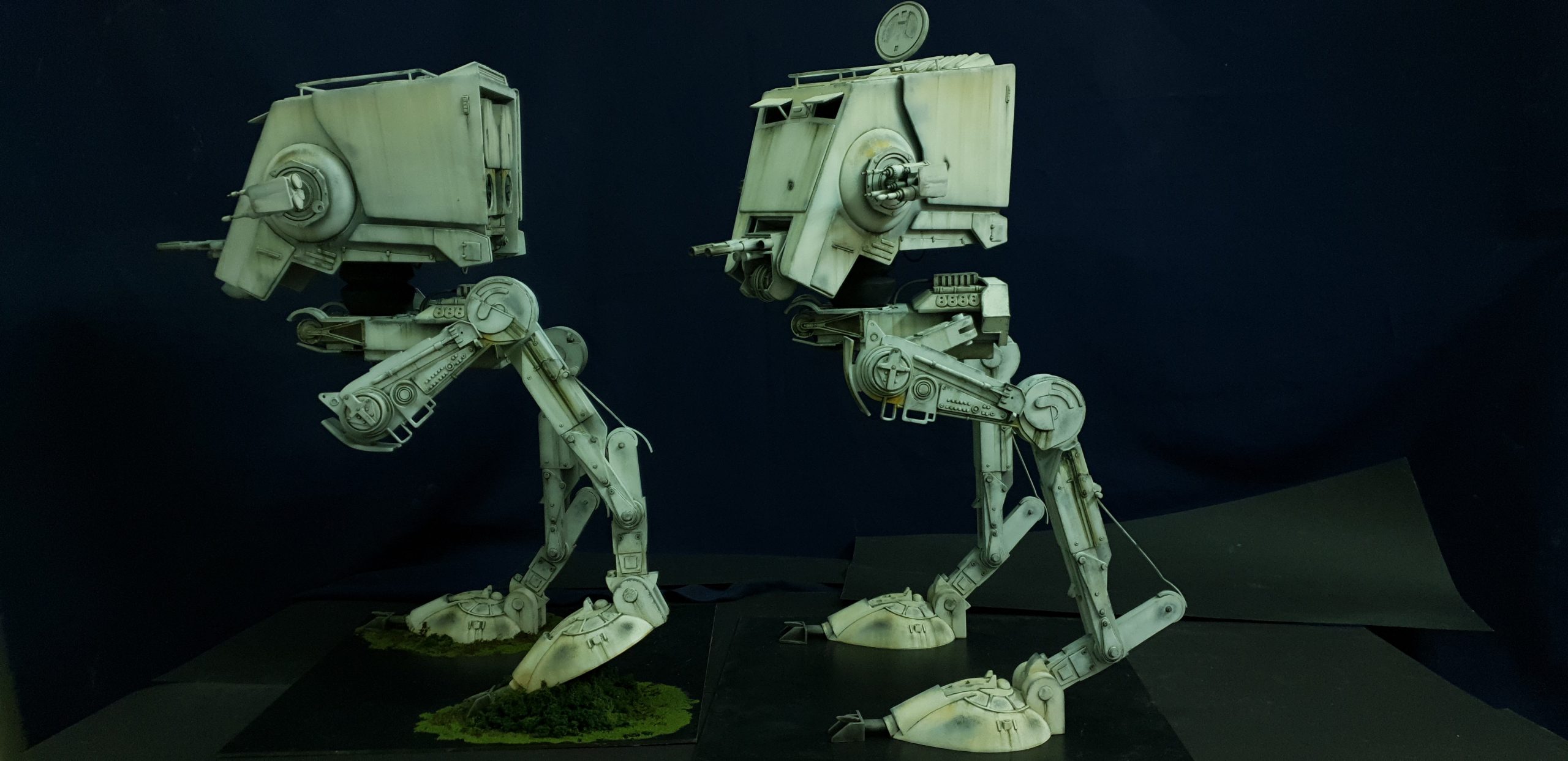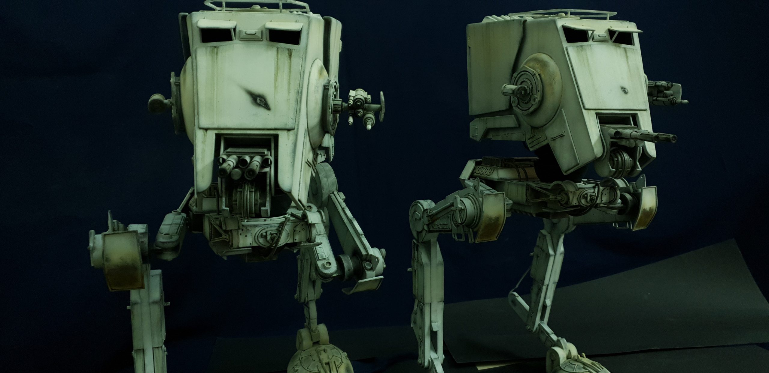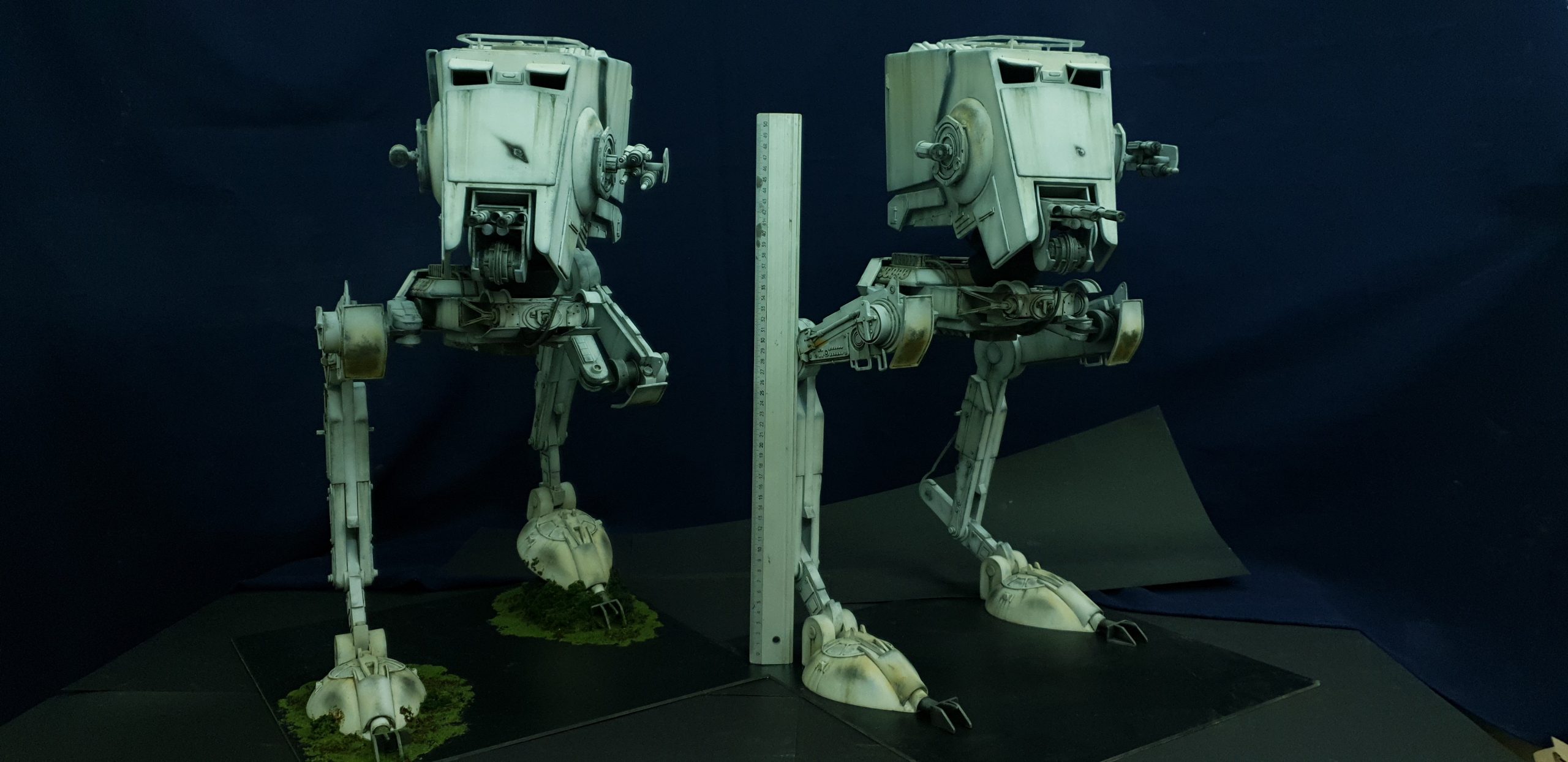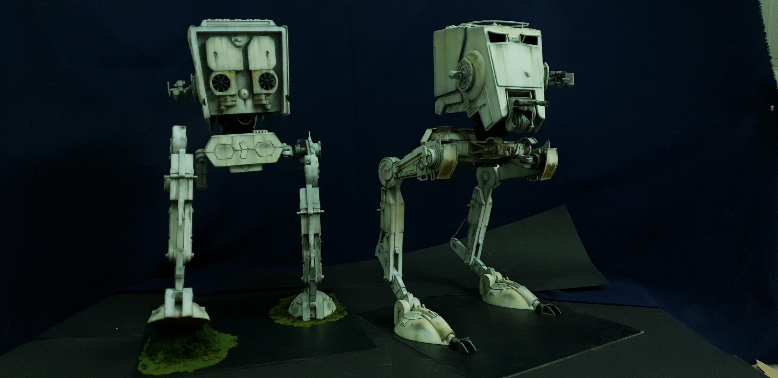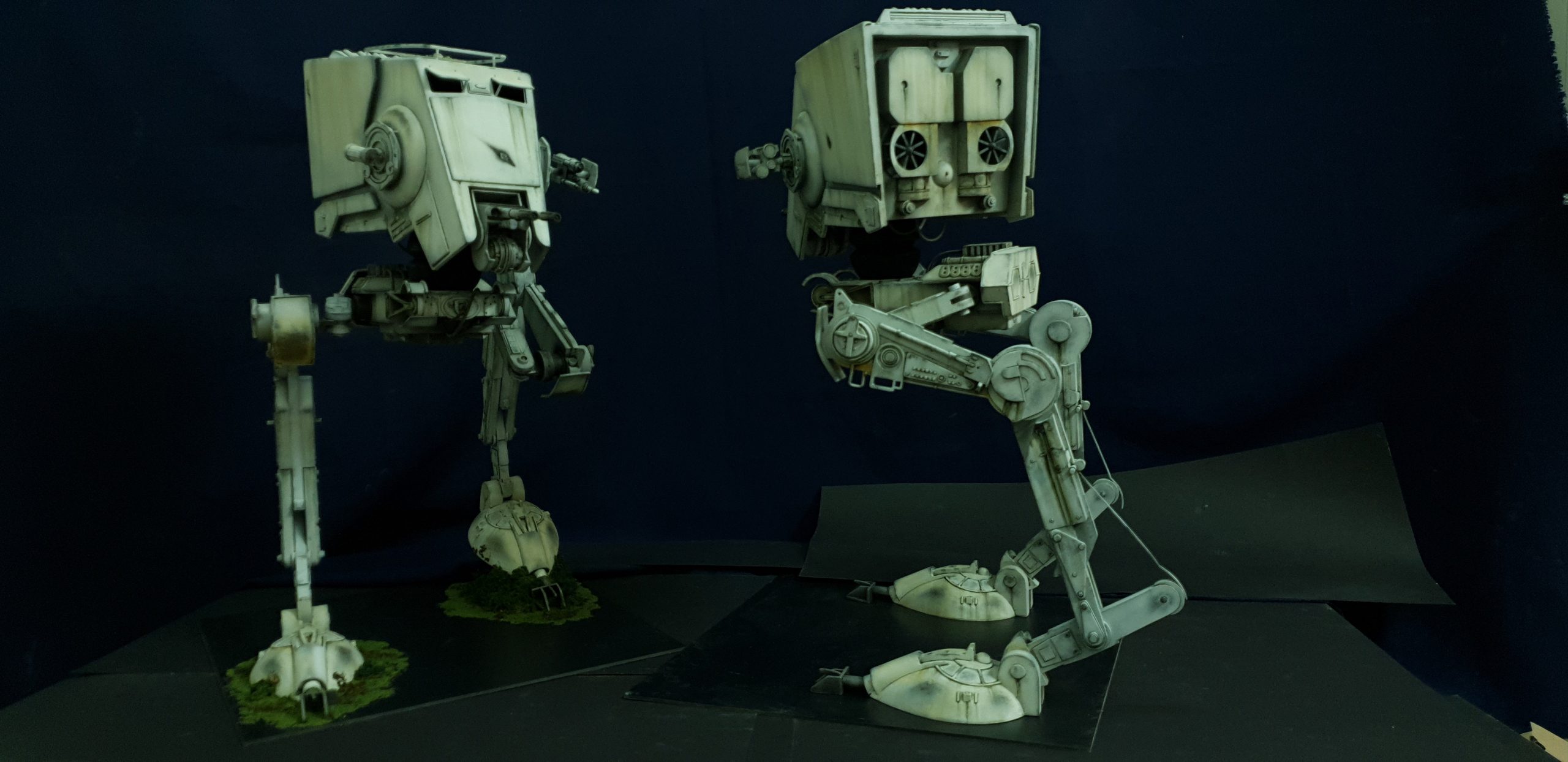 Kit Description: We have worked very hard to offer our latest project: the AT-ST (from Stars Wars Episode VI) to all Star Wars and science fiction fans. It is available in kit form, or assembled and painted as stated above. It is made in 1/14 scale (56 cm height), and is manufactured in polyurethane resin (smooth cast 300). We believe that this kit of the AT-ST is the largest available today, though we are not absolutely certain.