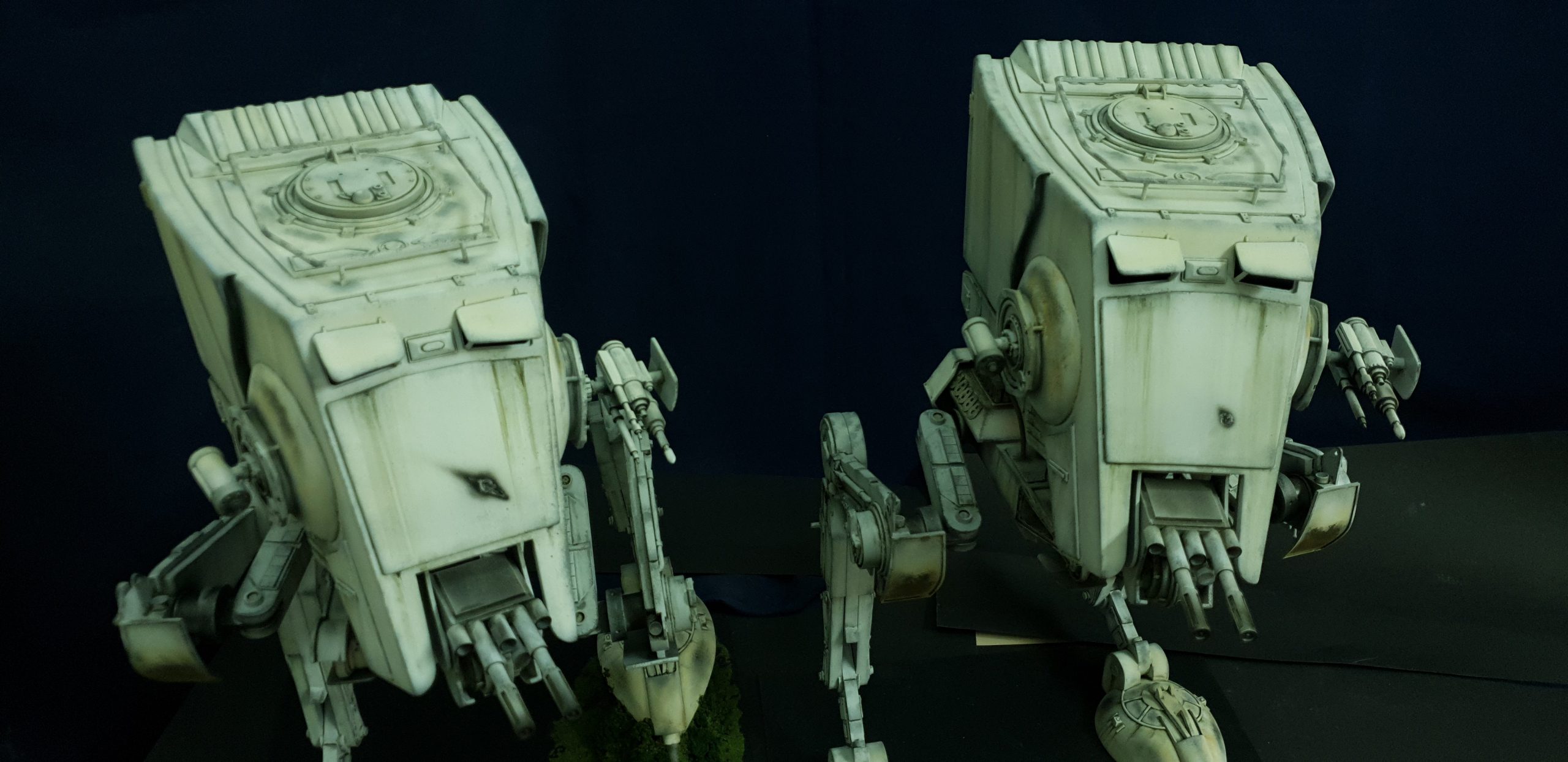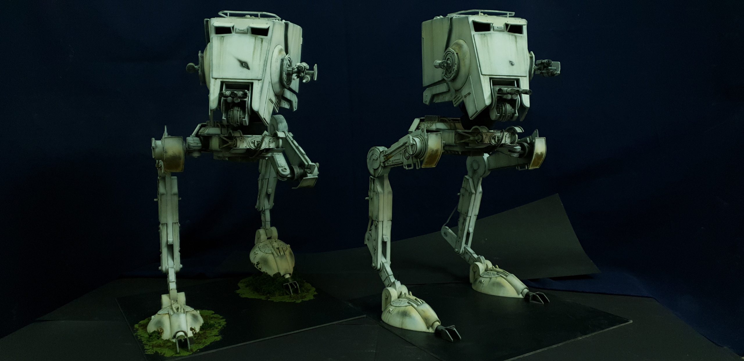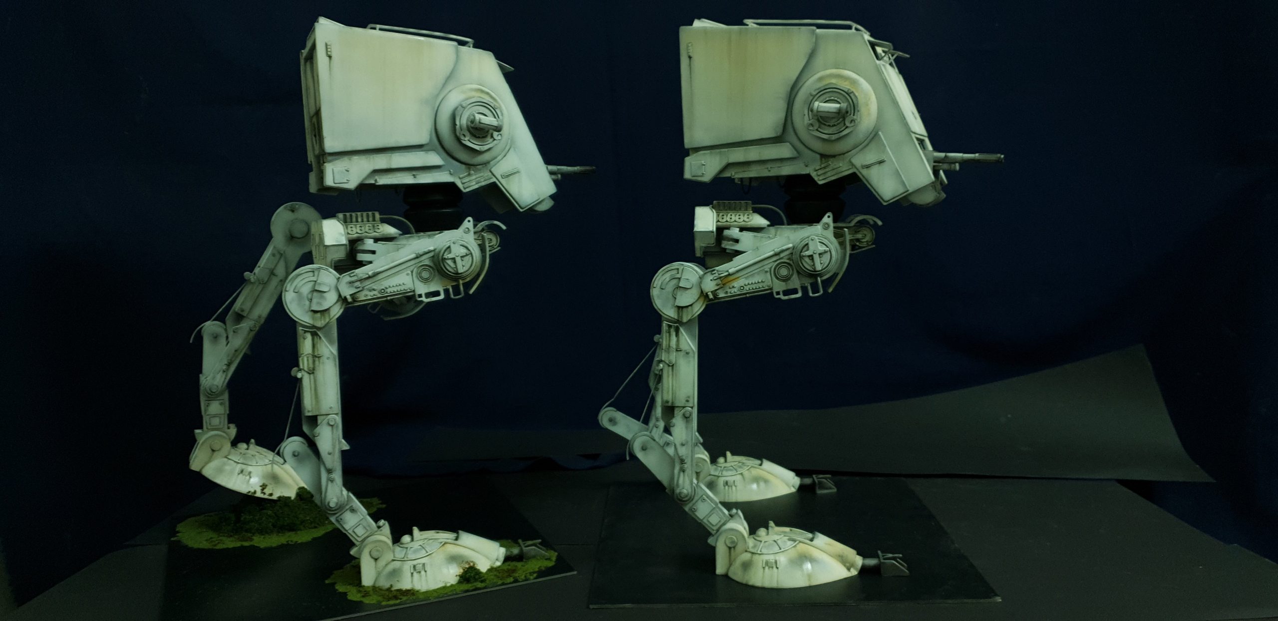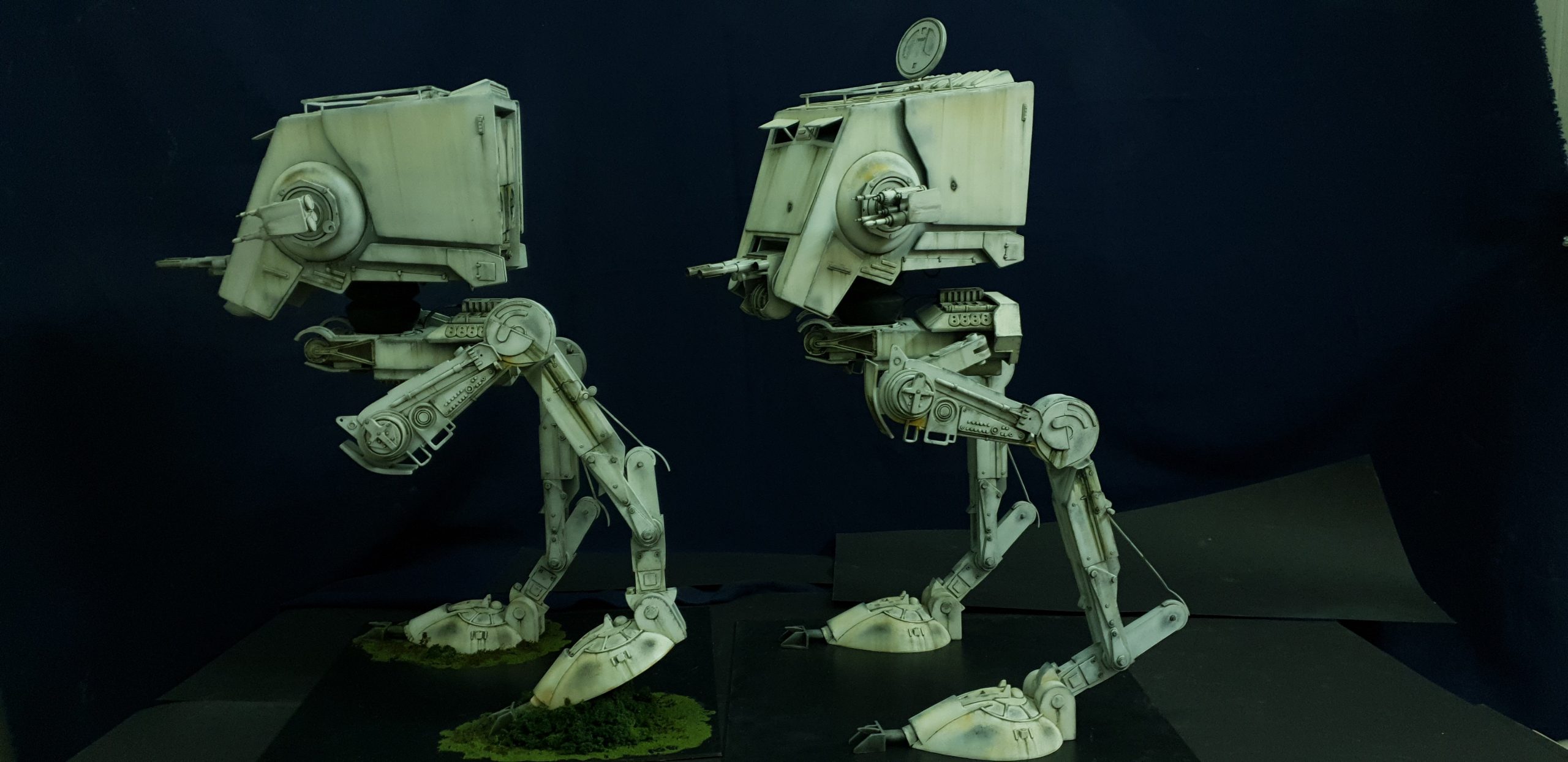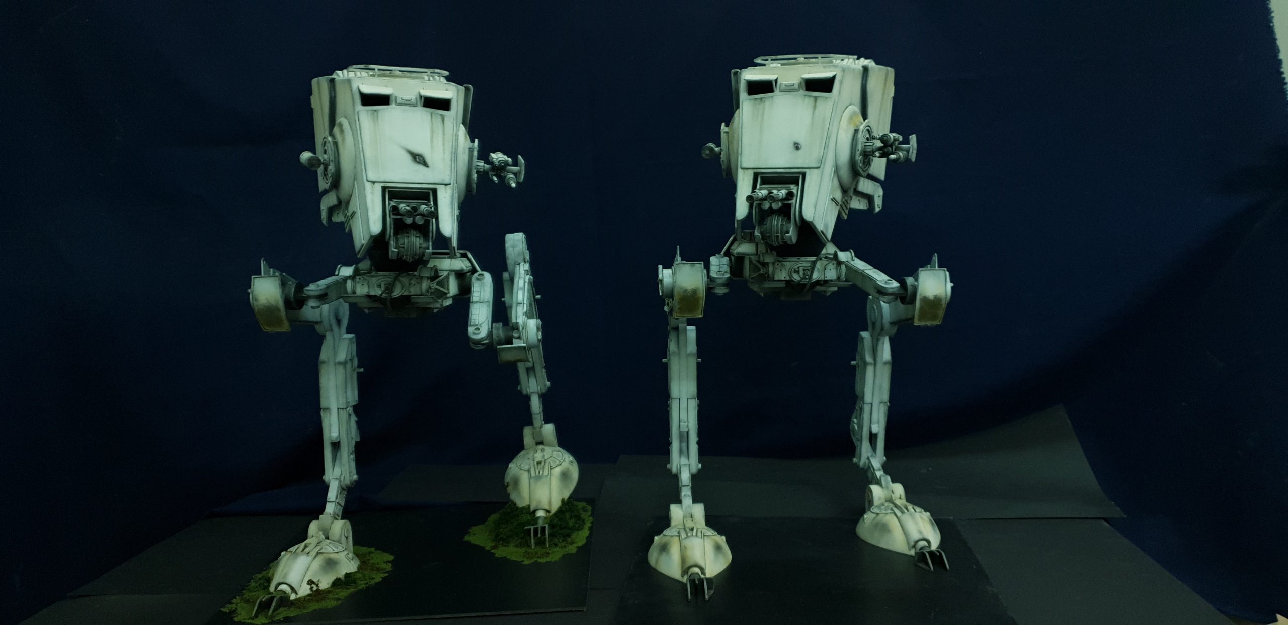 Kit Description: We have worked very hard to offer our latest project: the AT-ST (from Stars Wars Episode VI) to all Star Wars and science fiction fans. It is available in kit form, or assembled and painted as stated above. It is made in 1/14 scale (56 cm height), and is manufactured in polyurethane resin (smooth cast 300). We believe that this kit of the AT-ST is the largest available today, though we are not absolutely certain.