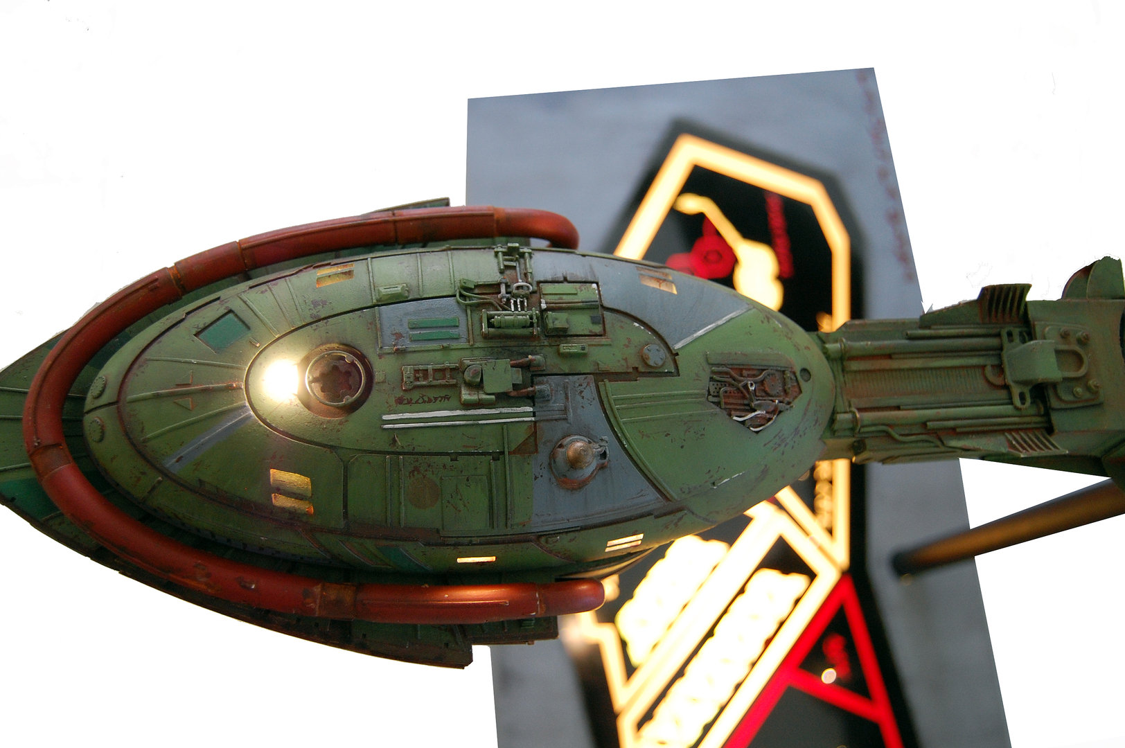 Above and Below: Kurt Kuhn and artist Dan Grumeretz next to the Kuhn Global studio scale KLINGON Bird of Prey Replica.