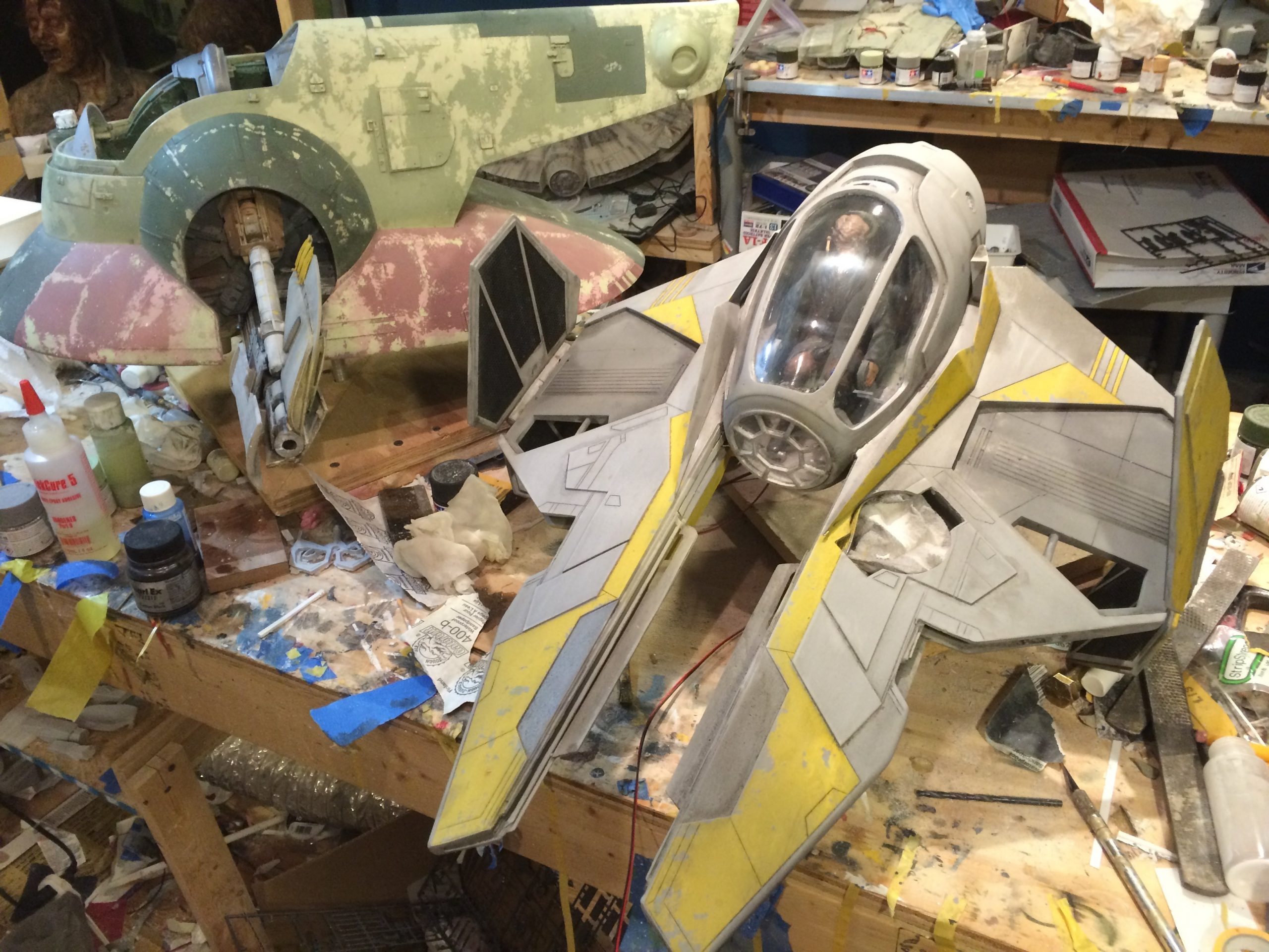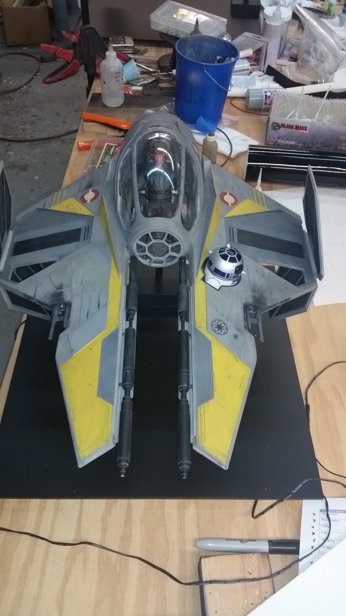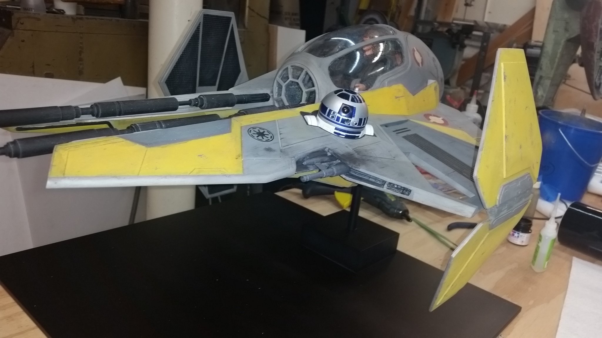 Kit Description: 1/10 Scale Jedi Starfighter from Revenge of the Sith!!! This kit is huge!! The castings are from the same molds used at TWO major theme parks here in the USA! All parts a pressure cast and bubble free! The kit includes Anakin Skywalker… (I will be offering an Obi-Wan figure). When finished this builds to be approximately 22” long x 18” wide. The R2 can be fully lit! Designed by industry 3D artist Mike Reis, this R2 is a work of art by itself! We are only offering 10 of these Starfighters (10 X Obiwans’ and 10 X Anakin’s), then the molds will go back into storage. These will be cast by the Master himself, Mike Salzo!!! With that knowledge, you know the quality will be there, and 100% delivery reliability!! These are made to order so it will be first come first served.
