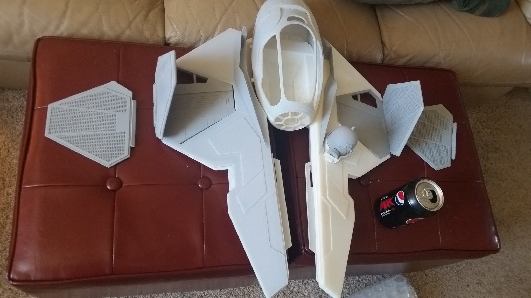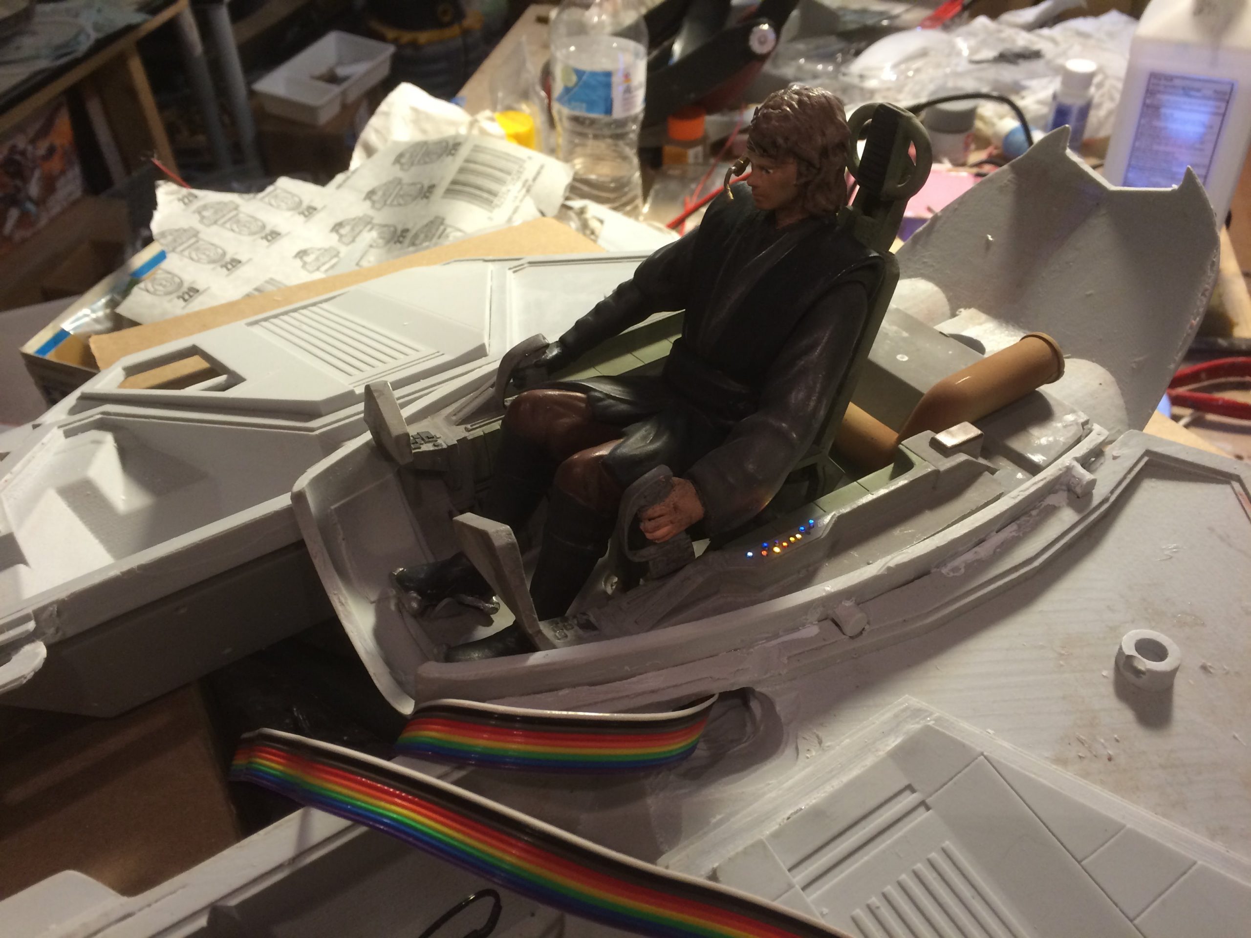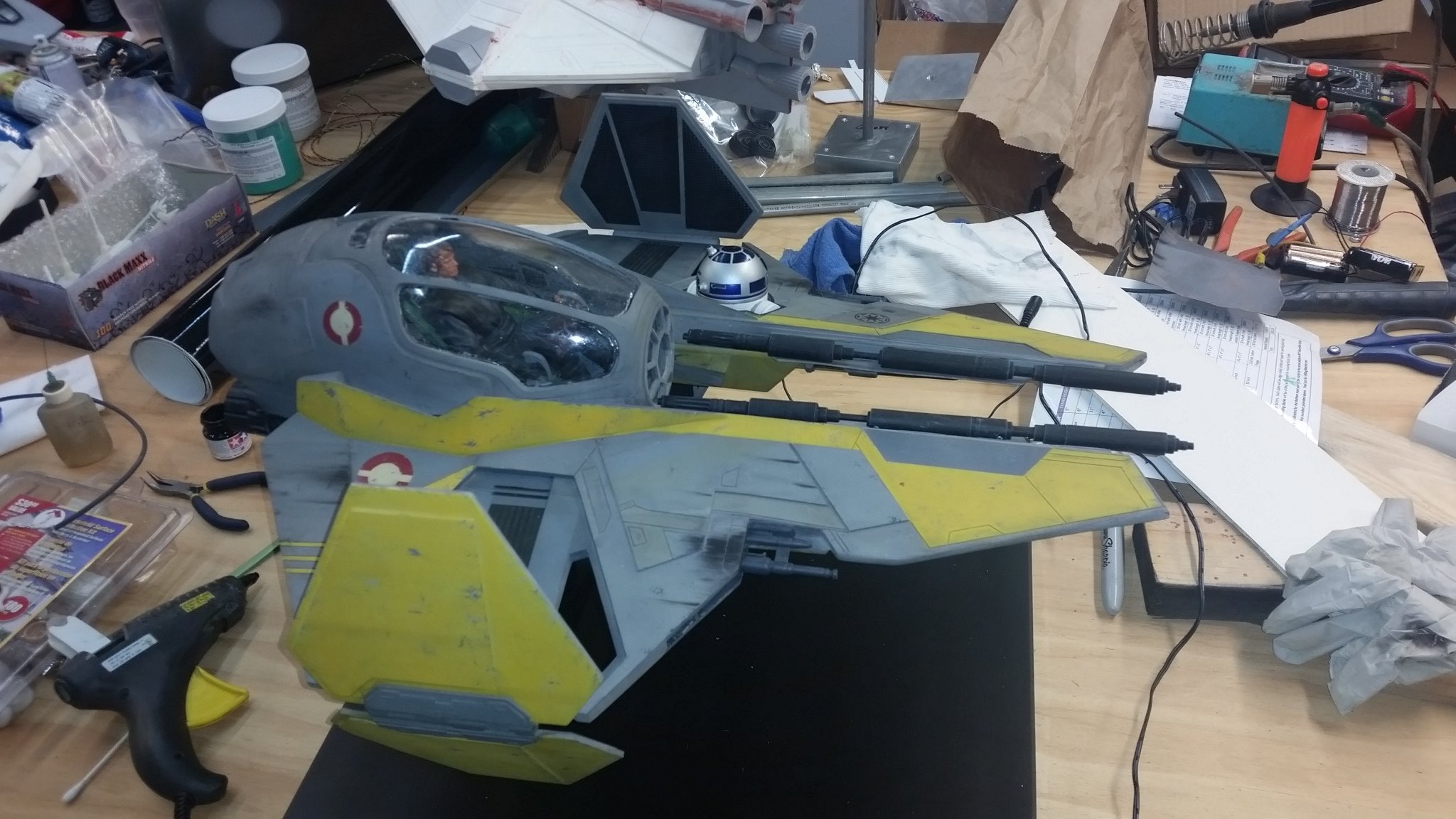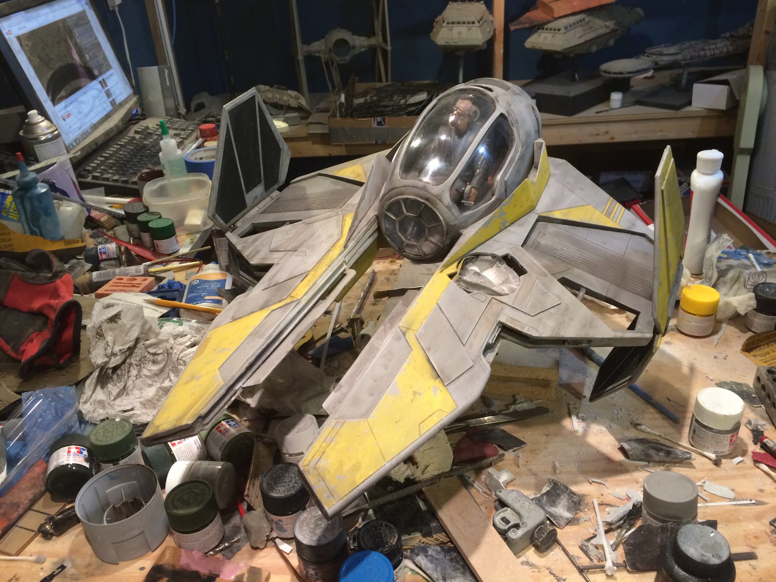 Kit Description: 1/10 Scale Jedi Starfighter from Revenge of the Sith!!! This kit is huge!! The castings are from the same molds used at TWO major theme parks here in the USA! All parts a pressure cast and bubble free! The kit includes Anakin Skywalker… (I will be offering an Obi-Wan figure). When finished this builds to be approximately 22” long x 18” wide. The R2 can be fully lit! Designed by industry 3D artist Mike Reis, this R2 is a work of art by itself! We are only offering 10 of these Starfighters (10 X Obiwans’ and 10 X Anakin’s), then the molds will go back into storage. These will be cast by the Master himself, Mike Salzo!!! With that knowledge, you know the quality will be there, and 100% delivery reliability!! These are made to order so it will be first come first served.
