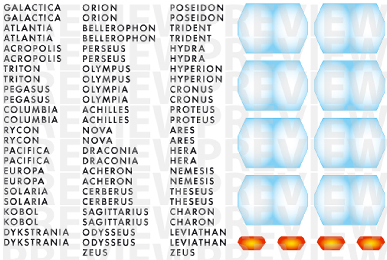 Number of Pieces: 1 sheet containing 37 Battlestar names and 4 sets of Engine-Glow decals