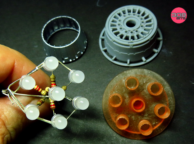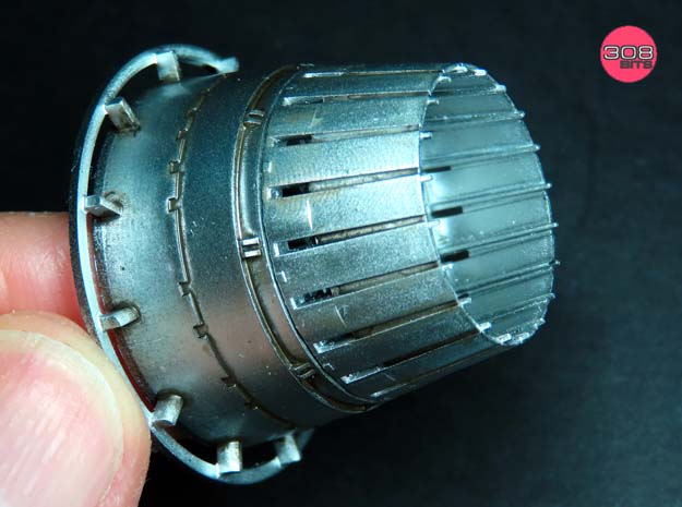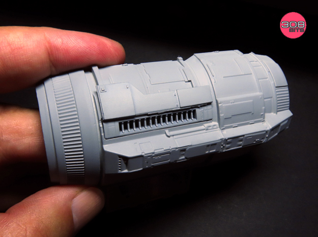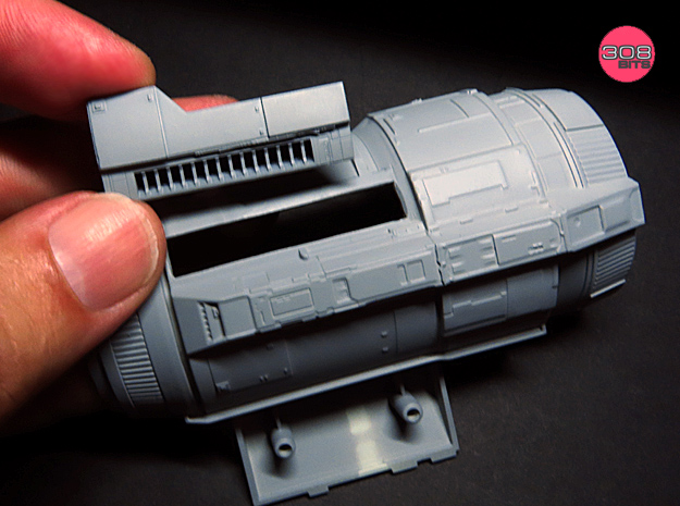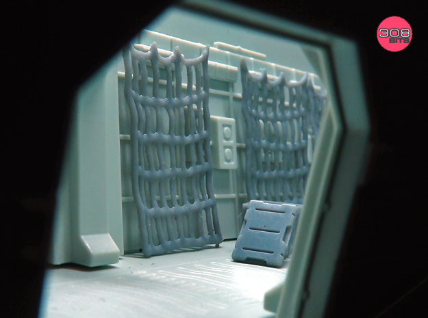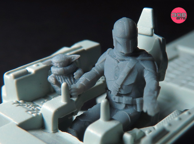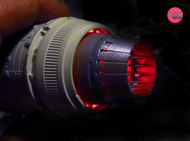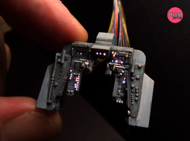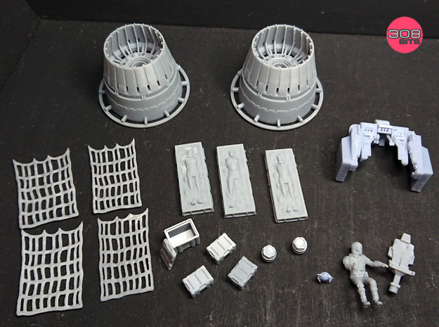 If you have purchased the new Revell 1/72 Razor Crest kit you have the opportunity to upgrade it with the 3D printed parts from 308 Bits (from the artist Antonio Regidor). In this complete set of parts you can upgrade the cockpit with a new cabin console, totally screen accurate, designed directly from the movie set, and a new pilot seat. And the console comes with pre drilled holes for 0.25 mm fiber optics! Also you have a new Mando pilot, totally accurate and fare better than the stock pilot, and a tiny Grogu, really nice! Another part you can upgrade is the cargo bay, with some netting, crates and boxes, and also Carbonite blocks, very well designed and crafted. The engines also have a very nice treatment. You can purchase a new set of engine exhaust and nozzles, totally accurate and a lot better than the stock parts, ready to be lighted. The engine exhausts are hollow and drilled, so you can put a led source on the back. To help on that matter 308 Bits has designed too a light diffuser part that goes on the back of his engine exhaust that works as a led support too. Genius! And there’s more, like a very special upgrade, the landing exhaust ports on the lower part of the engine nacelles. This part is totally accurate also, designed from the CGI.