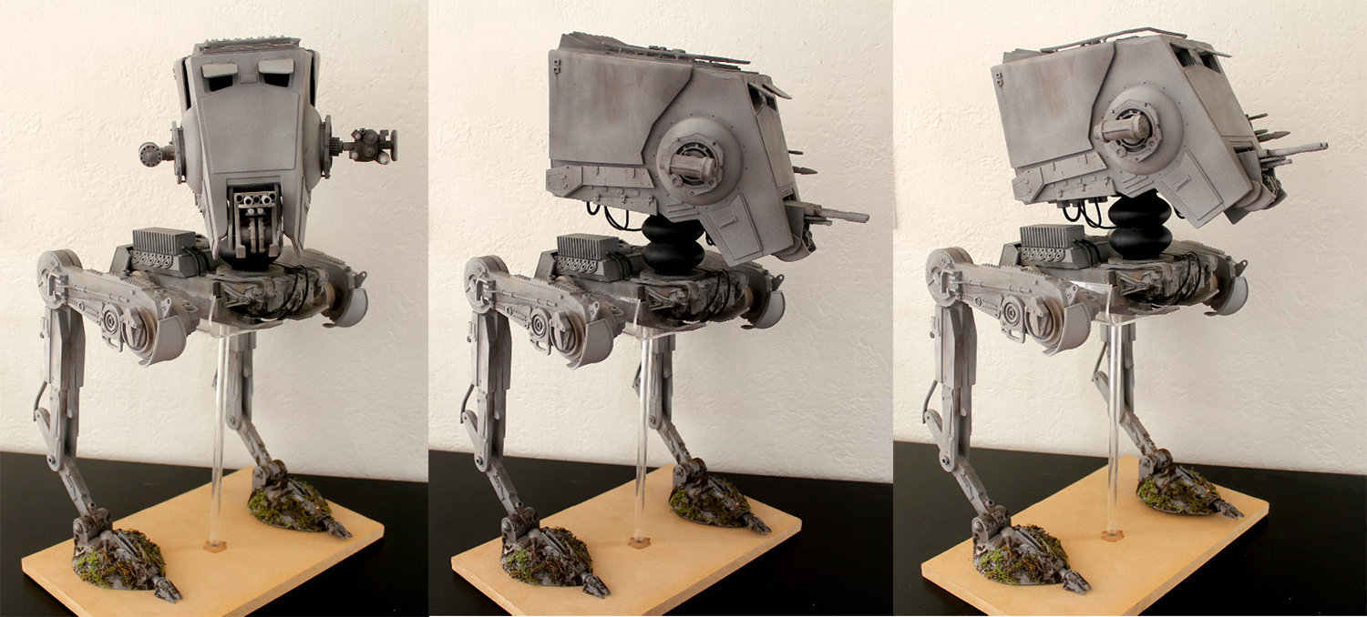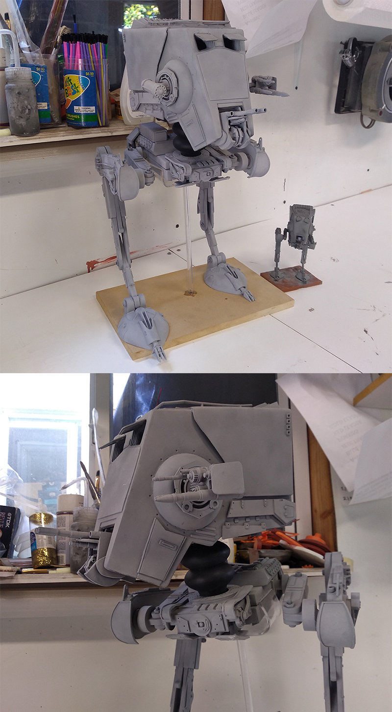 Kit Description: It took me nearly 2 years to finish this studio scale AT-ST from ROTJ, modeling one piece at a time in various programs using every available reference photo. I printed the parts to create a physical model kit, and I also am offering the 3D files for the 3D printing enthusiasts out there. I engineered the parts much like a real ILM model, with so many separated components that the builder shares the experience of the original ILM artists.