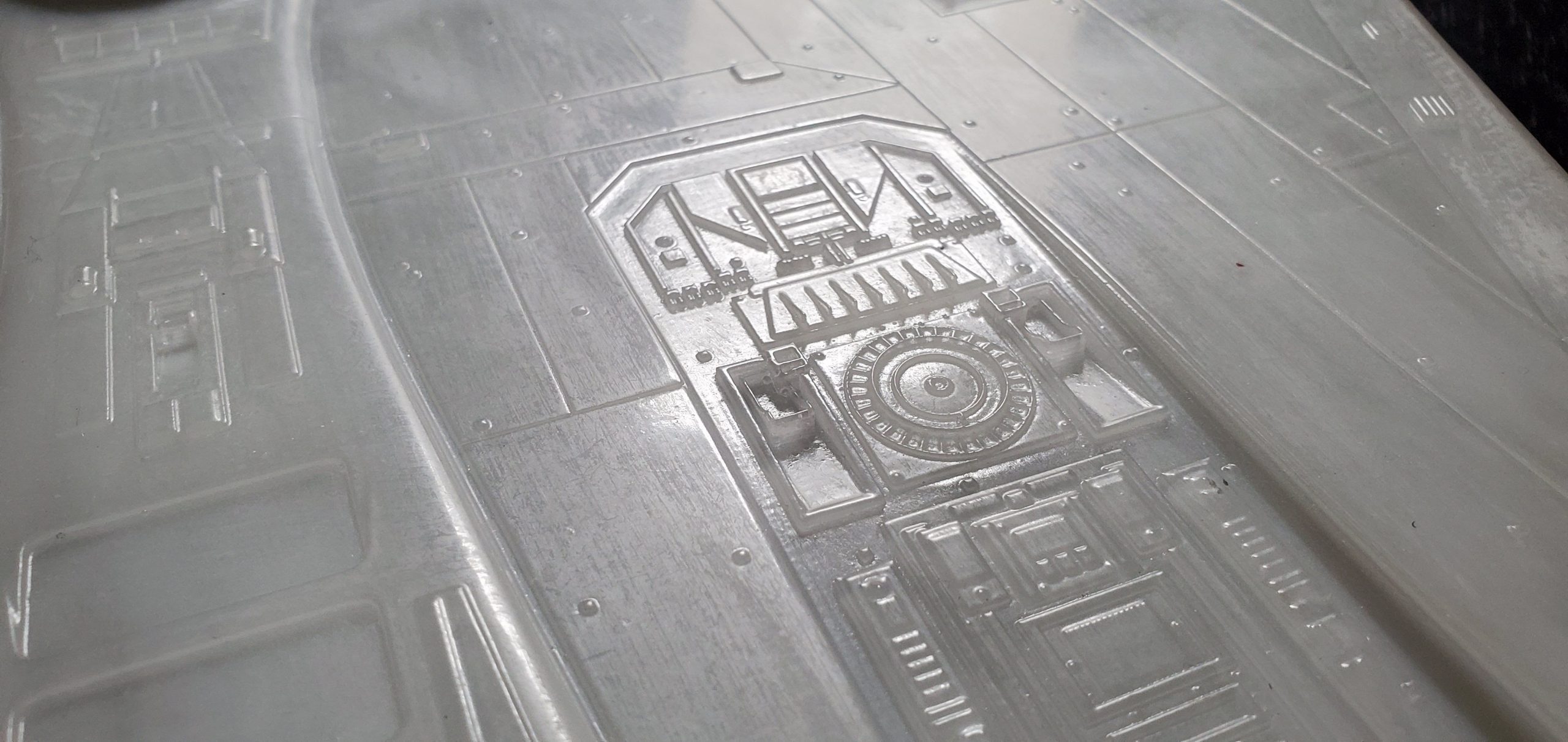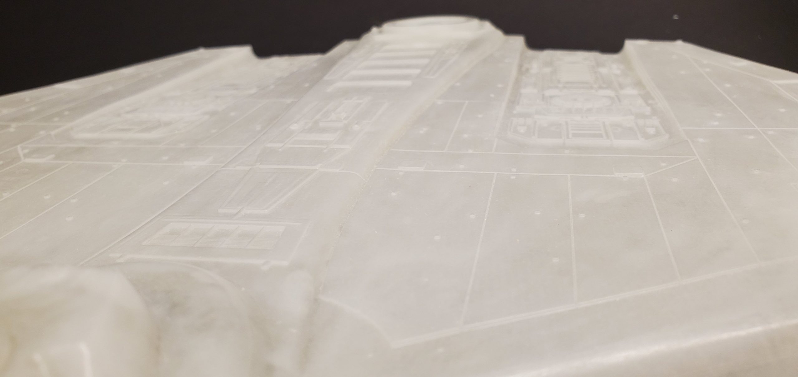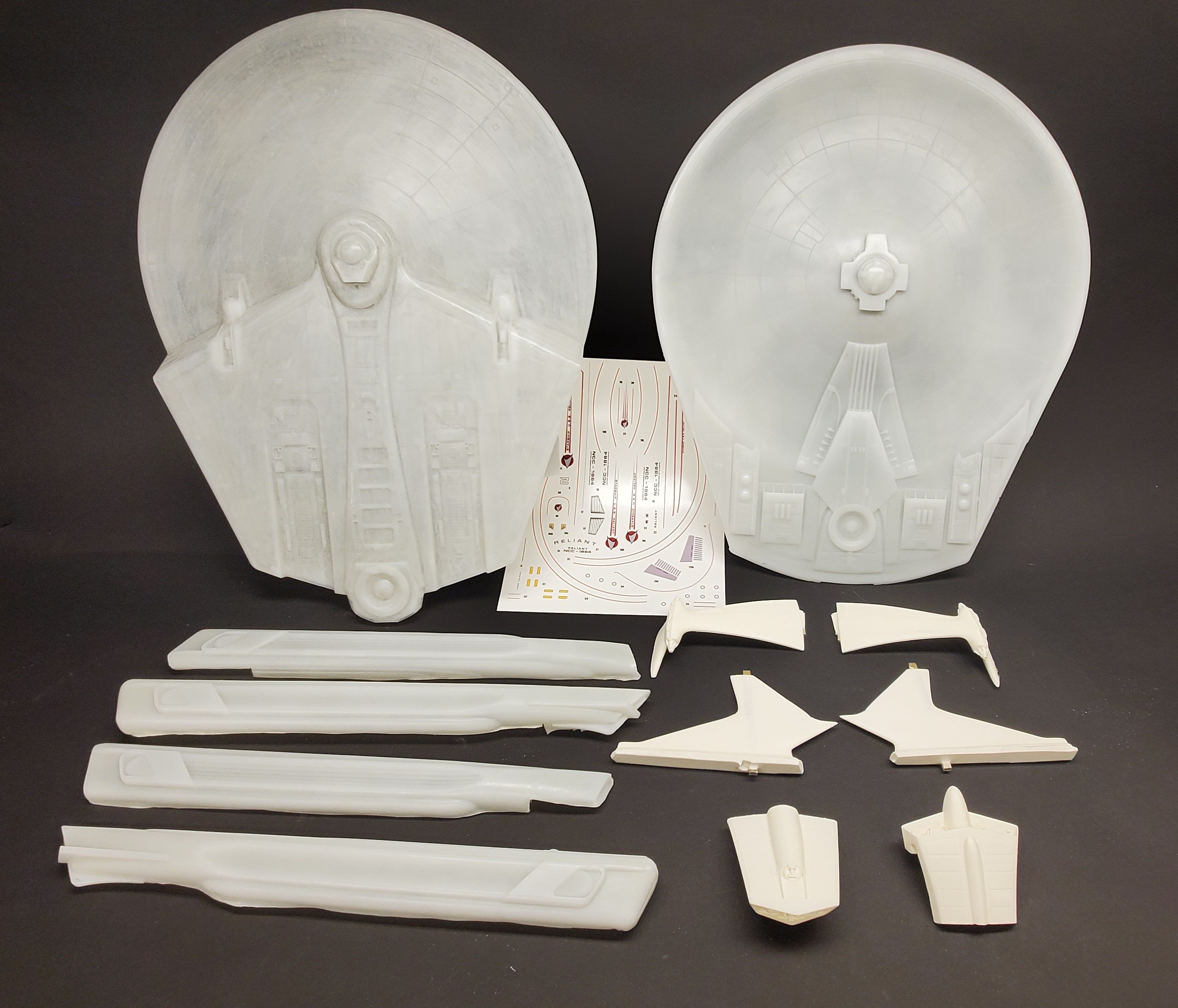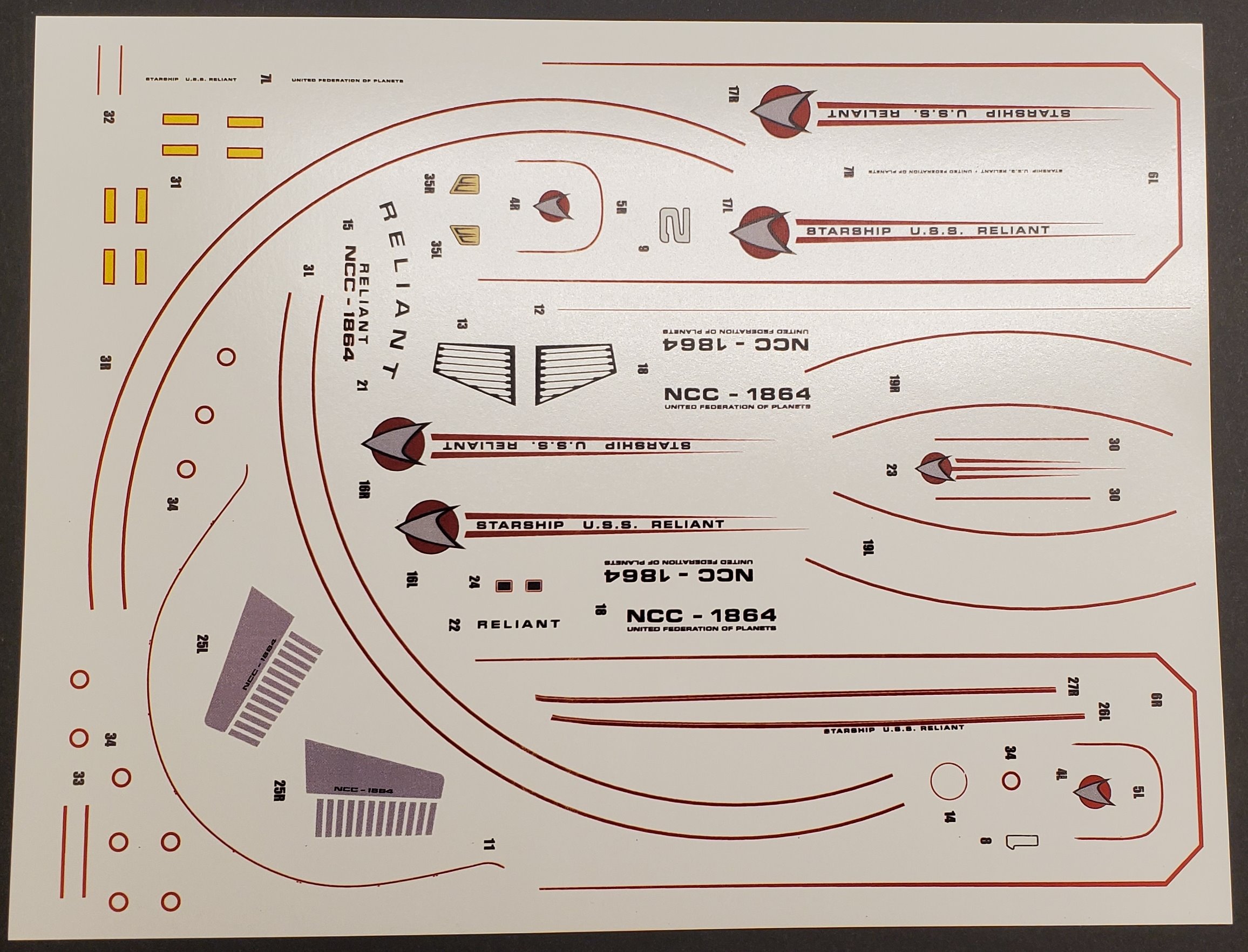 Kit Description: This is arguably one of the most villainous sci-fi models of all time. The NCC-1864 U.S.S. Reliant. This ship made its first appearance in the movie Star Trek the Wrath of Khan. Even though the Reliant is a Federation ship, she quickly gained an evil reputation while being commanded by Khan. The model body and nacelles are made out of translucent fiberglass to make window lighting and Raytheon lighting much easier. Extra care was taken to make sure all detail is captured in the cast. The pylons, roll bar and torpedo housing are made from an extra light urethane resin to reduce weight. The torpedo housing comes in 2 pieces to make lighting easier. The roll bars and pylons have 1/8” x 1/4” brass rods through them which allows up to 8 24-gauge wires through them. The model also comes with 2 decal sheets with all markings and registration numbers for the USS Reliant. All window and RCS thruster locations were cast into the model to make lighting and gap filling easier. The windows and RCS thrusters are recessed into the model to make visibility easier. This model also comes with 2 shuttle bays made out of a lightweight urethane and a transparent urethane to make lighting easier. Please see photos below for more details. This model is the same scale as the Polar Lights 1/350 Enterprise Refit.