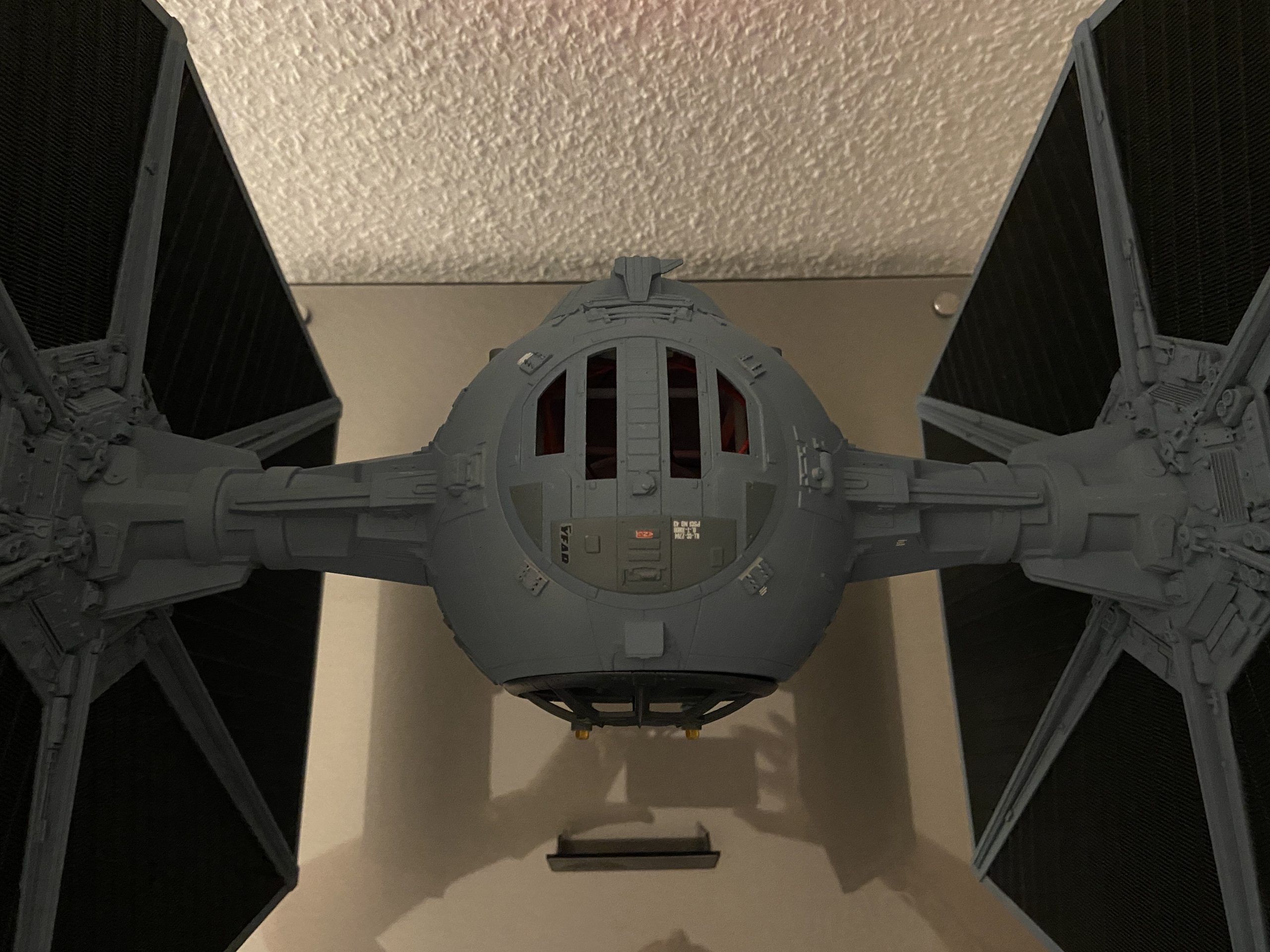 “I have completed my personal studio scale Imperial Fighter that I built from the Scifi Studio Scale Modellers “Model T” Kit. This model is 1/24 and is fully 3D Printed. SciFi Studio Scale Modellers spent a lot of time developing the 3D Model in order to make it the best possible replica kit. It is accurate to the original filming miniatures, and SciFi Studio Scale Modellers created a near perfect solution to simulate the Koolshade used for the wings in 1977.