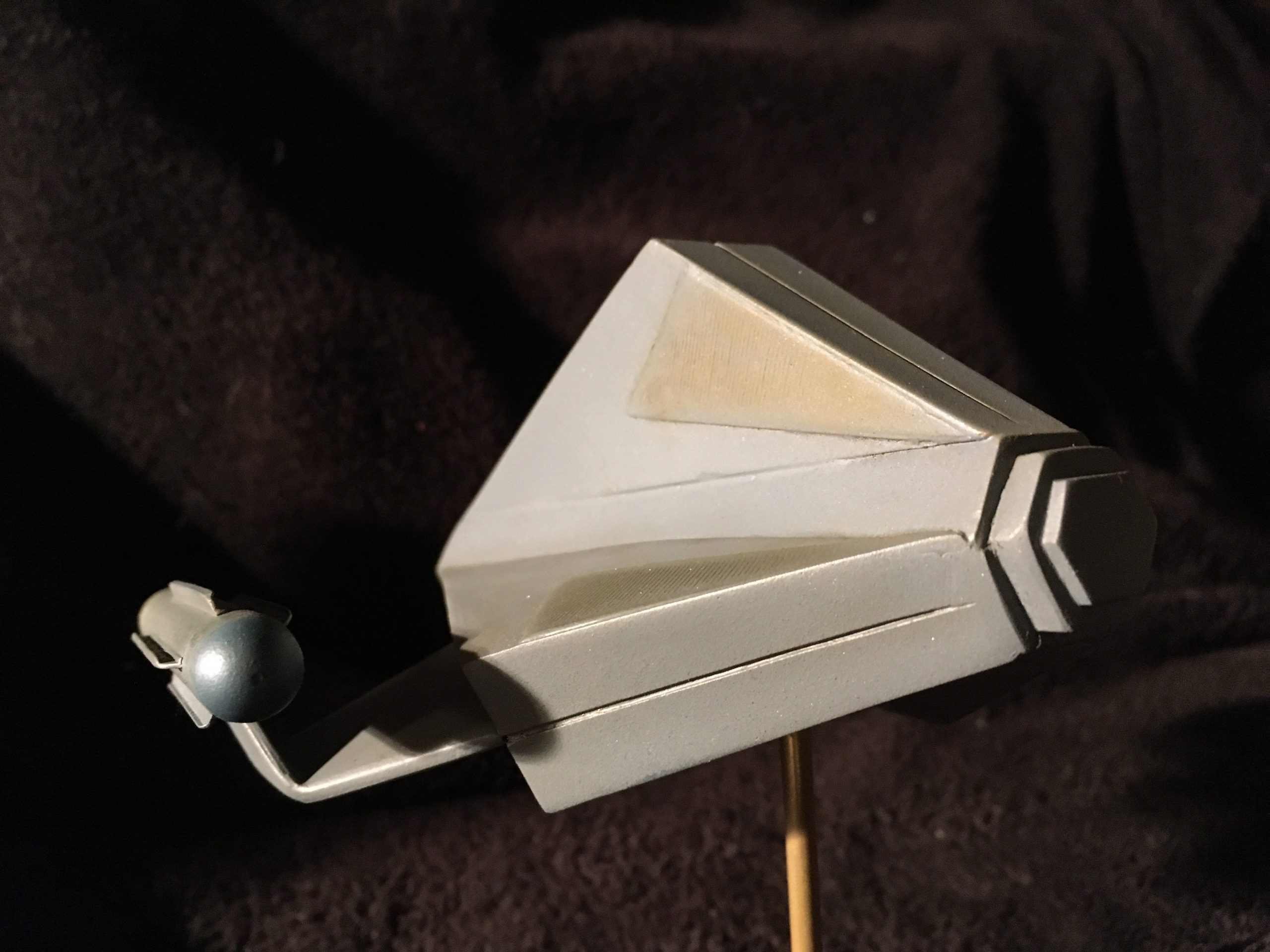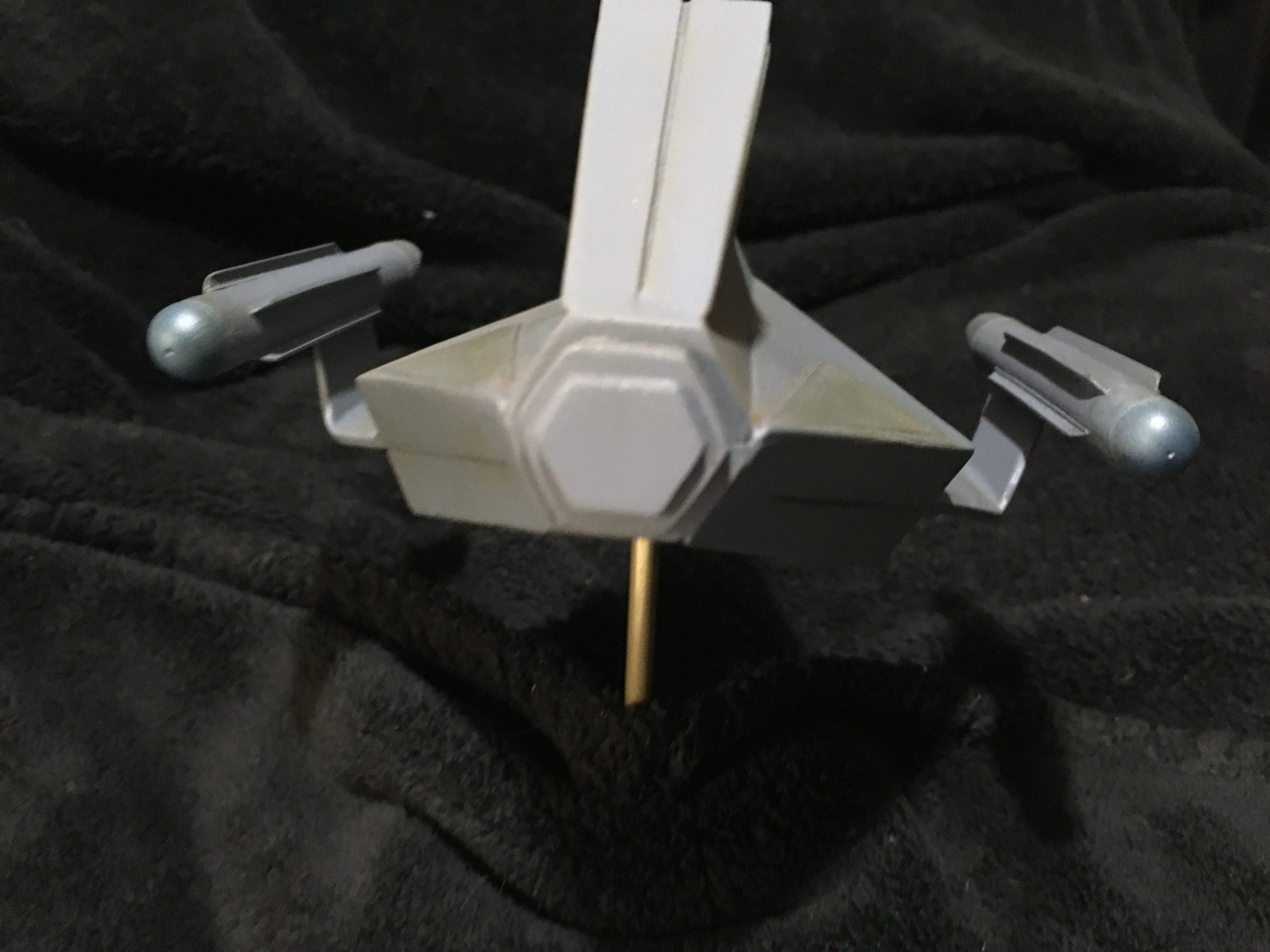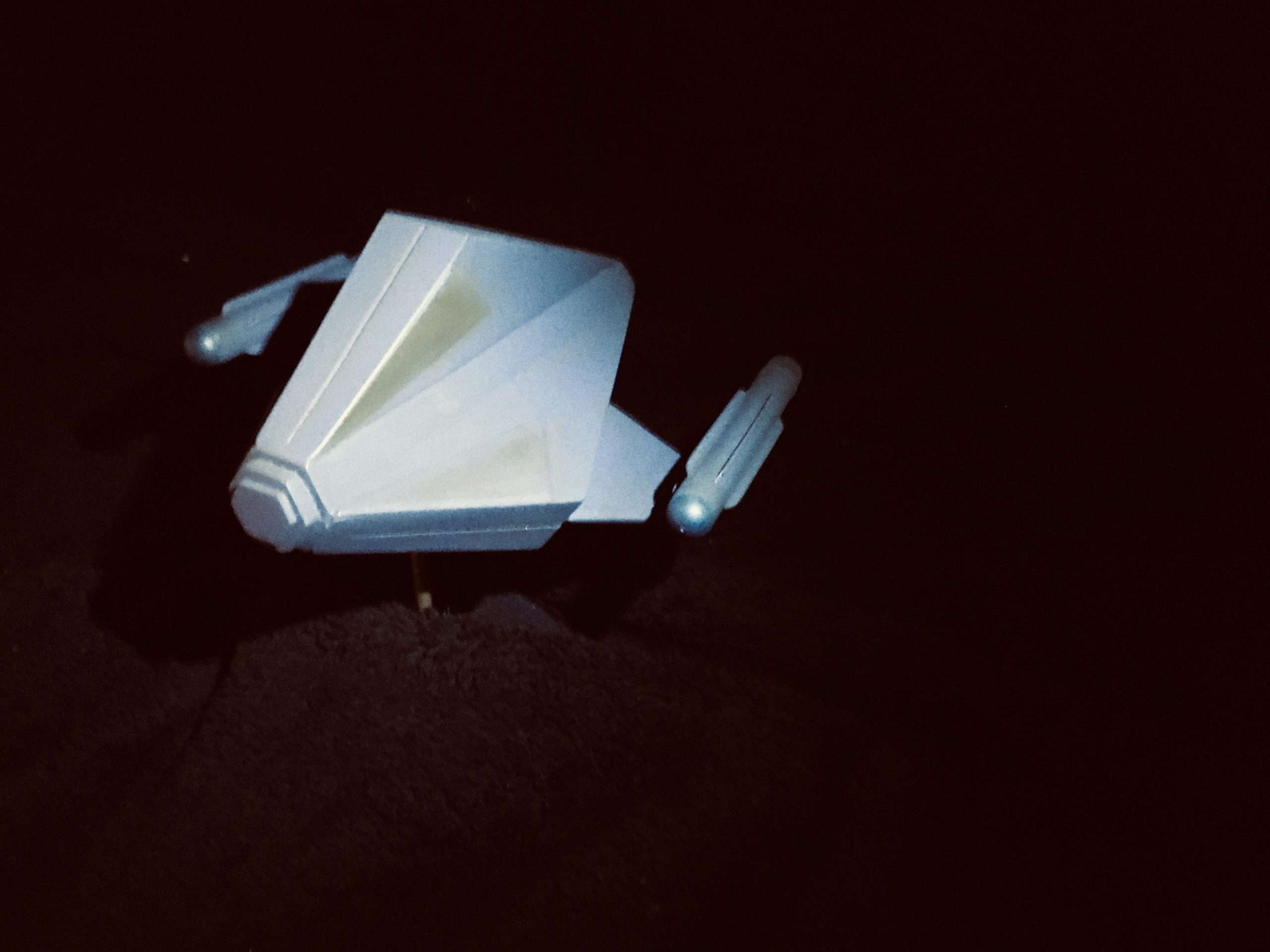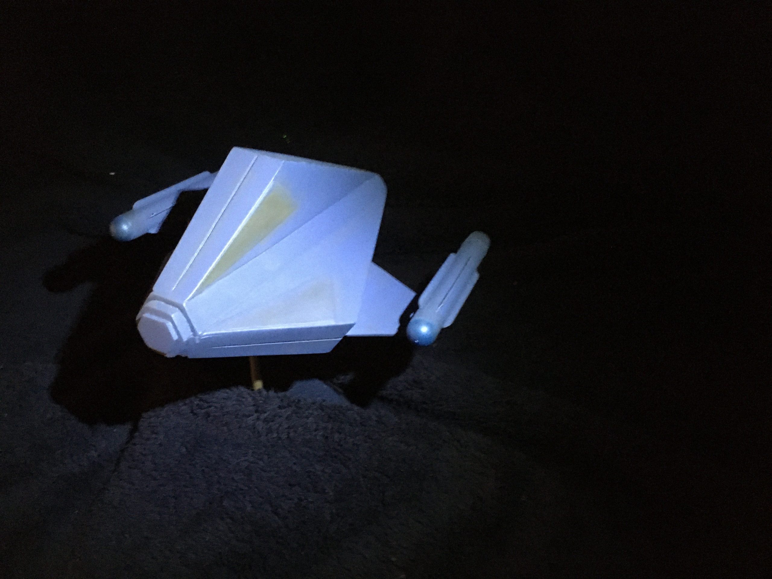 Kit Description: Here is our new kit… from Star Trek this is SS Aurora in 1:48 scale. It is a resin hollow cast that measures 6″ x 5.5″ when completed.