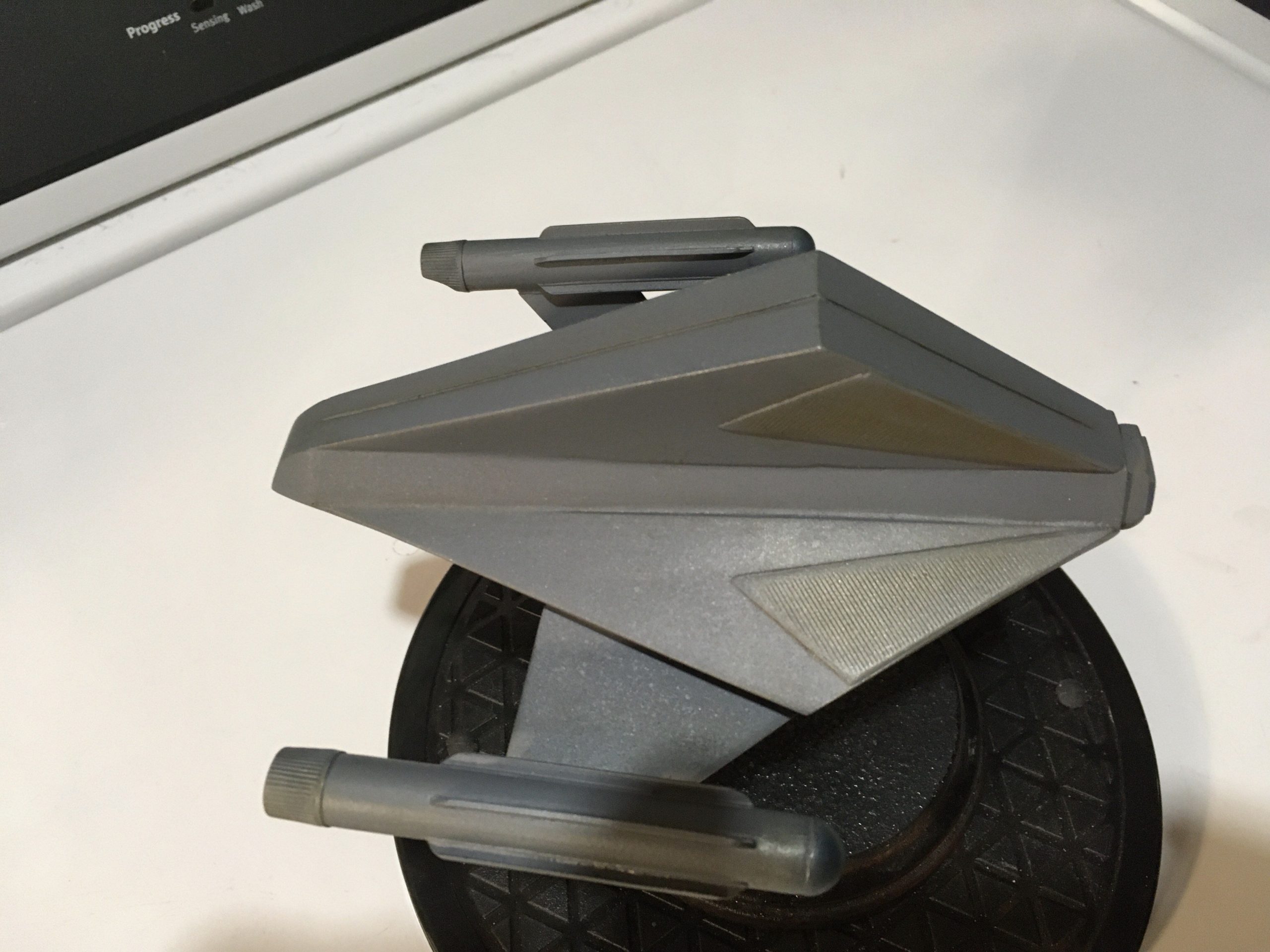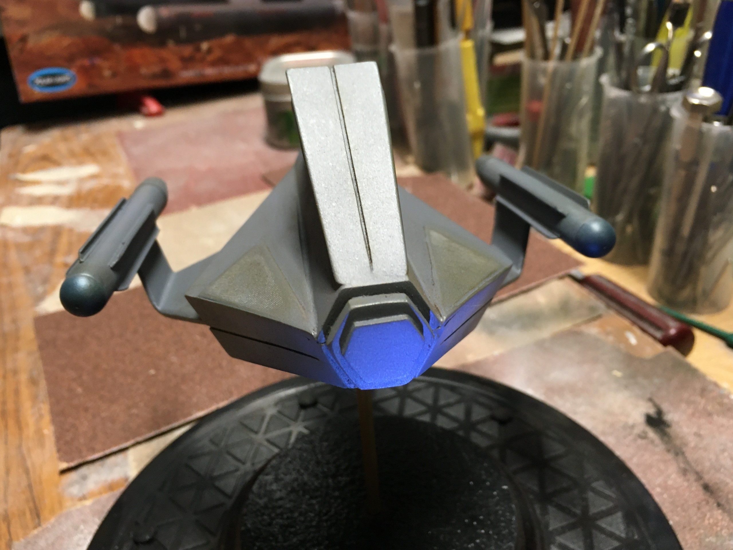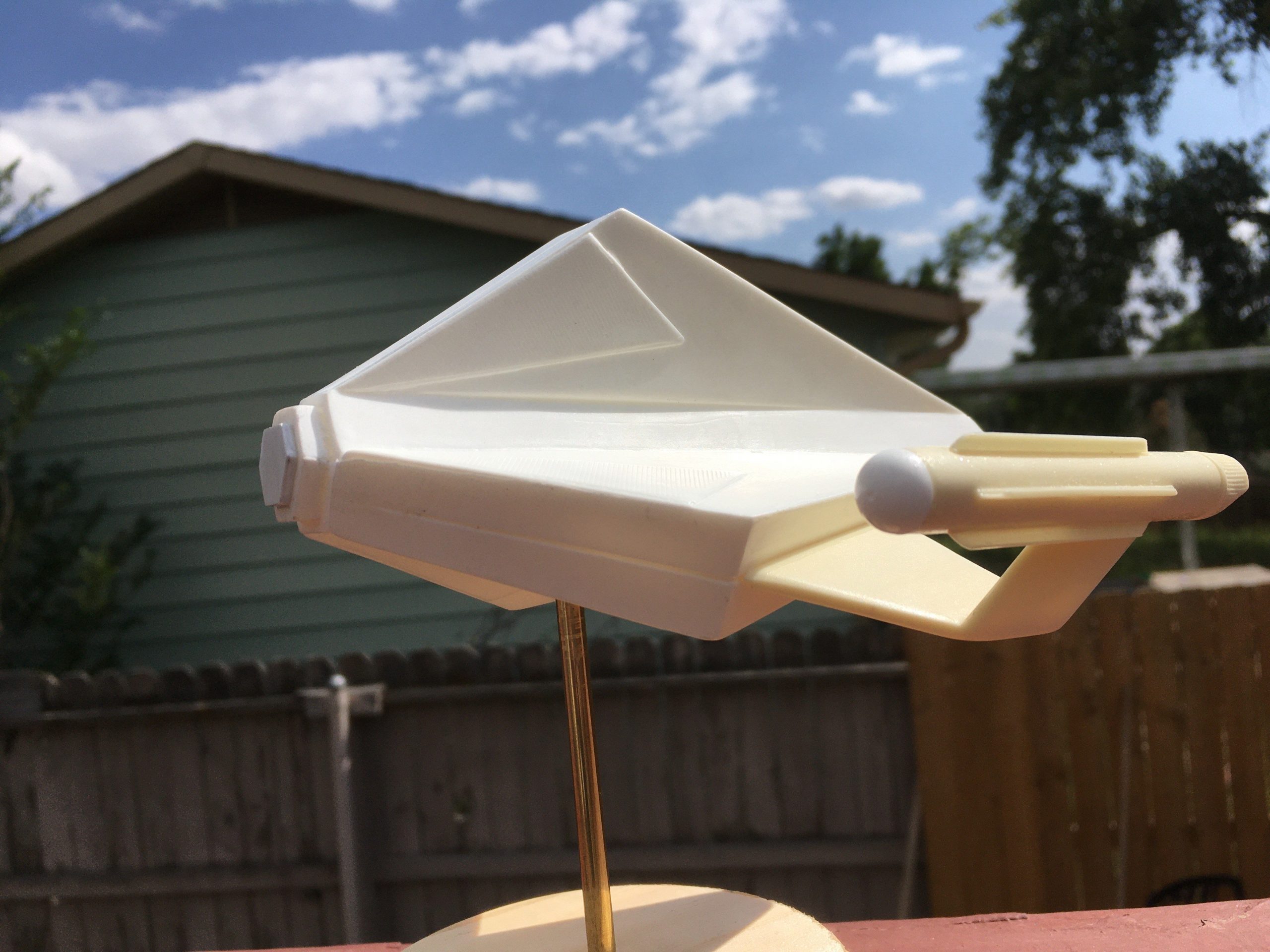 Kit Description: Here is our new kit… from Star Trek this is SS Aurora in 1:48 scale. It is a resin hollow cast that measures 6″ x 5.5″ when completed.