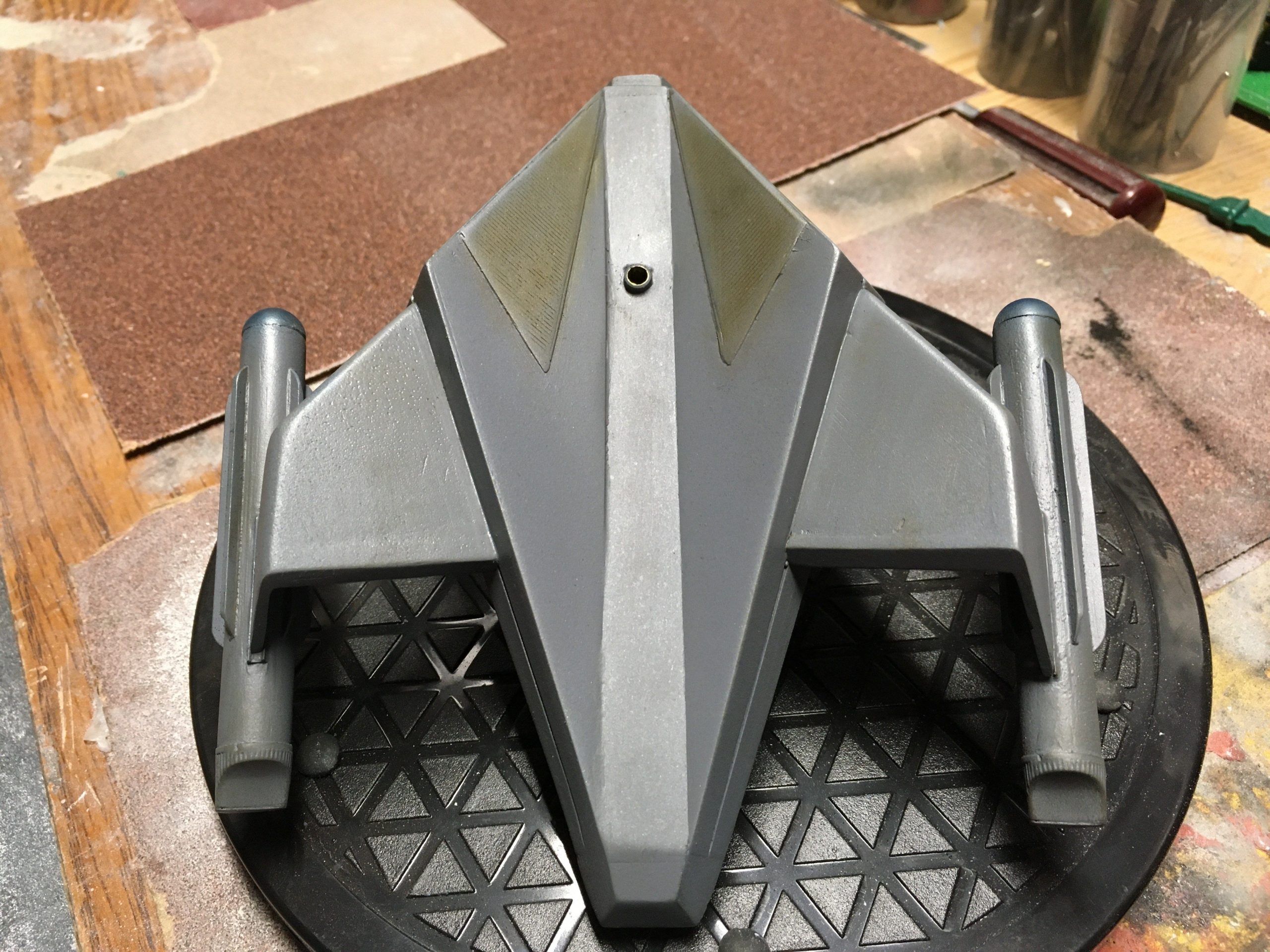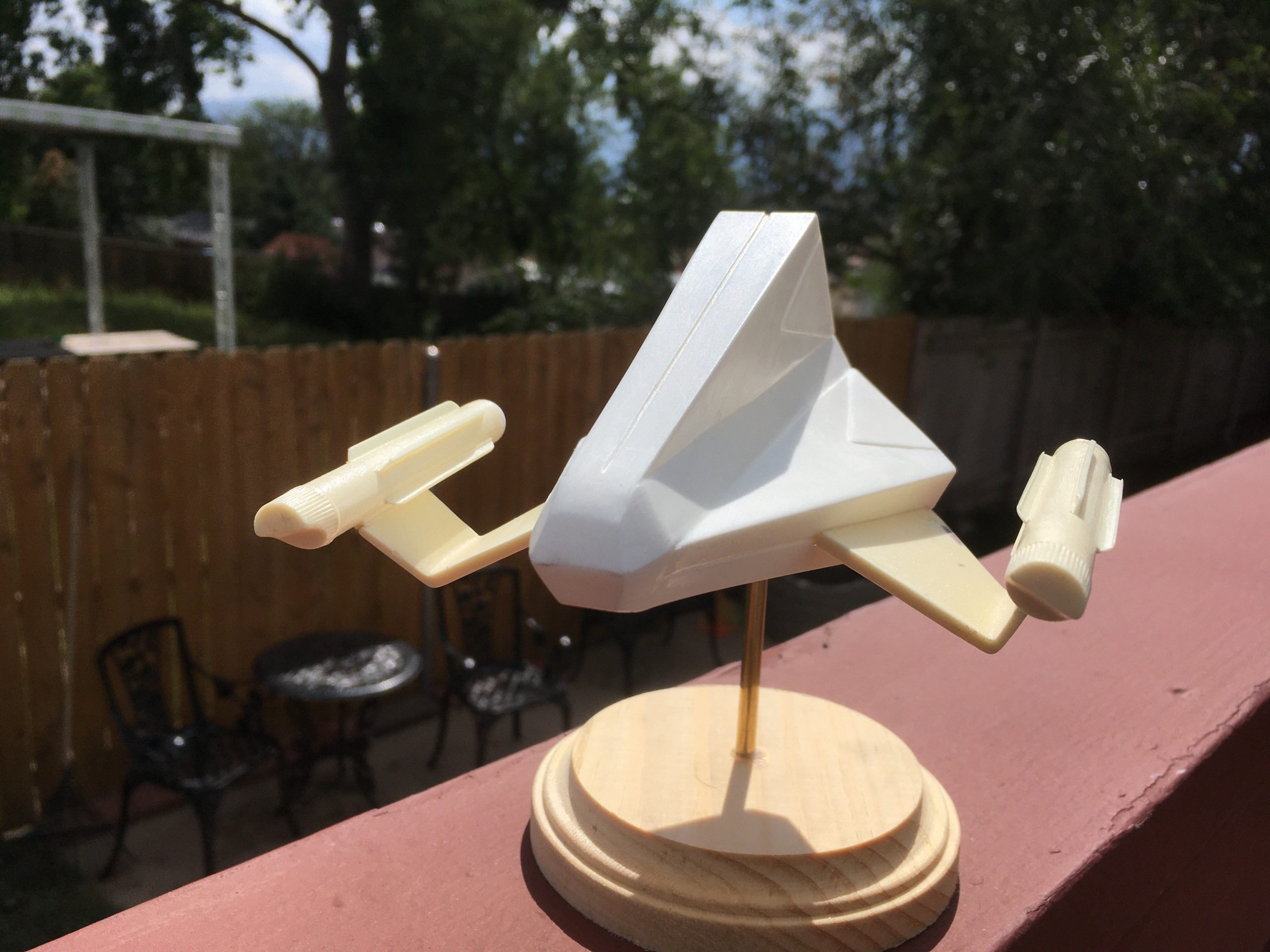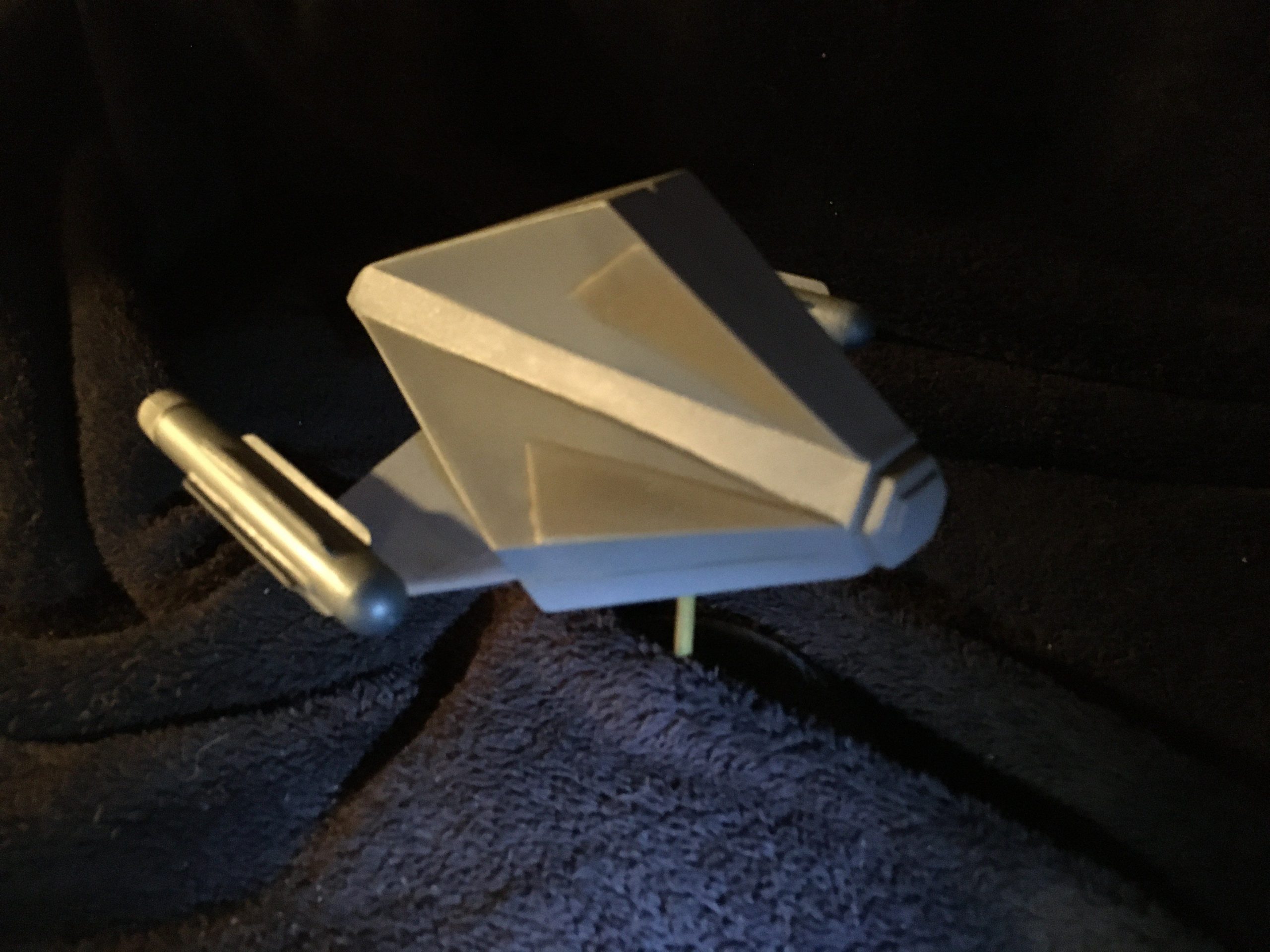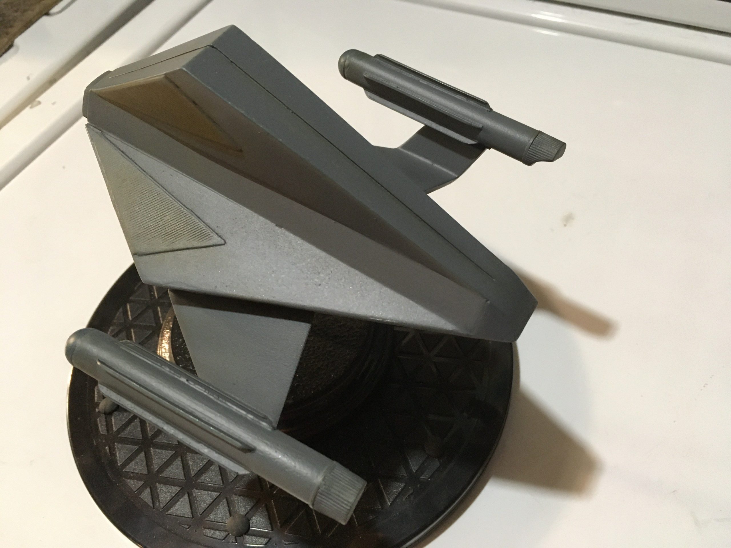Kit Description: Here is our new kit… from Star Trek this is SS Aurora in 1:48 scale. It is a resin hollow cast that measures 6″ x 5.5″ when completed.