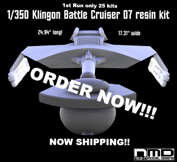 Kit Description: The Klingon D7 Battle Cruiser as seen in the original Star Trek TV series. This model is in scale with the 1/350 Polar Light Enterprise! Exact in all the details as seen on the actual model used for the series!!. Kit includes accurate water slide decals. approx. 24.94″ x 17.31″ x 6.31″ Price: $300.00 plus $25 shipping in the states. Taking orders NOW! Limited first run of 25 pieces!