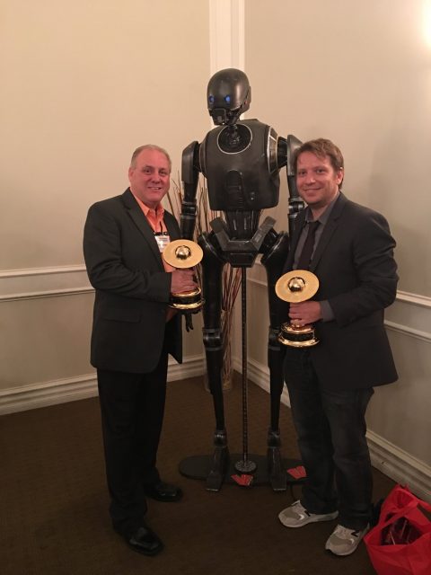 Pictured Above: KORBANTH Owner Randy Johnson with this K2SO built kit, and Rogue One Director Gareth Edwards at the April 2017 Saturn Awards
