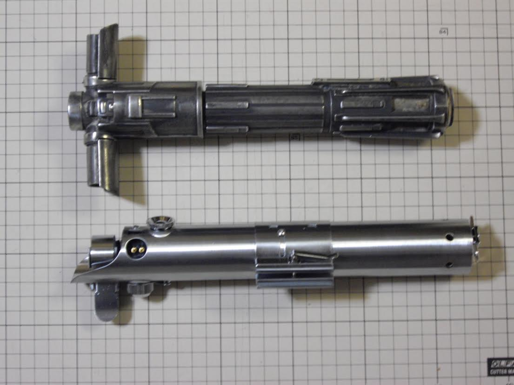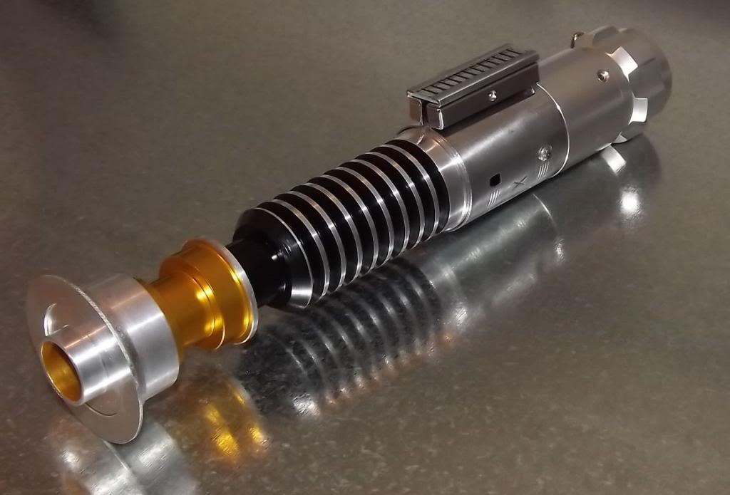 These fantastic Saber recreations are METAL!! Like the actual props used, these come hollow for a person to add their own blade, light and sound kits for which may also all be ordered separately through KORBANTH Vendor Contacts. This is the starting point for your own Saber to do battle with, or simply display! Once again, what is for sale here are the hollow Sabers, (as shown below), that are exactly like the originals in the films!! The Graflex 2.0, the MPP, and all the others! If you have ever wanted a real saber…. this is your chance!!