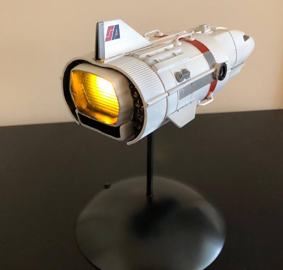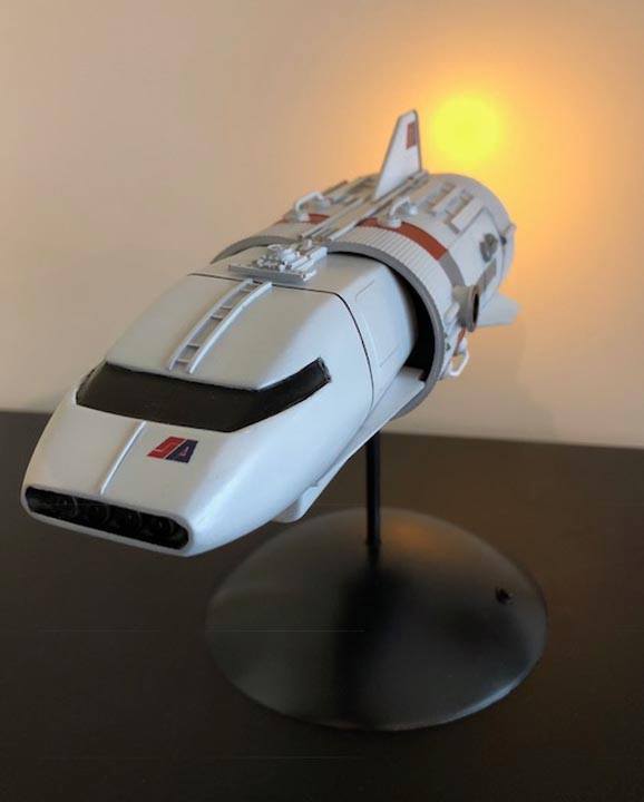 Kit Description: If you are a fan of the space academy TV show, then this is a must have. Mastered by Alfred Wong and was Produced and distributed by LARSON DESIGNS/LUNAR MODELS. built and painted by Jerry Hedgecock. Pictures and built model was provided by Jerry Hedgecock.