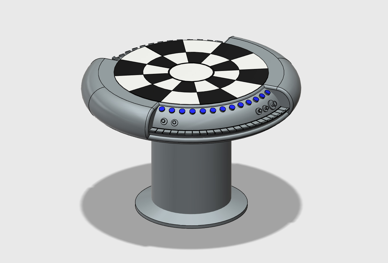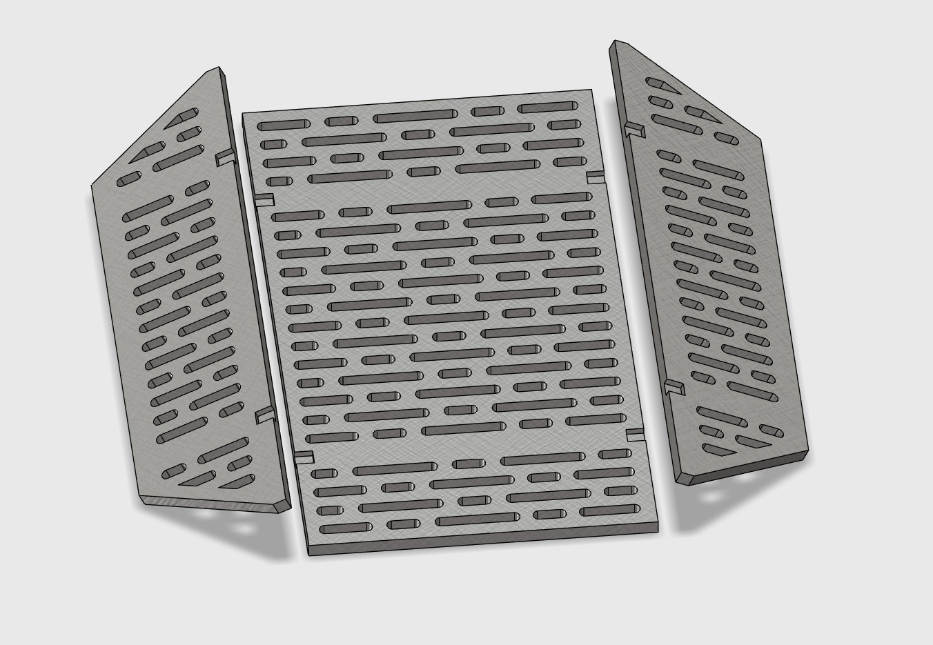 I’ve started designing the bits to upgrade and detail the hall of the Falcon: the Dejarik table, the seats, the barrels, rugged cases, cans, tools… And I’ve designed too the floor grilles, with the pits access too.