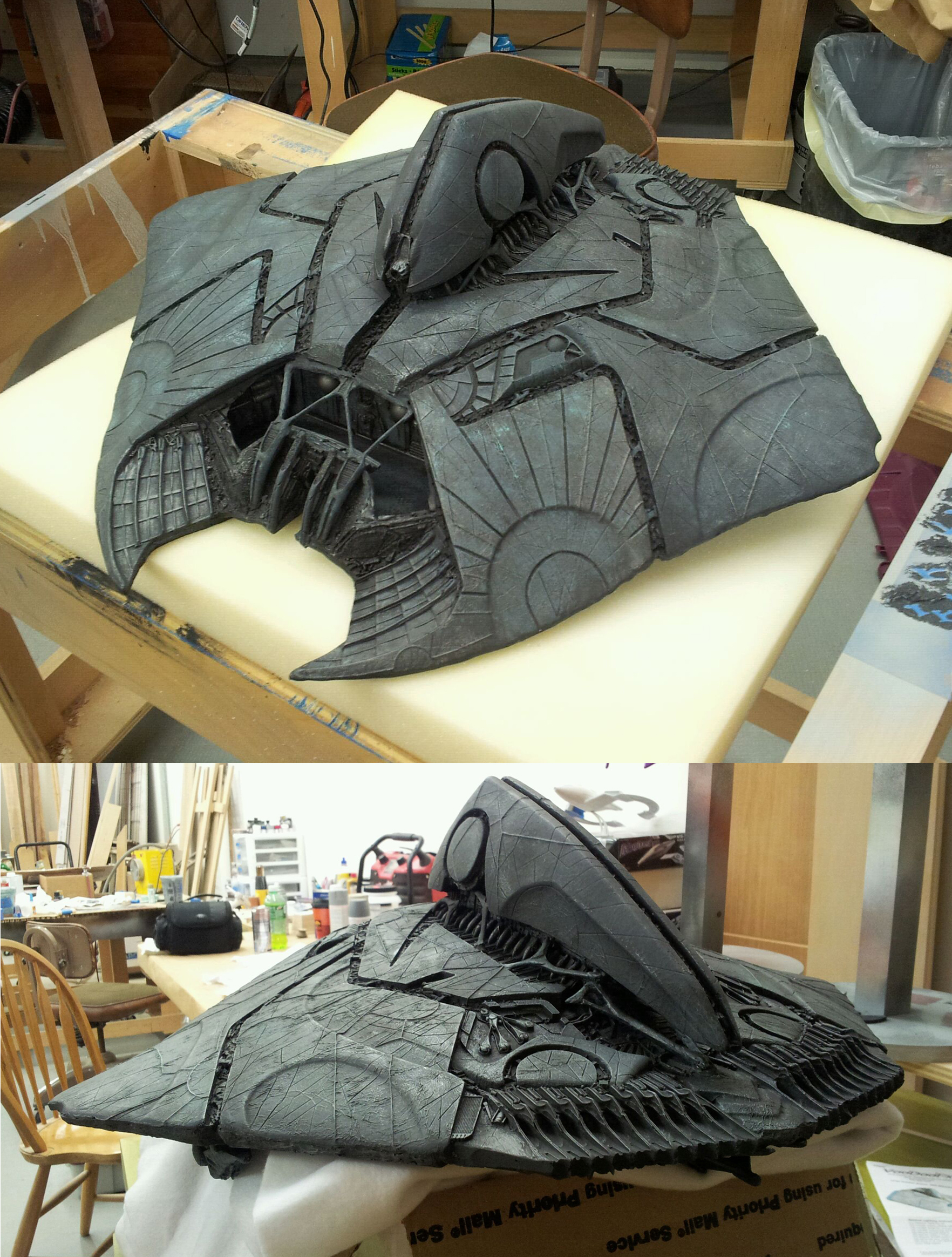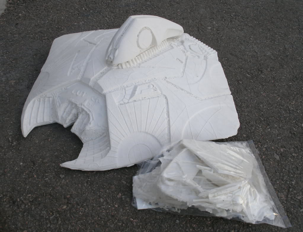 Kit Description: This is the Studio Scale Independence Day (ID4) Alien Attacker – absolutely HUGE model that catches everyone’s eye. The model is rotocast in high impact urethane resin so it’s extremely strong. The finished model measures 24″ long, 22″ wide, and 10″ tall, weighing in at about 7 pounds.