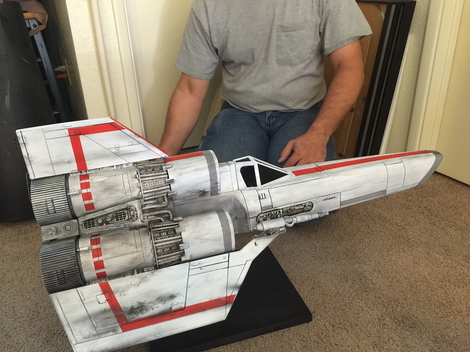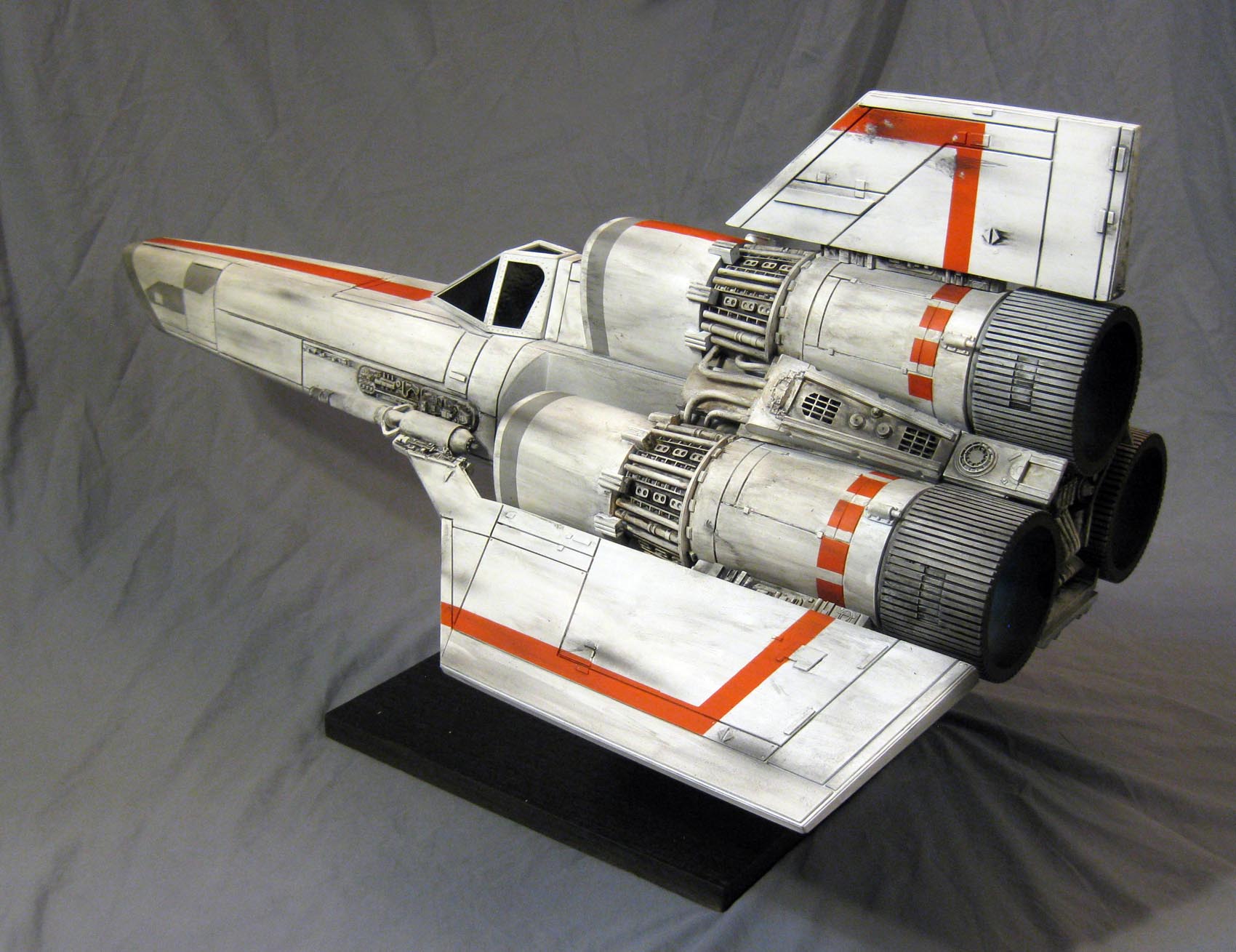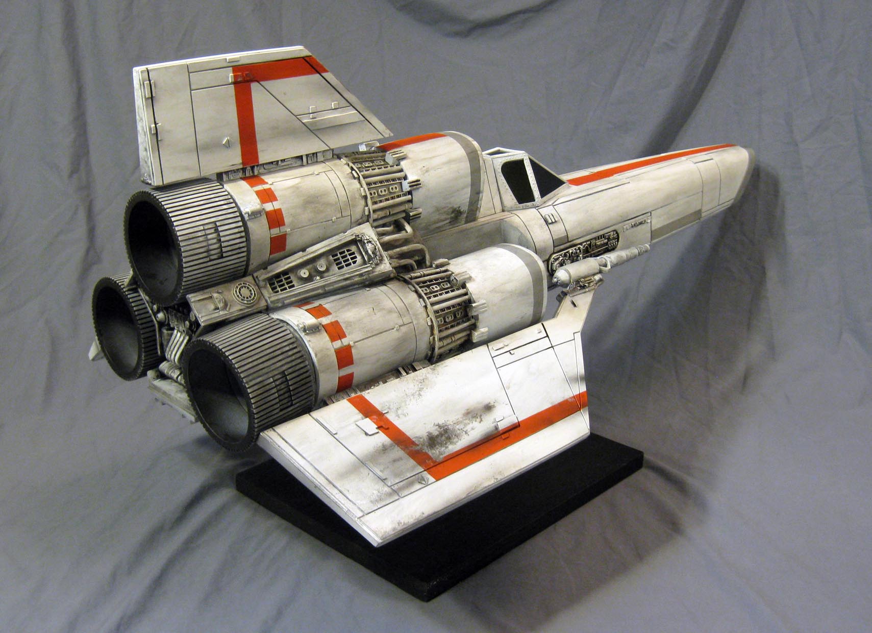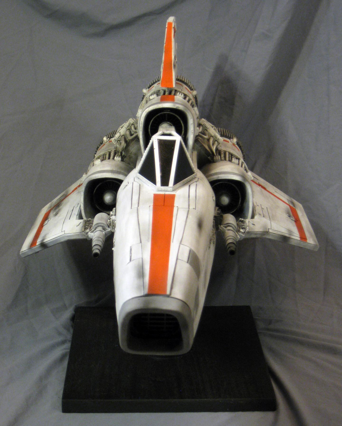 Kit Description: Vintage BattleStar Galactica 36-37 inch long colonial viper model kit now available for immediate shipping. This 60-70 piece model kit is 1/8 scale and just awesome to behold. Pictured are images of a built/painted and lit Viper, and I am making these kits available for $695 US dollar and they come with all parts in perfect condition, with little finishing required, you can start building right when you open the box.