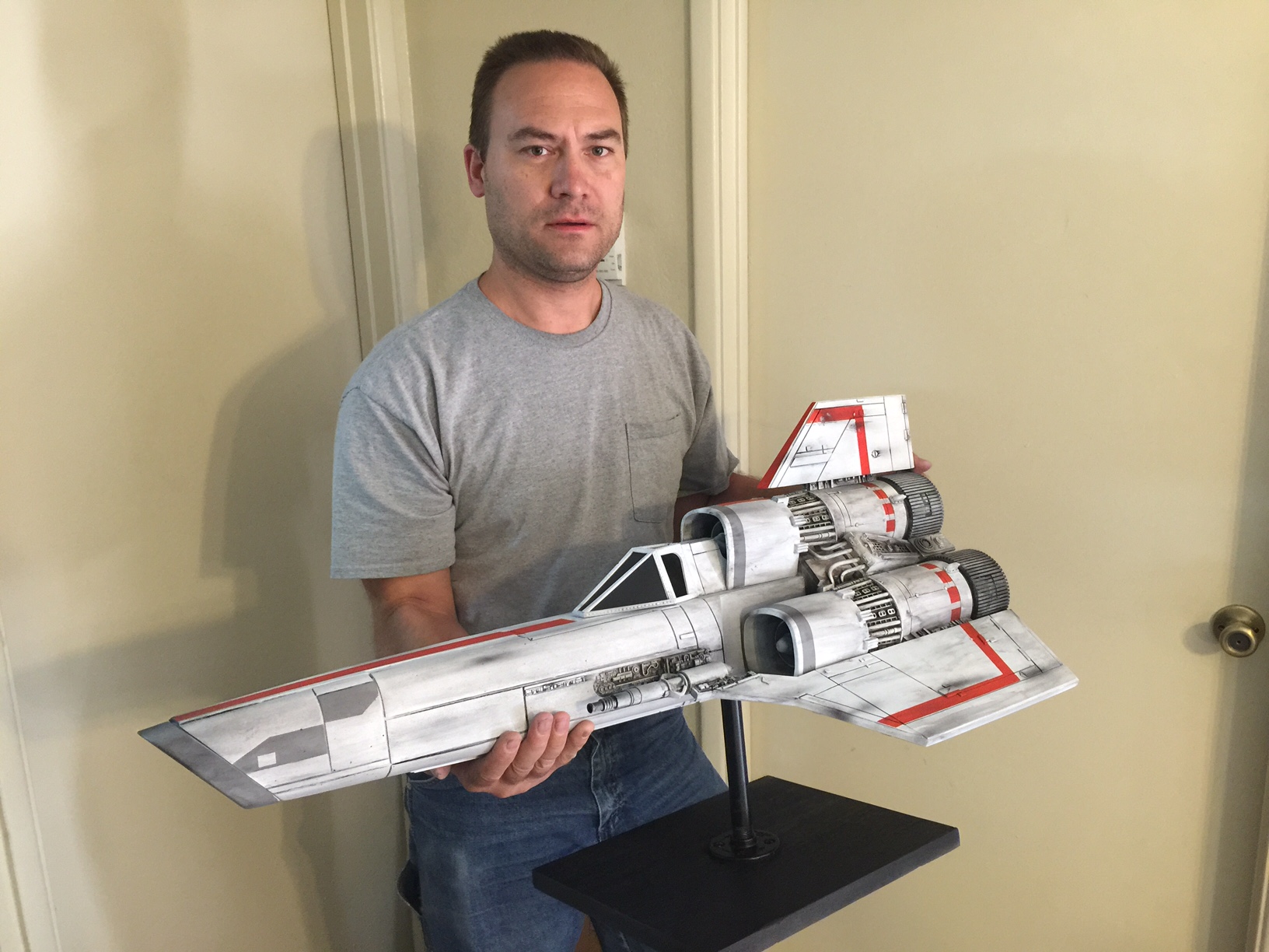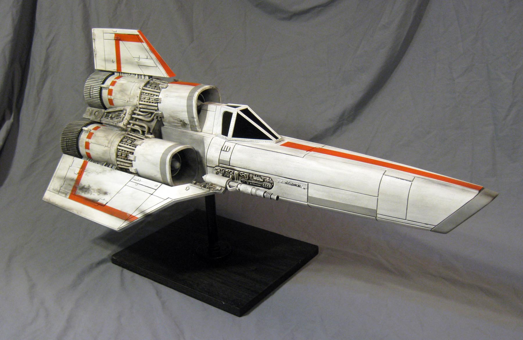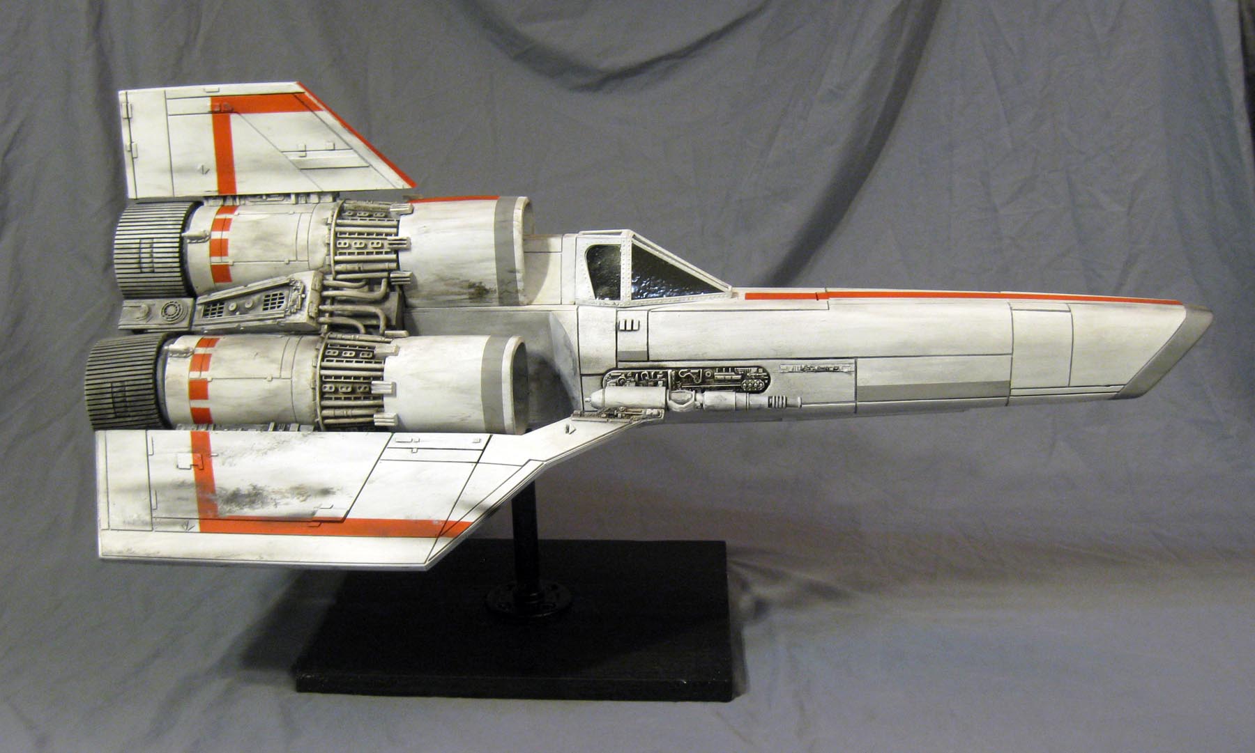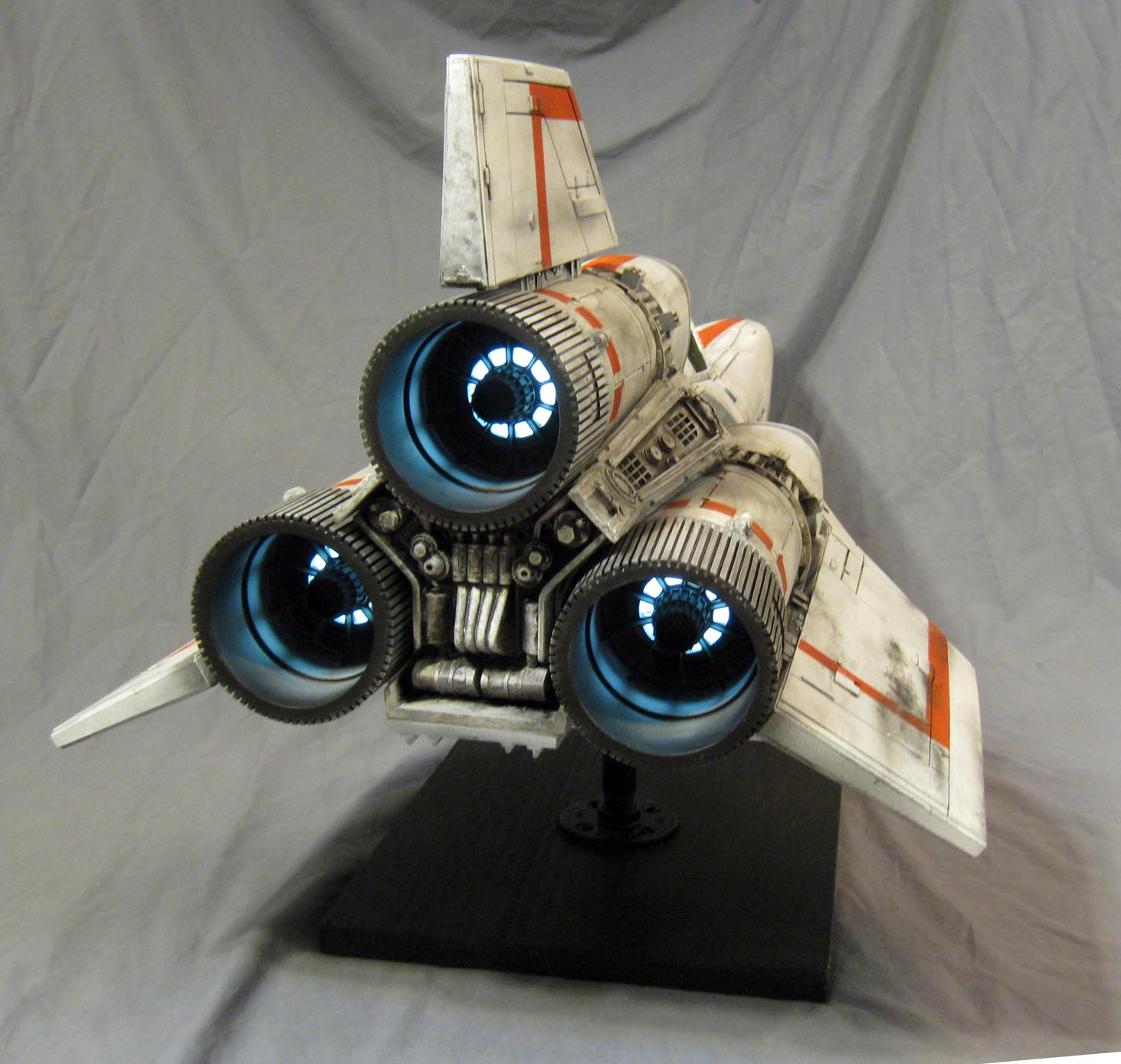 Kit Description: Vintage BattleStar Galactica 36-37 inch long colonial viper model kit now available for immediate shipping. This 60-70 piece model kit is 1/8 scale and just awesome to behold. Pictured are images of a built/painted and lit Viper, and I am making these kits available for $695 US dollar and they come with all parts in perfect condition, with little finishing required, you can start building right when you open the box.