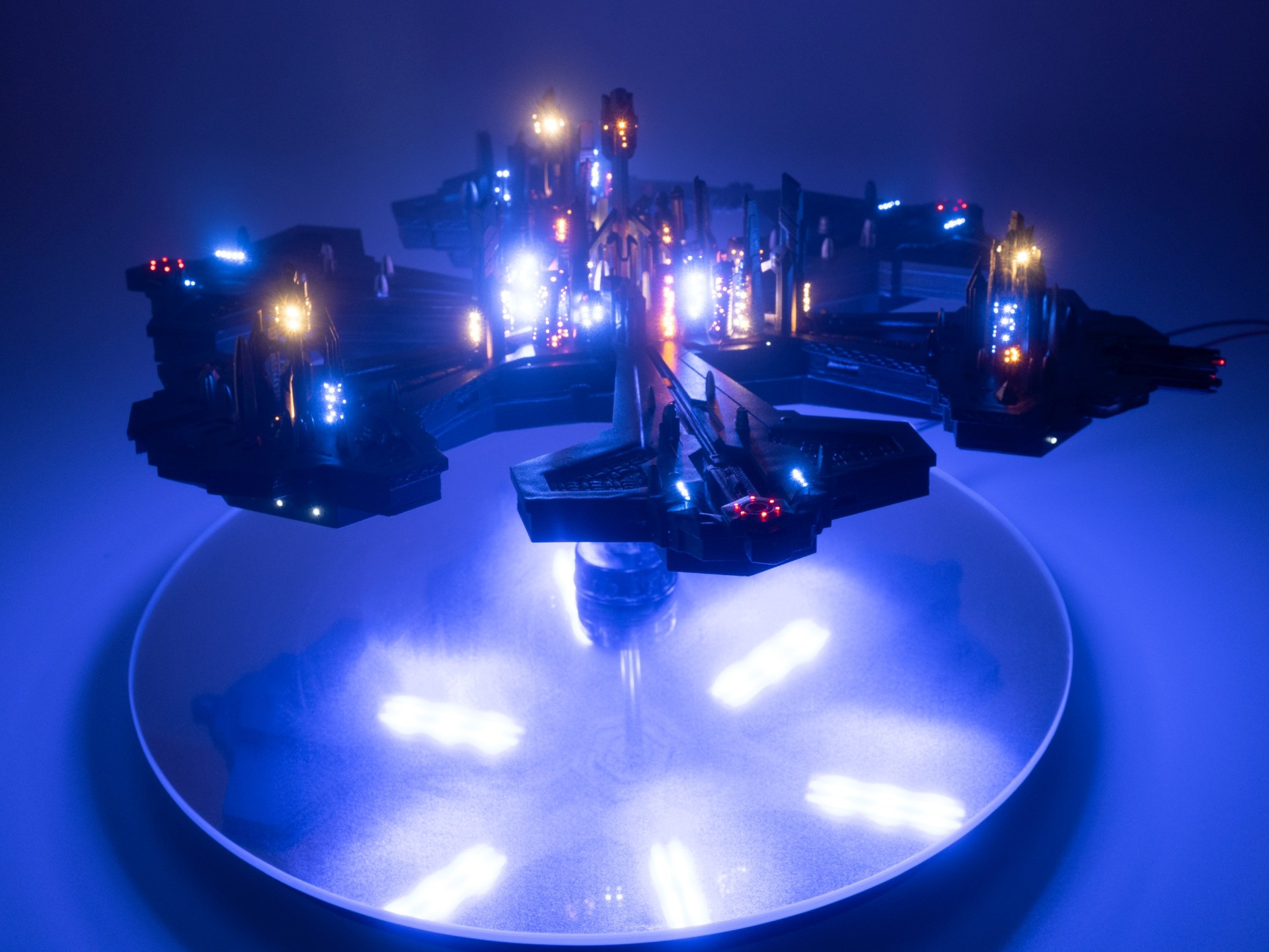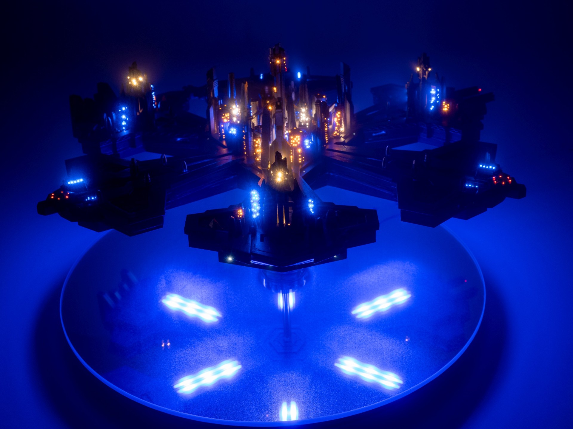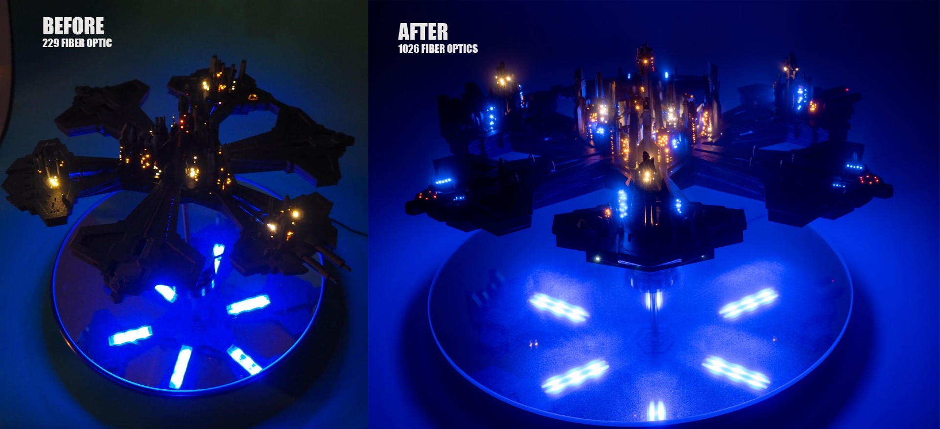 So far, I have built two Atlantis cities from this new KIT. You can see the result in the photos below, the construction took several months and in total more than 1000 optical fibers were used and 40 buildings including the towers were lit by using 69 LEDs.
