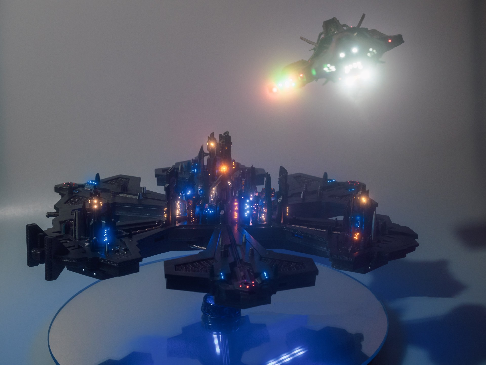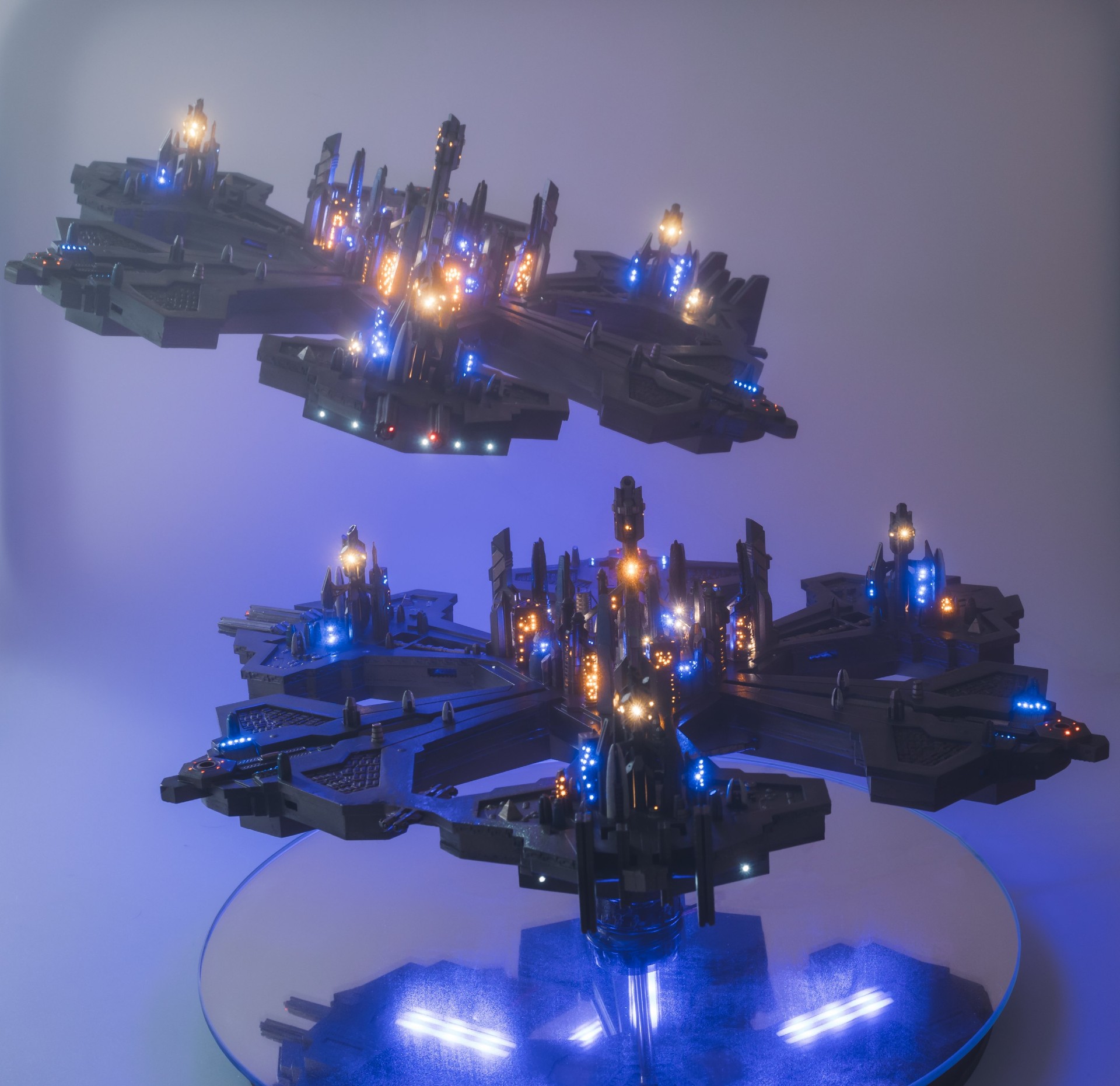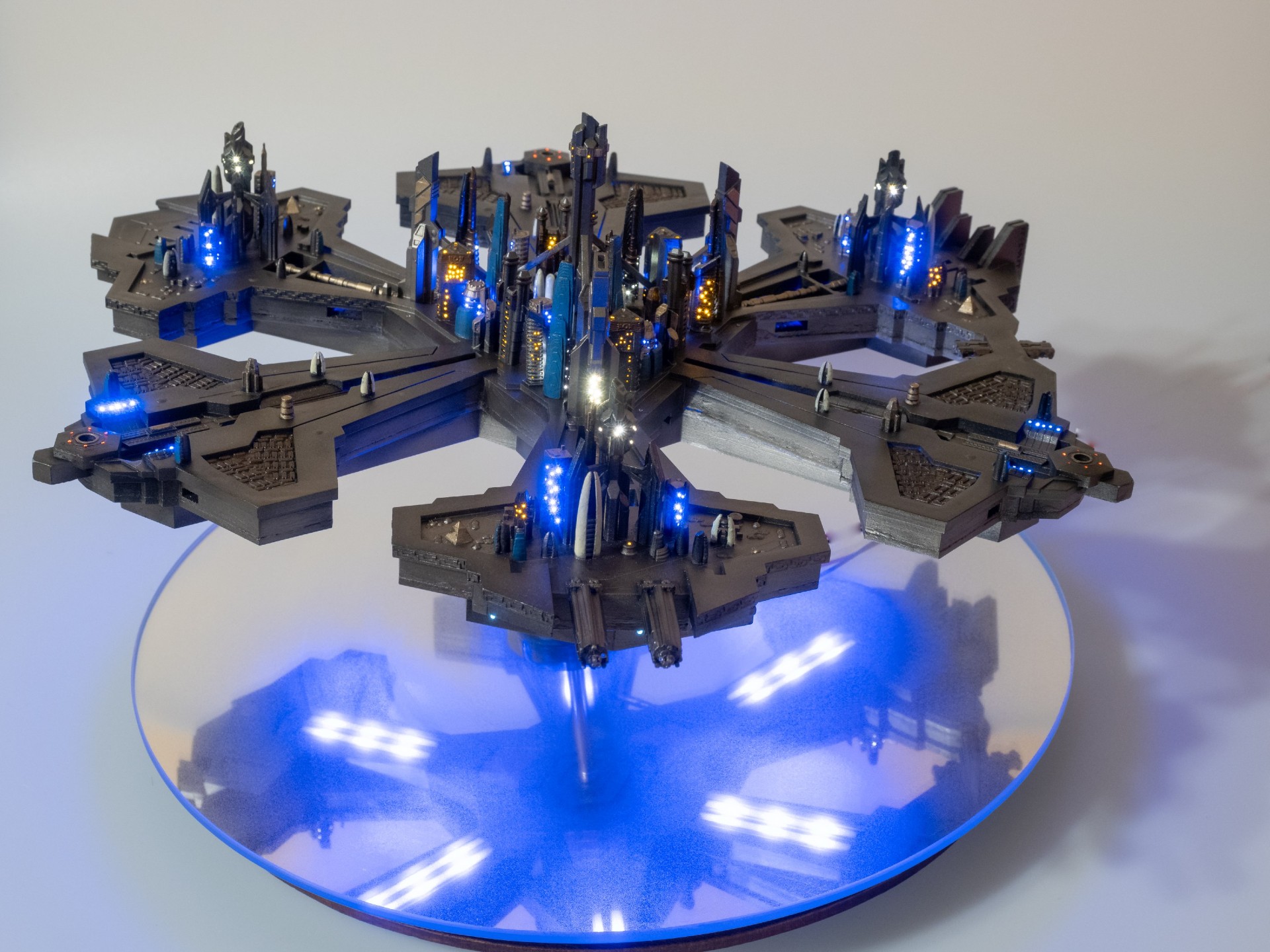 So far, I have built two Atlantis cities from this new KIT. You can see the result in the photos below, the construction took several months and in total more than 1000 optical fibers were used and 40 buildings including the towers were lit by using 69 LEDs.