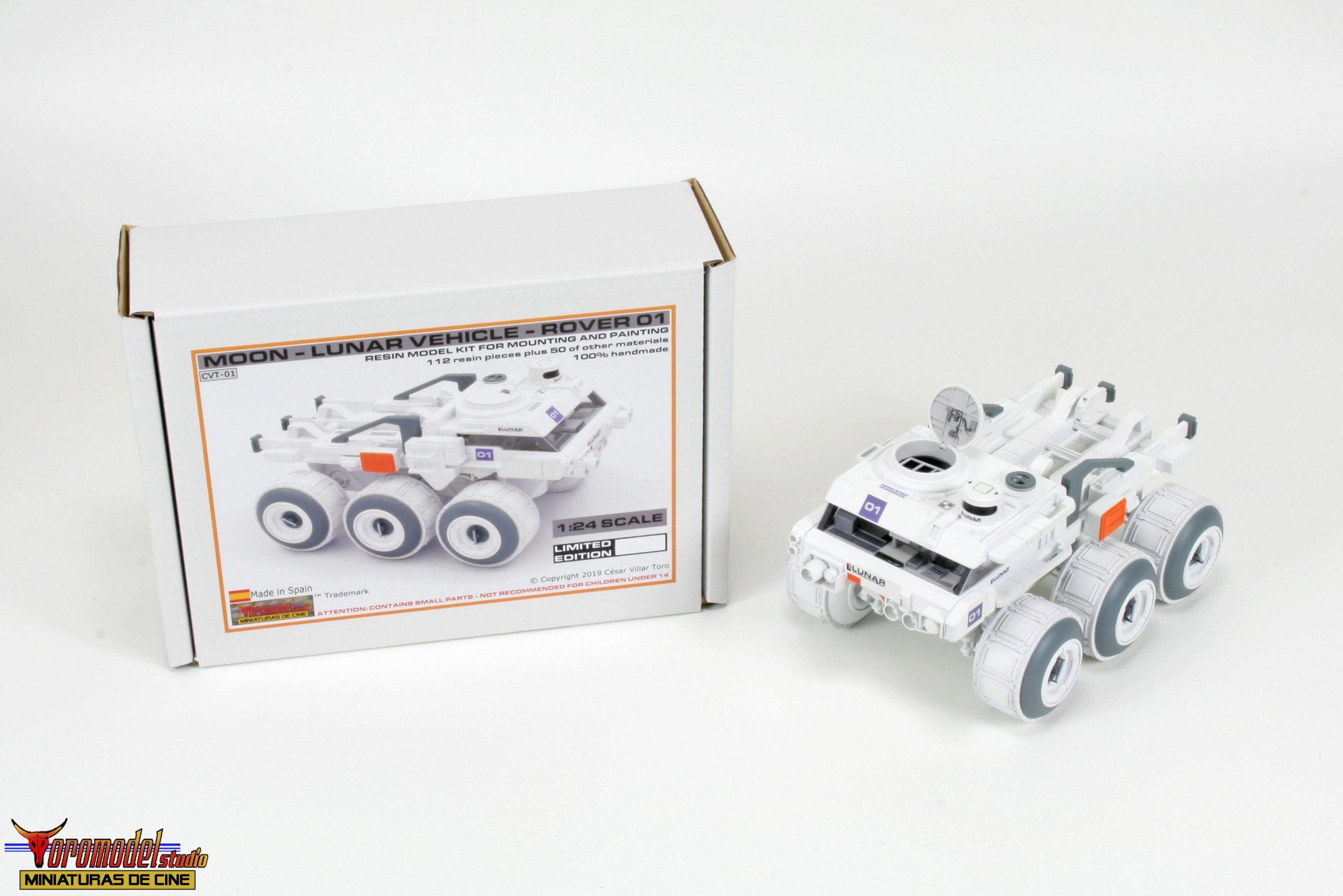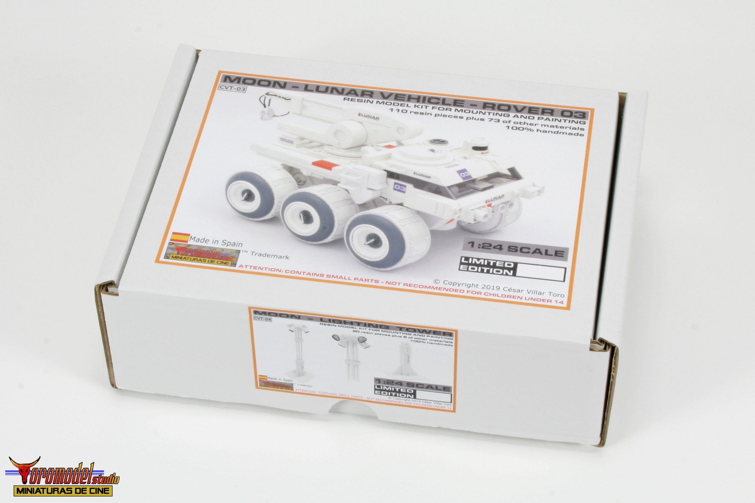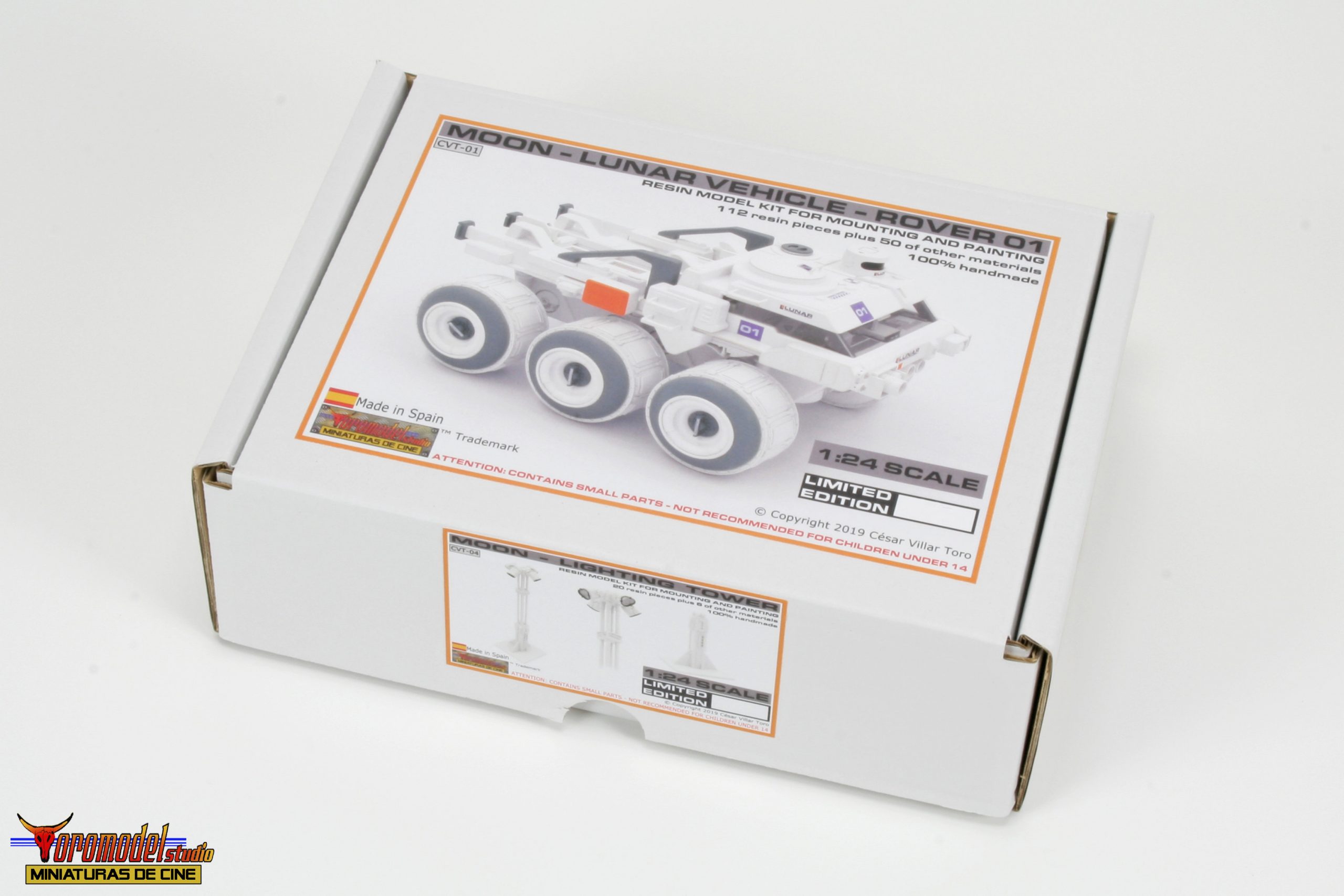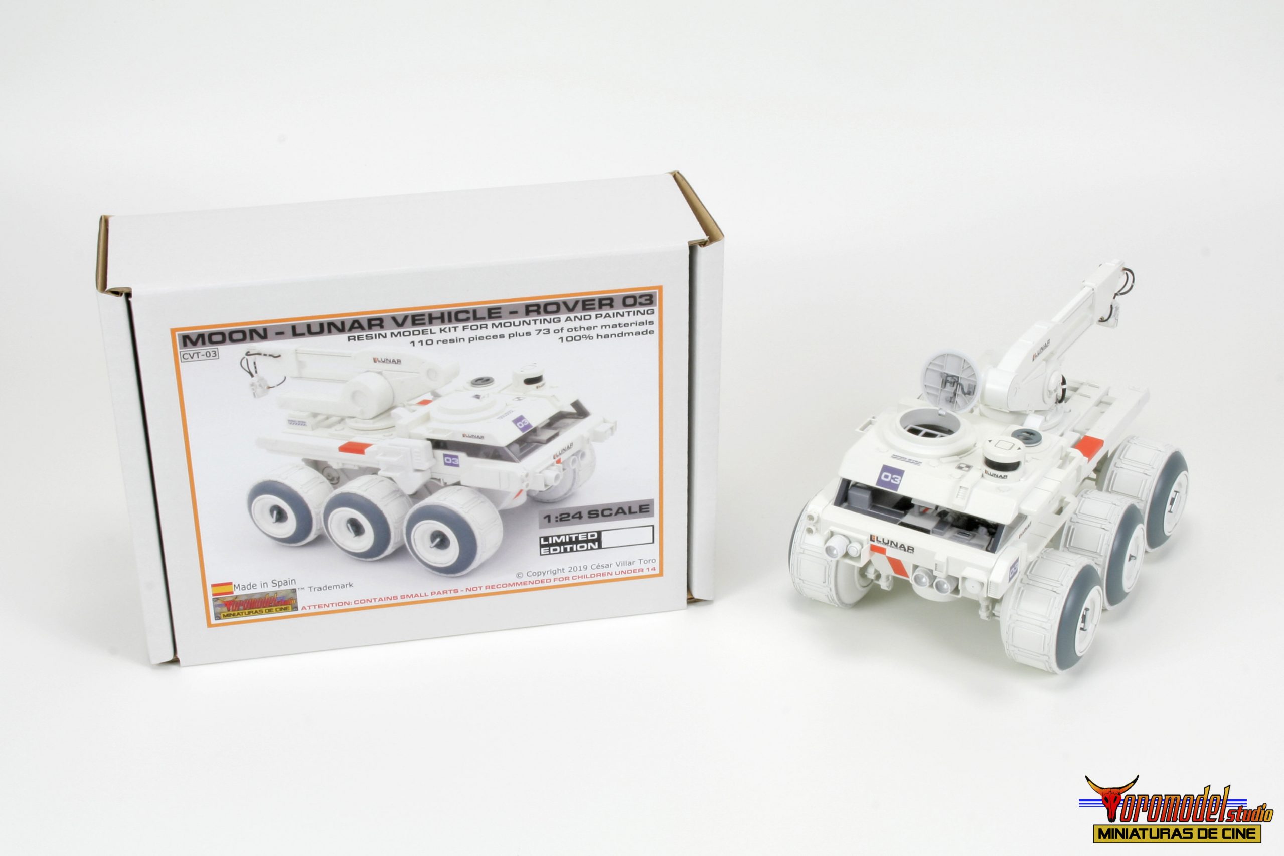 Kit Description: Coinciding with the tenth anniversary of the premiere of the acclaimed Duncan Jones MOON film and after almost 3 years of work, I present my first 100% handmade kit, a 1/24 scale replica of the lunar rover driven by the protagonist of the film Sam Bell (Sam Rockwell). What best tribute could be done to one of the best modern science fiction movies? The Rover from Lunar Industries Ltd. is available in all three versions that appear on the movie, plus a companion kit that replicates the Sarang lunar station’s exterior lighting towers. The models are an accurate and meticulous reproduction of the 1/12 scale miniatures that their magnificent team of artists built for the movie.