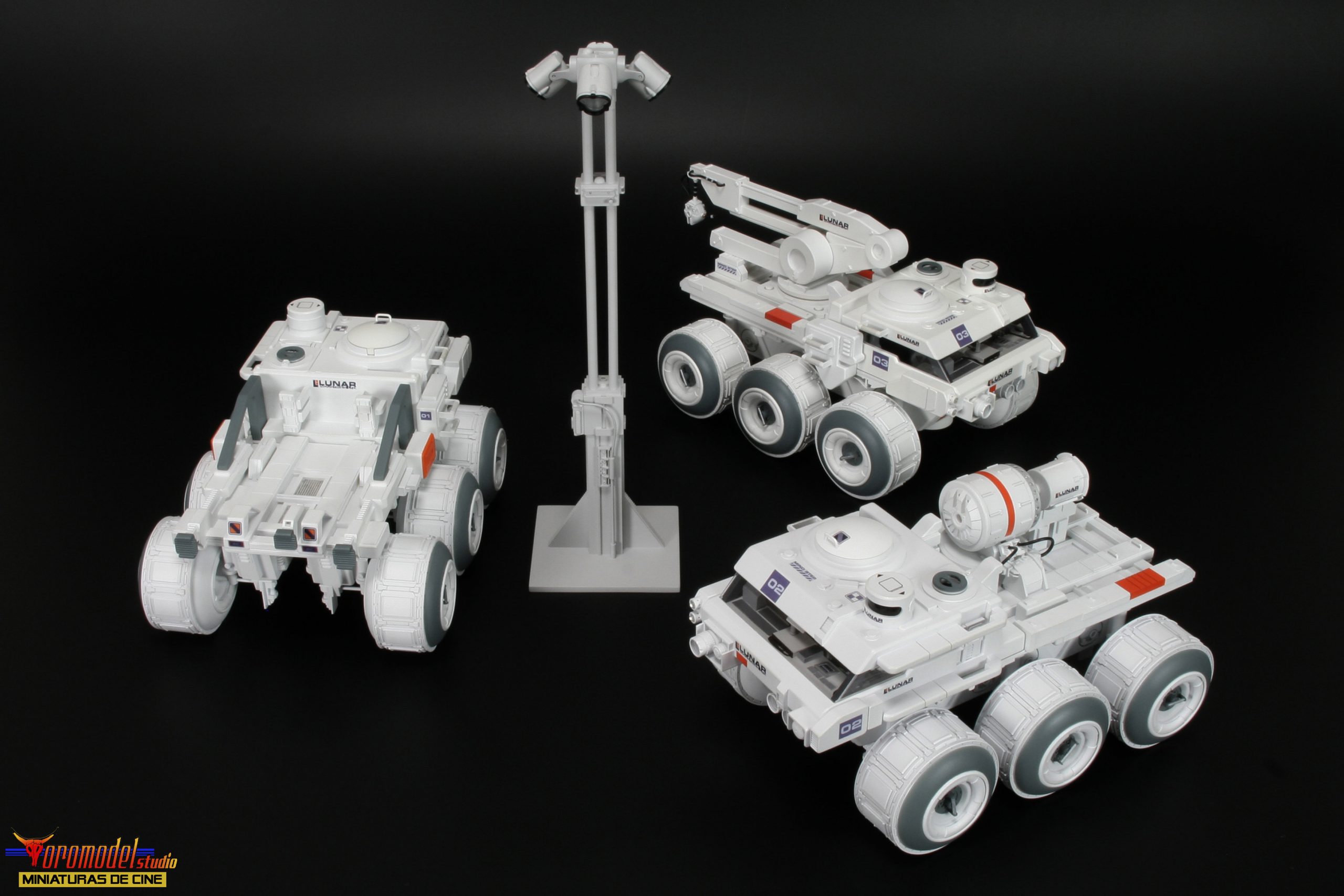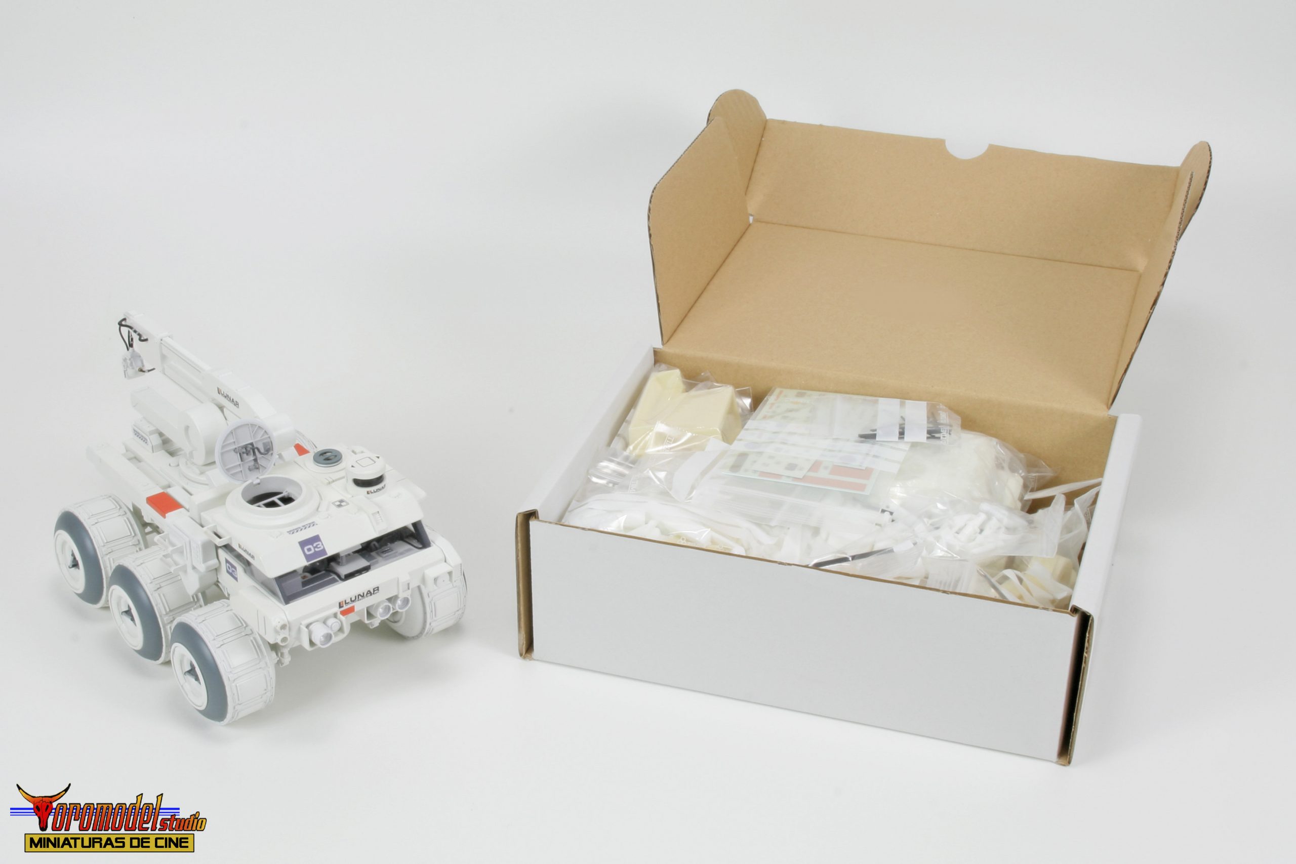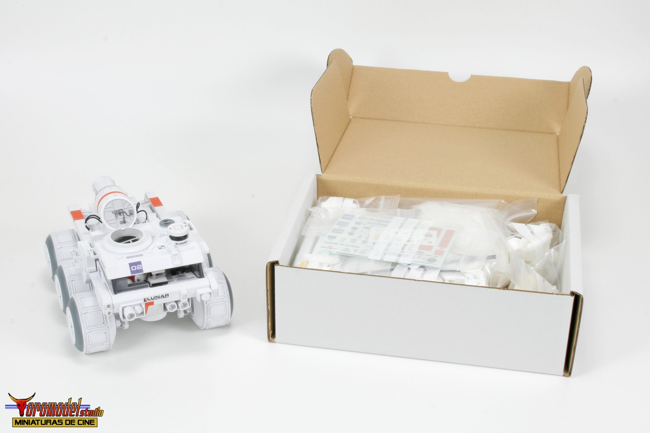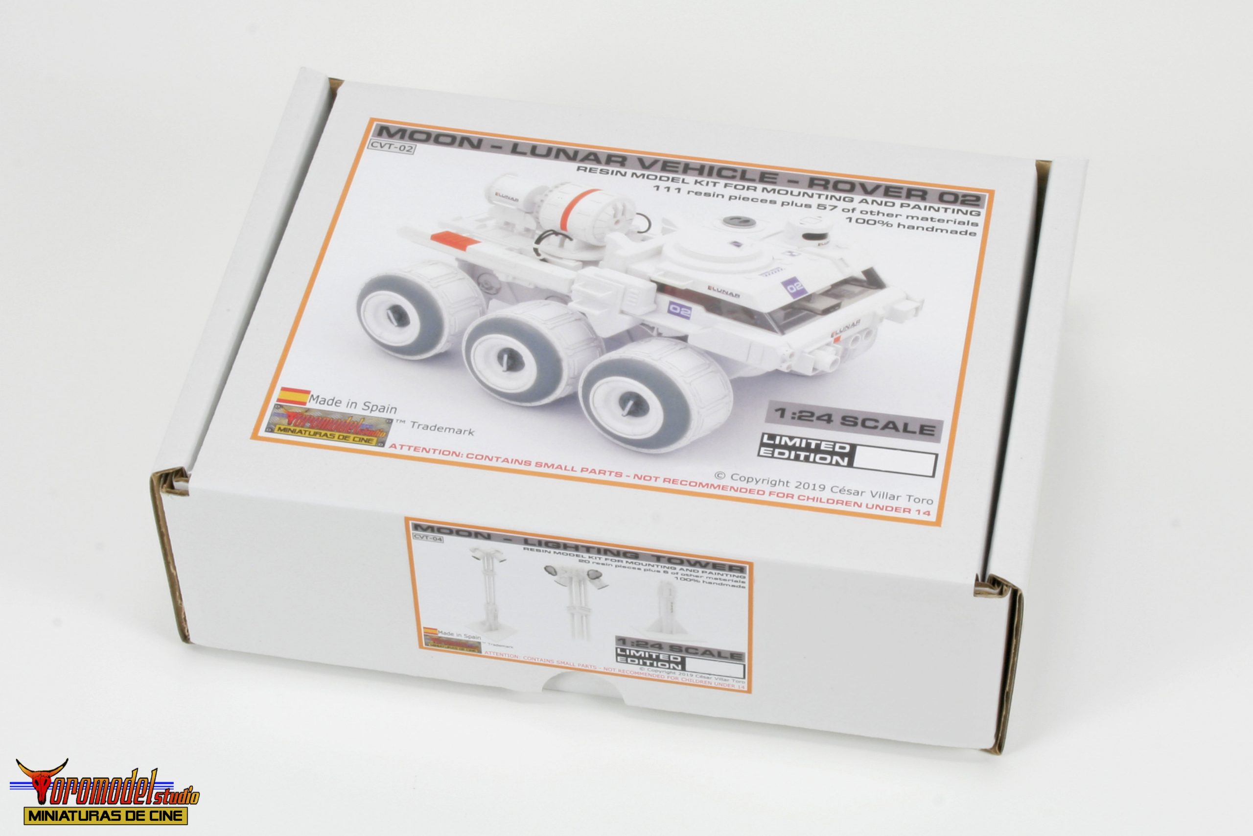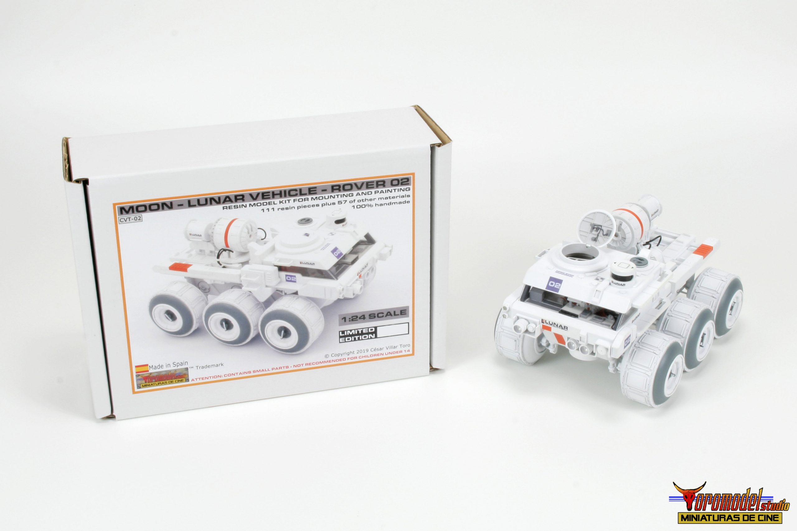 Kit Description: Coinciding with the tenth anniversary of the premiere of the acclaimed Duncan Jones MOON film and after almost 3 years of work, I present my first 100% handmade kit, a 1/24 scale replica of the lunar rover driven by the protagonist of the film Sam Bell (Sam Rockwell). What best tribute could be done to one of the best modern science fiction movies? The Rover from Lunar Industries Ltd. is available in all three versions that appear on the movie, plus a companion kit that replicates the Sarang lunar station’s exterior lighting towers. The models are an accurate and meticulous reproduction of the 1/12 scale miniatures that their magnificent team of artists built for the movie.