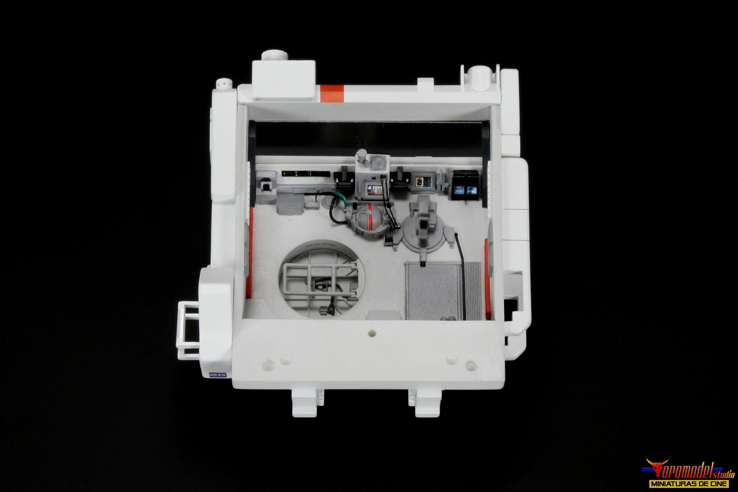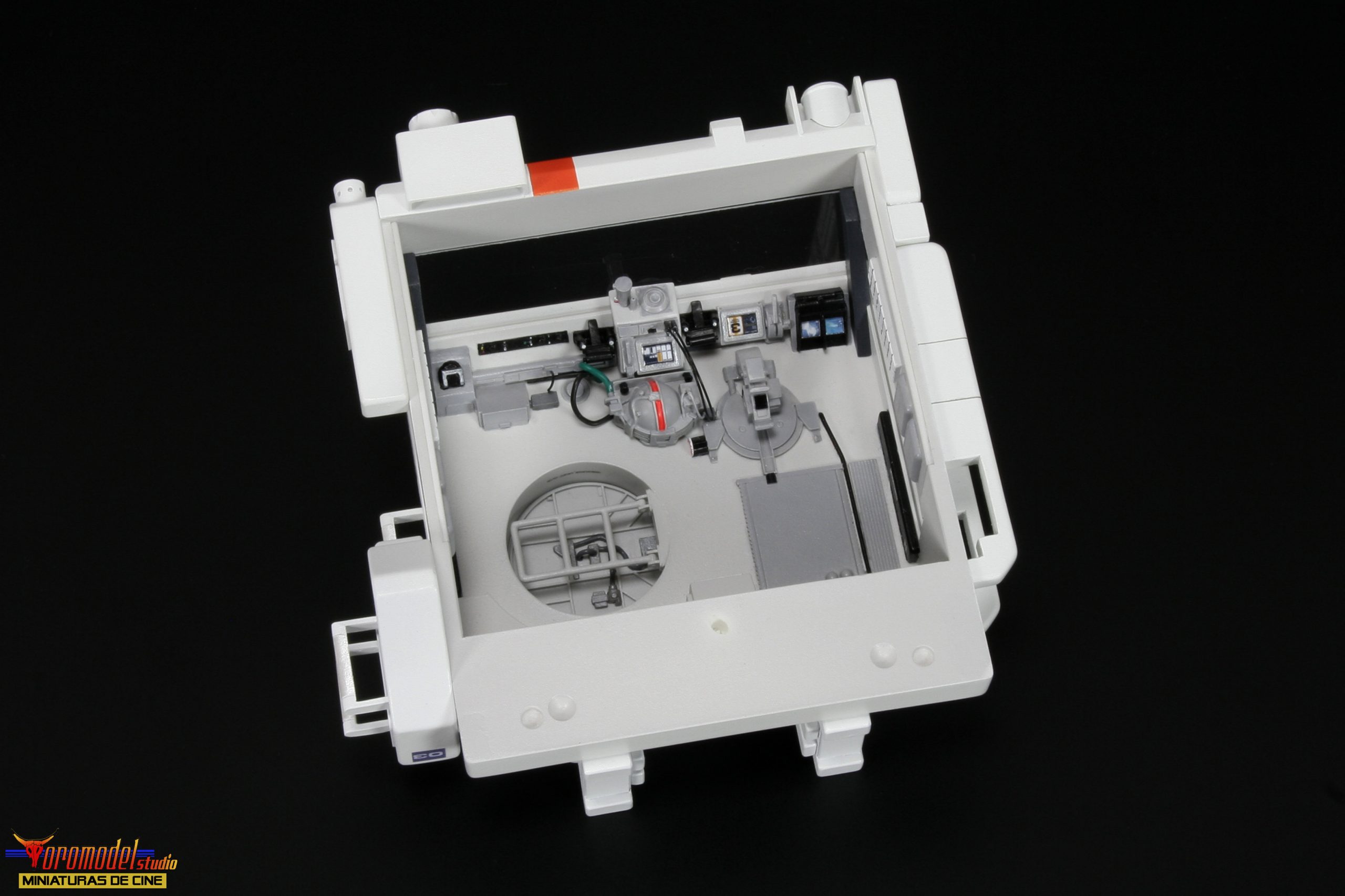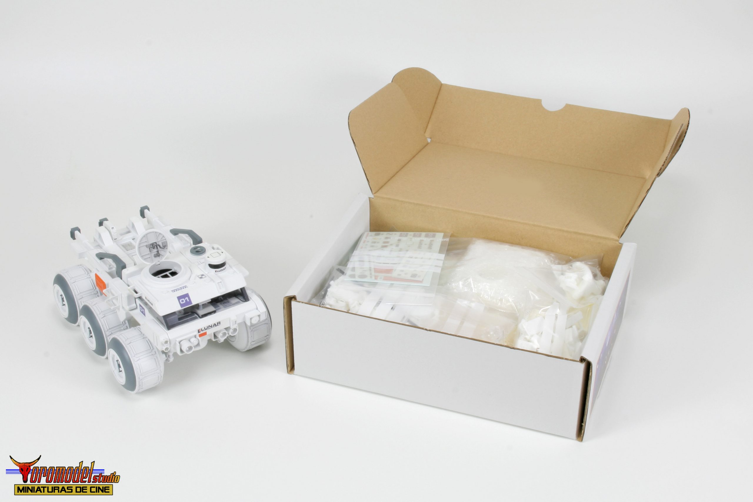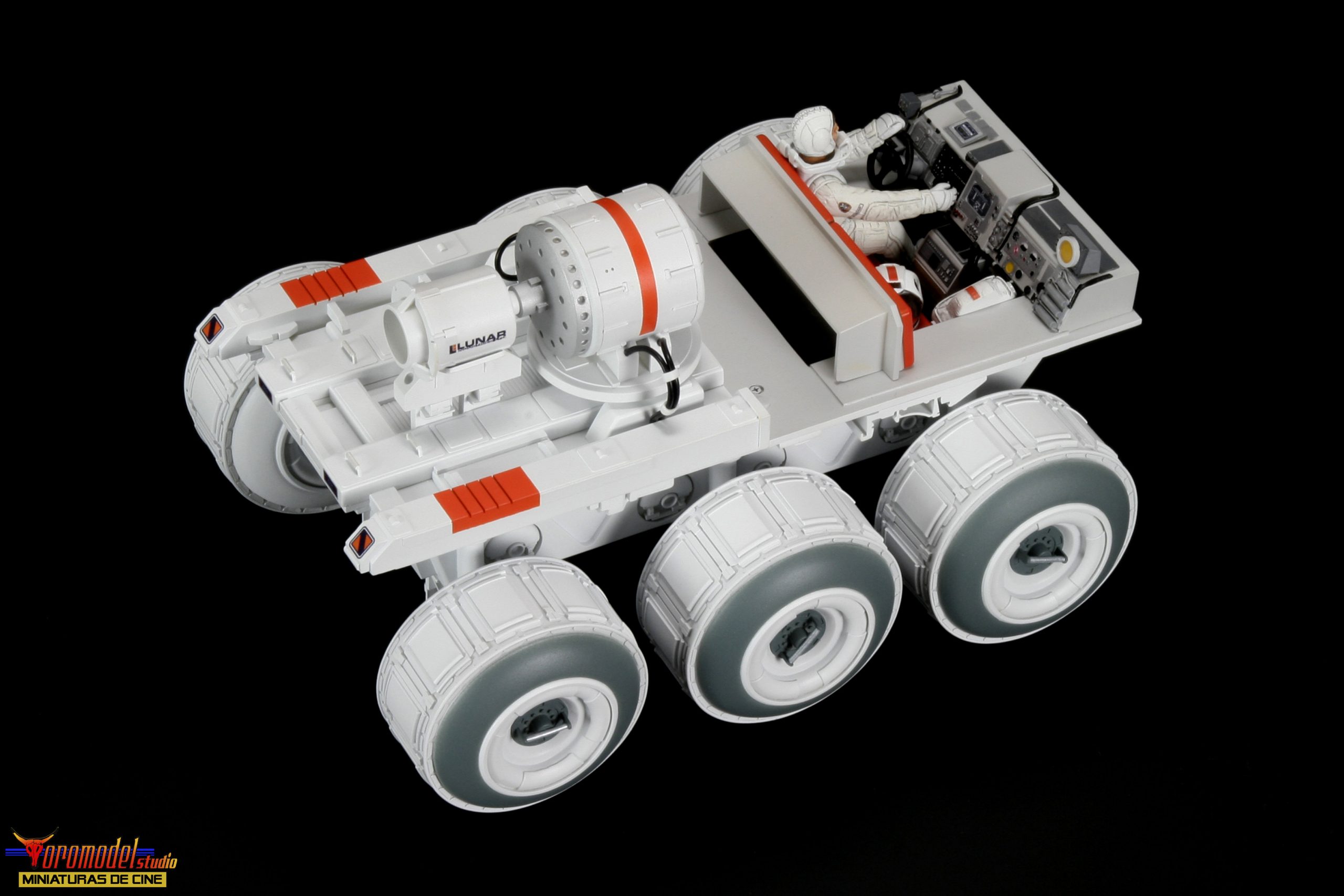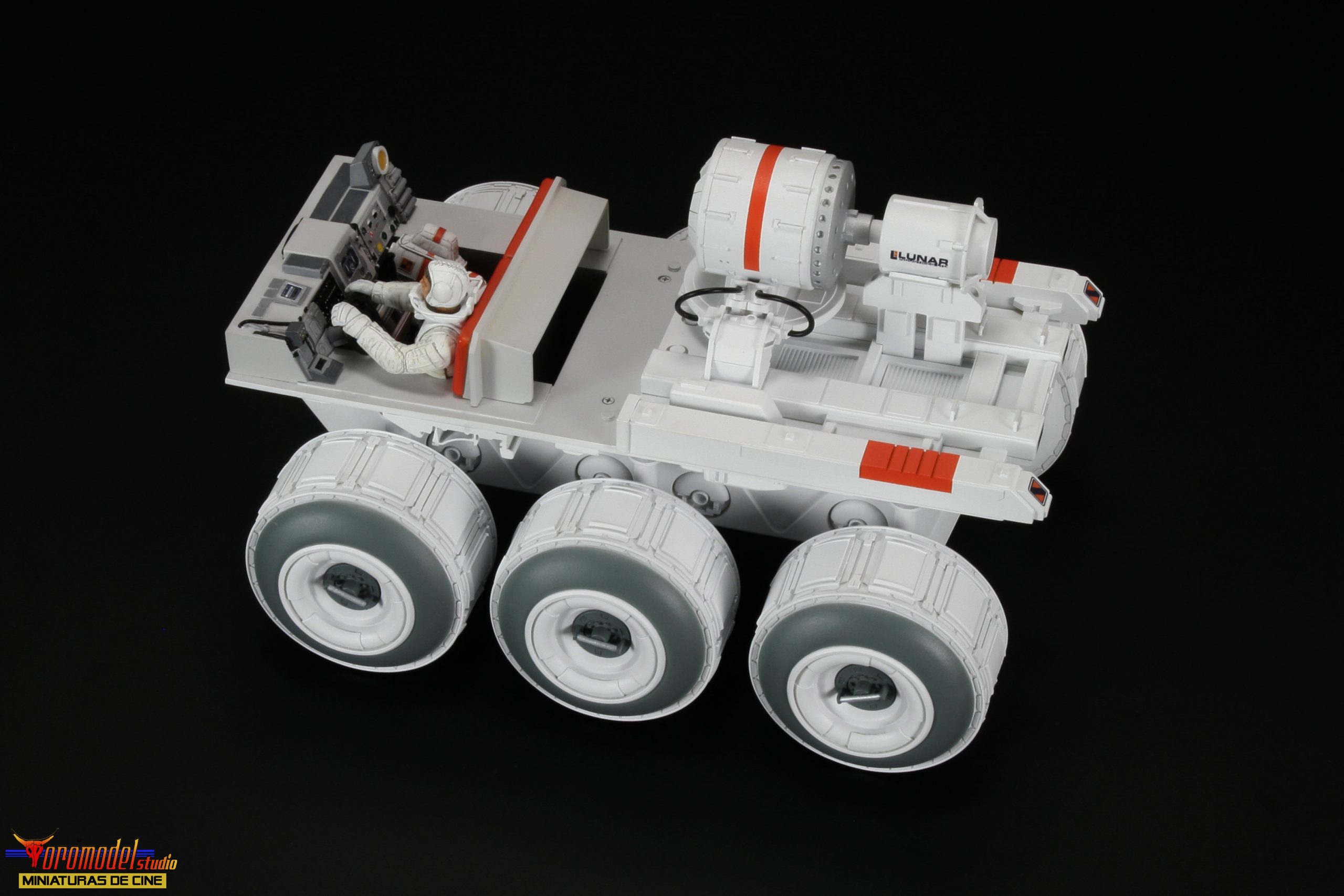 The Rover kit is made up of more than 100 pieces cast in premium quality White Smooth-On resin * except the wheels, which where made of resin from other brands, as well as extra pieces of different materials to complete the assembly. The cockpit is a thorough reproduction of the scenery used in the film, adapted to fit perfectly into the dimensions of the kit, and includes the figure of the main character with his complete equipment of astronaut. There is the option to request the instrument panel of the vehicle in clear resin for a small extra price, designed for those who want to install a lighting circuit (only one of the two pieces will be included).
