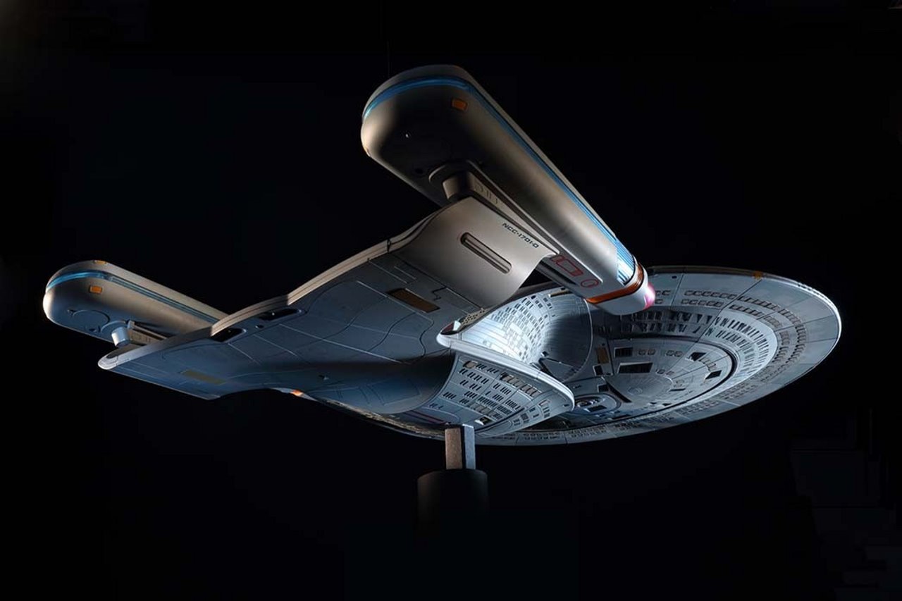 At over two feet long, the complete model is an exacting replica of the iconic starship from Star Trek: The Next Generation. The legendary Dan Curry, VFX producer on The Next Generation, as well as Deep Space Nine, Voyager, and Enterprise, says that this “beautiful model” was “such good quality that we could have used it for some of the shots we created for The Next Generation. Nowadays visual effects are mostly done with CG. This reminds me of the incredible models we used to work with for traditional effects, which were built by master craftsmen.”