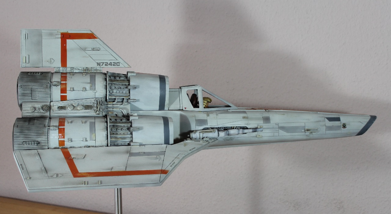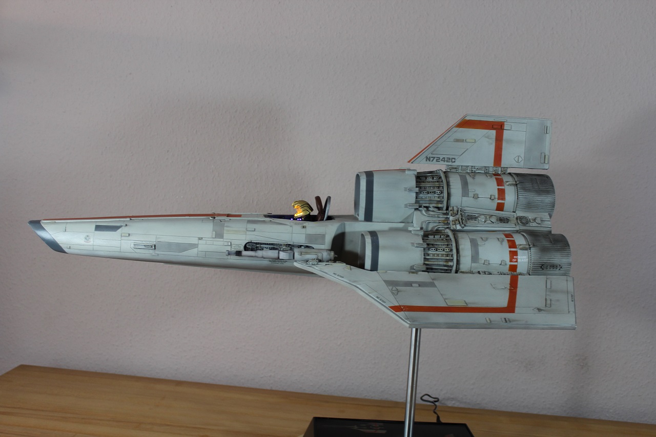 I have finished a client build and have some pics to show. This is the 31 inch Colonial Viper MKI from Battlestar Galactica (TOS), built from the 1/12 resin kit Mike Salzo created. I added a base, decals, lights and sound (remotely controlled) to the clients preference.