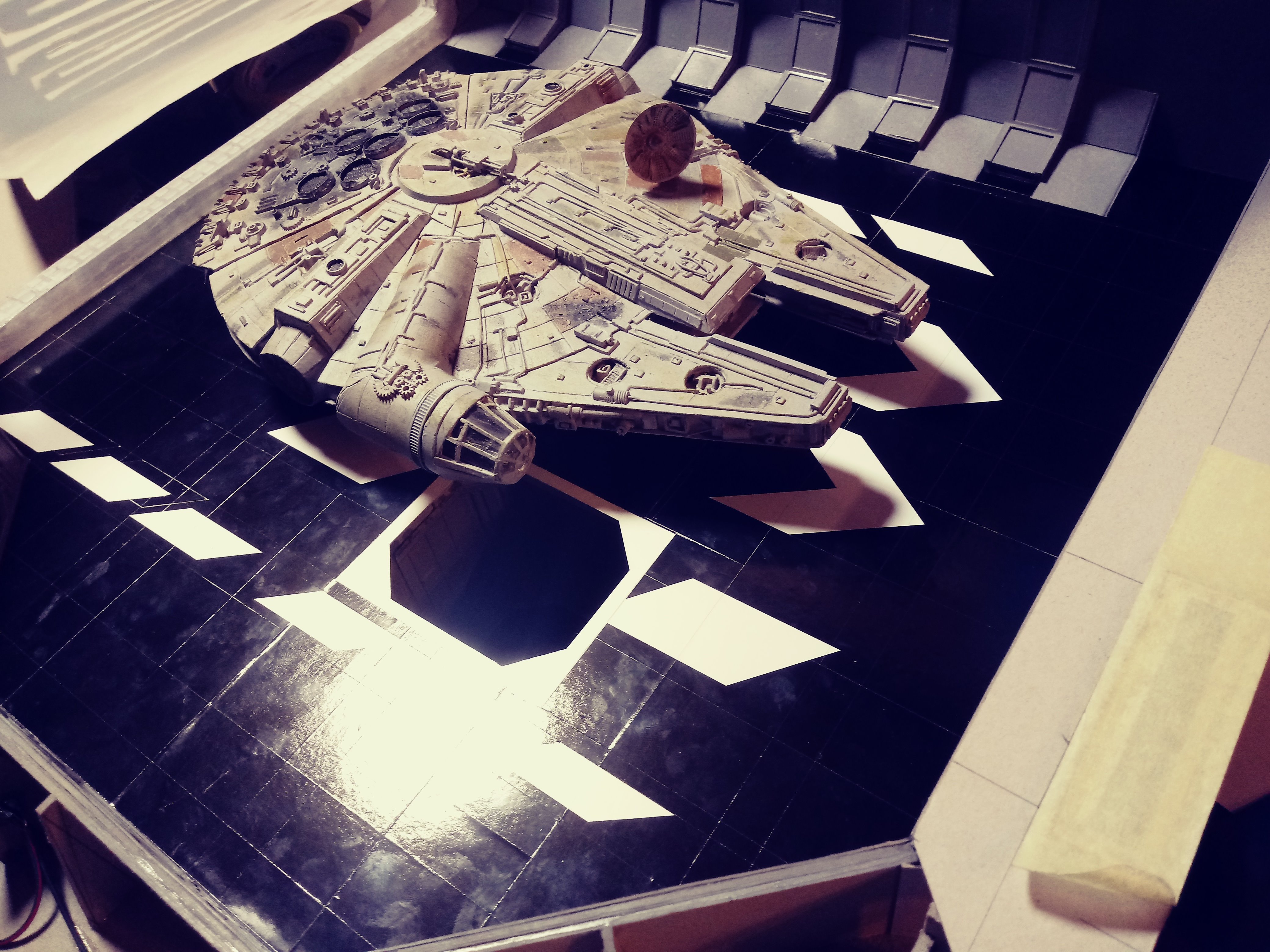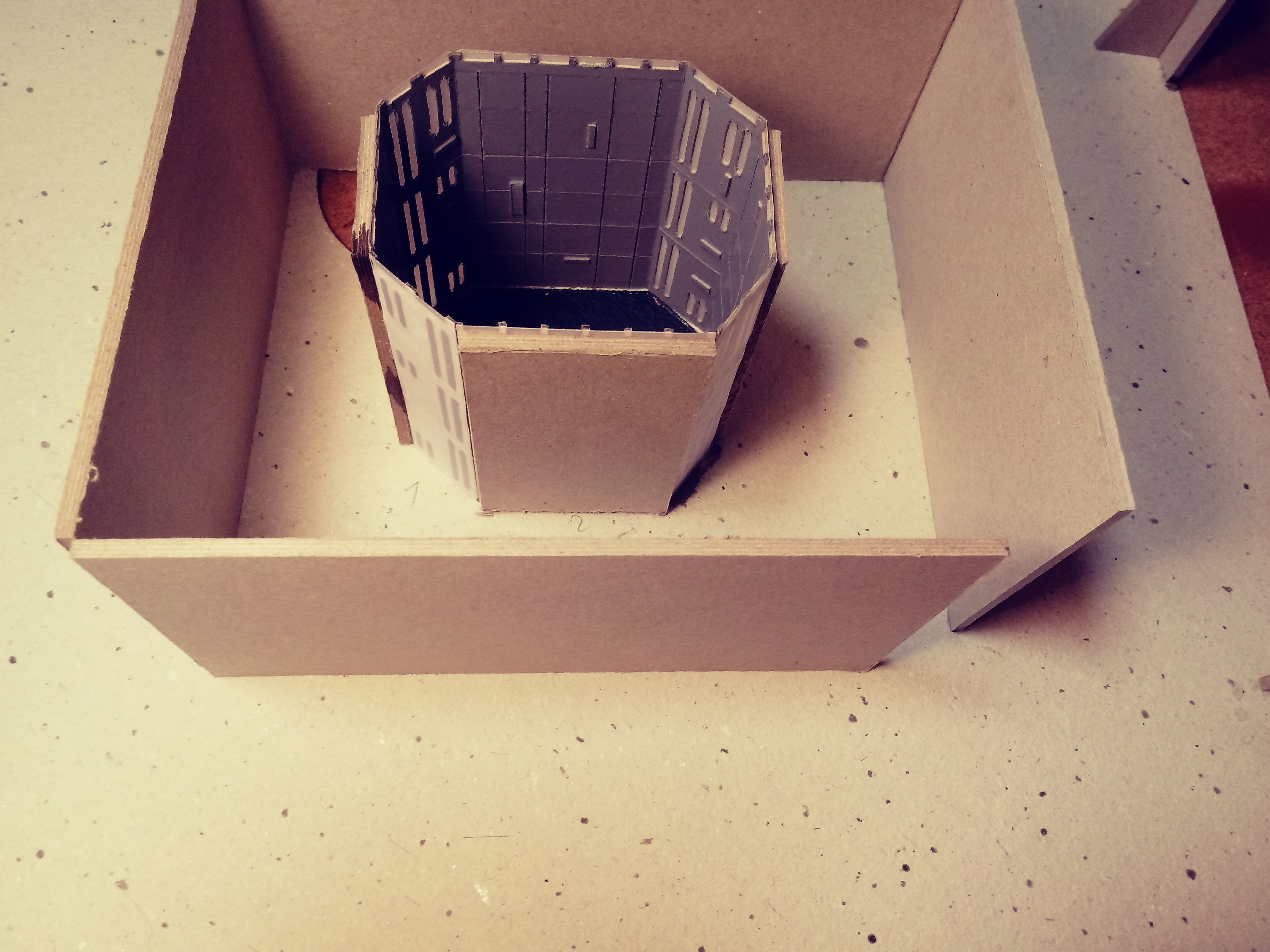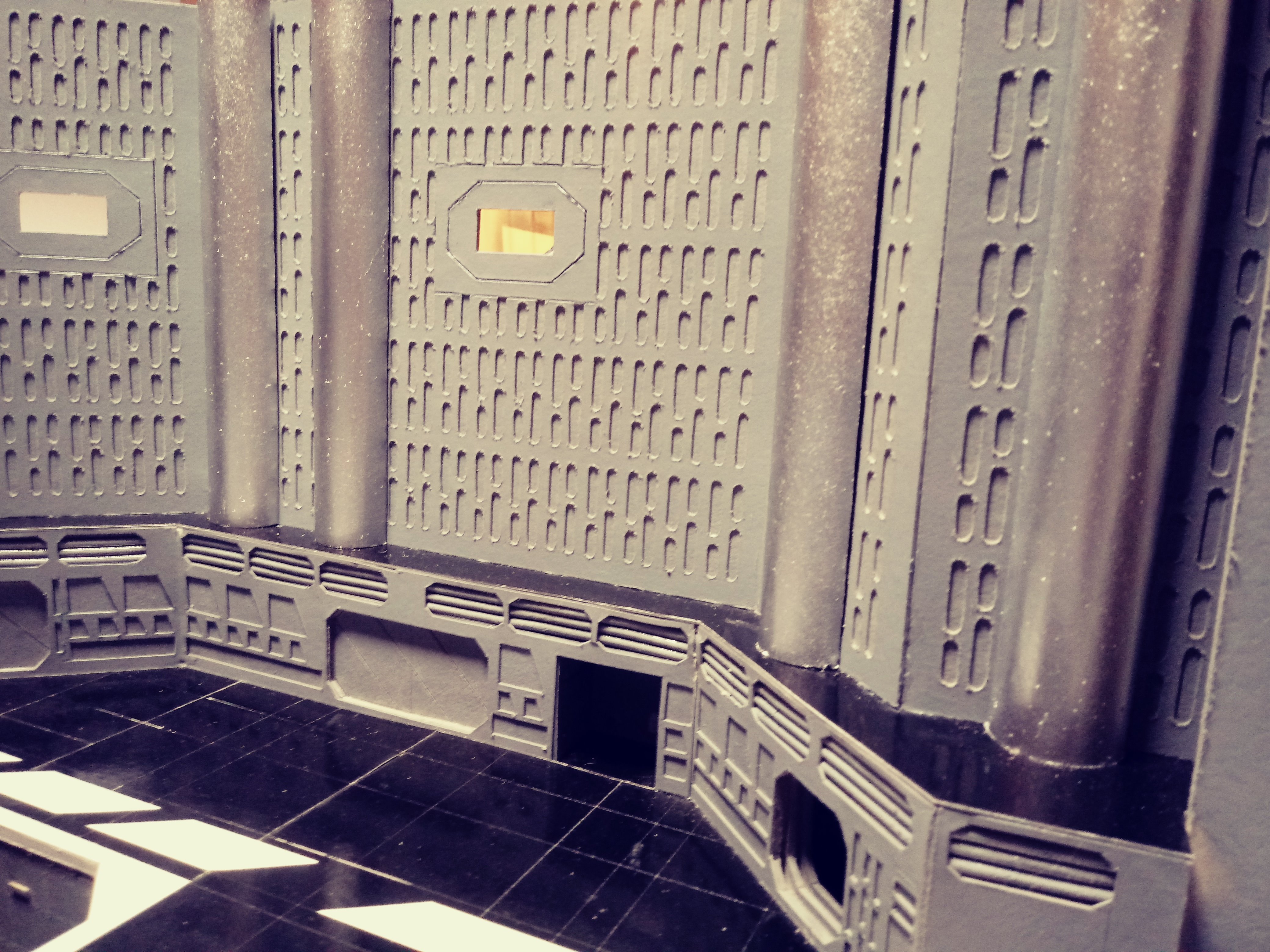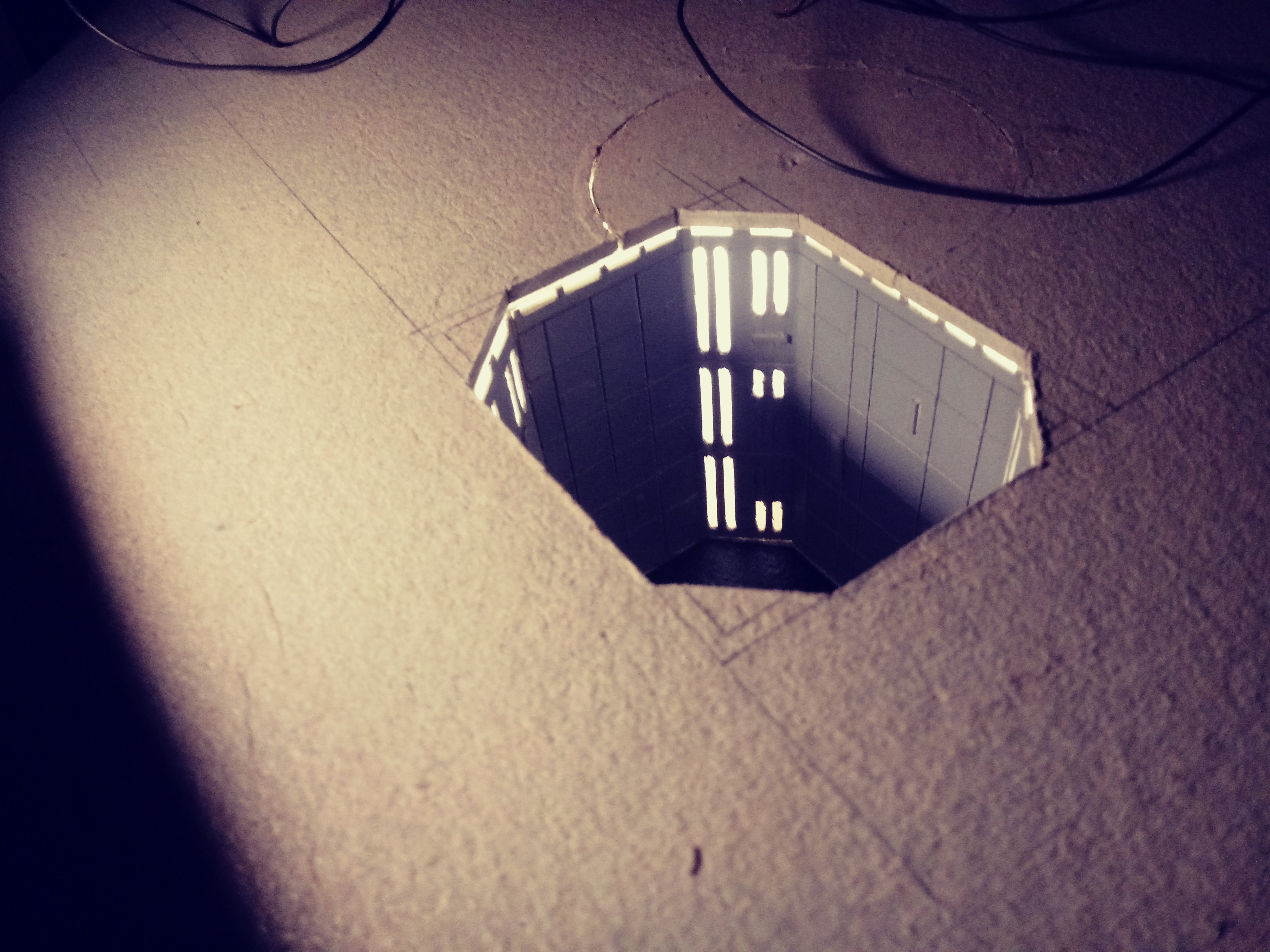 “I am a modeler from Poland. Here are pictures of the diorama I am still working on? It is a scratch build project made from cardboard of the Death Star from New Hope. External features will be equipped with Turbolaser Towers and other details. Scale is 1:100.”