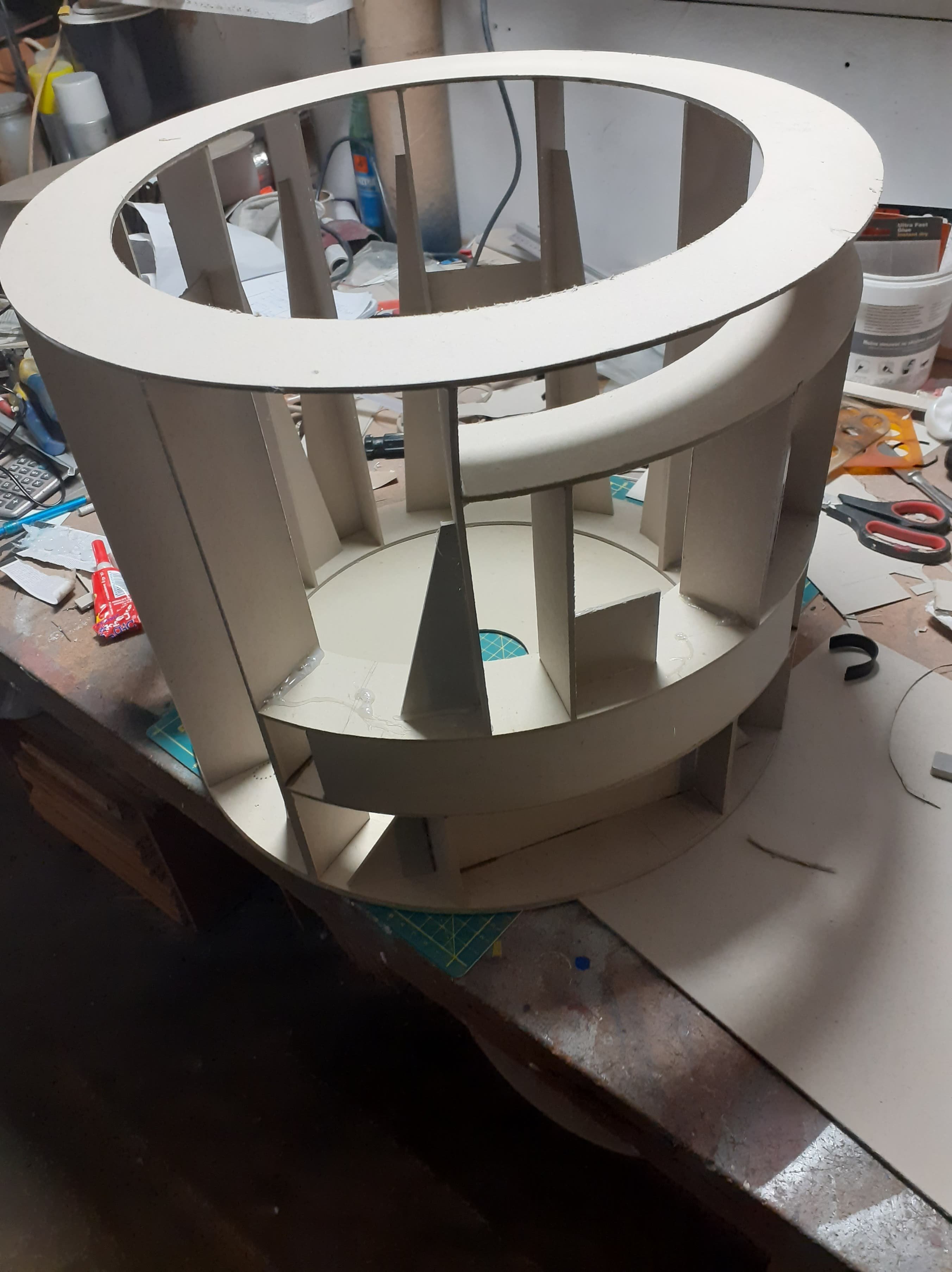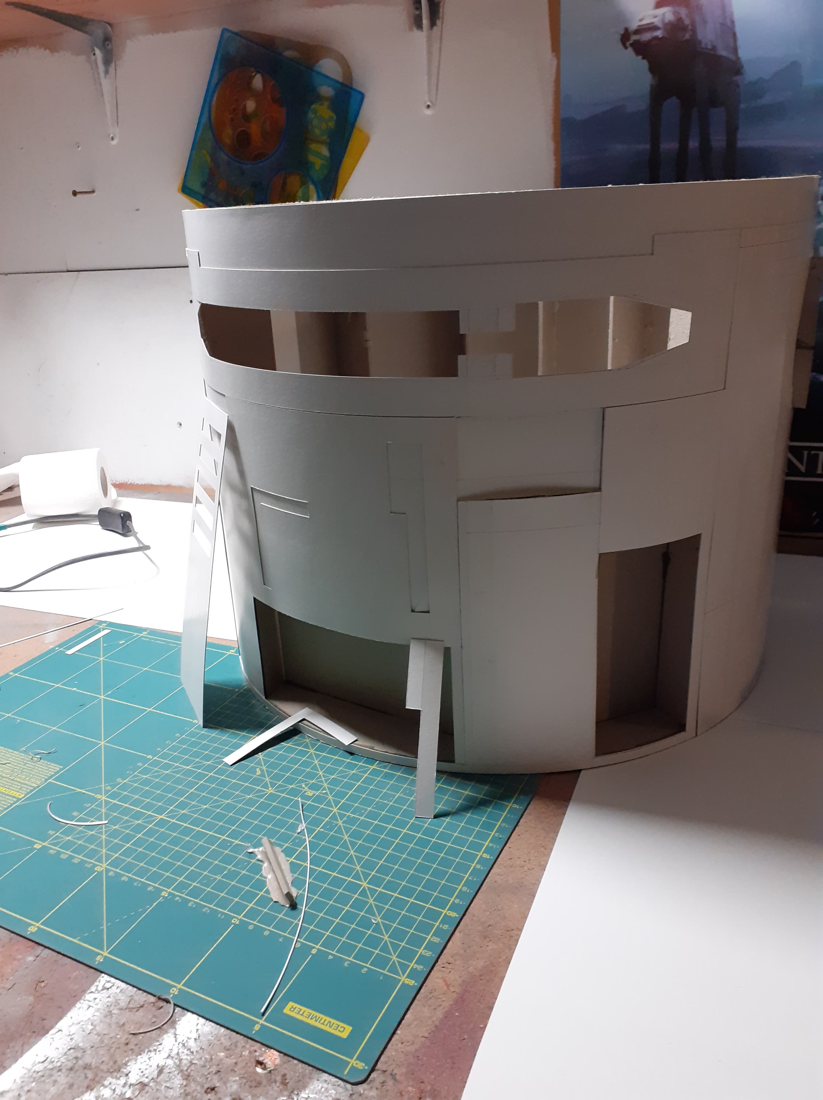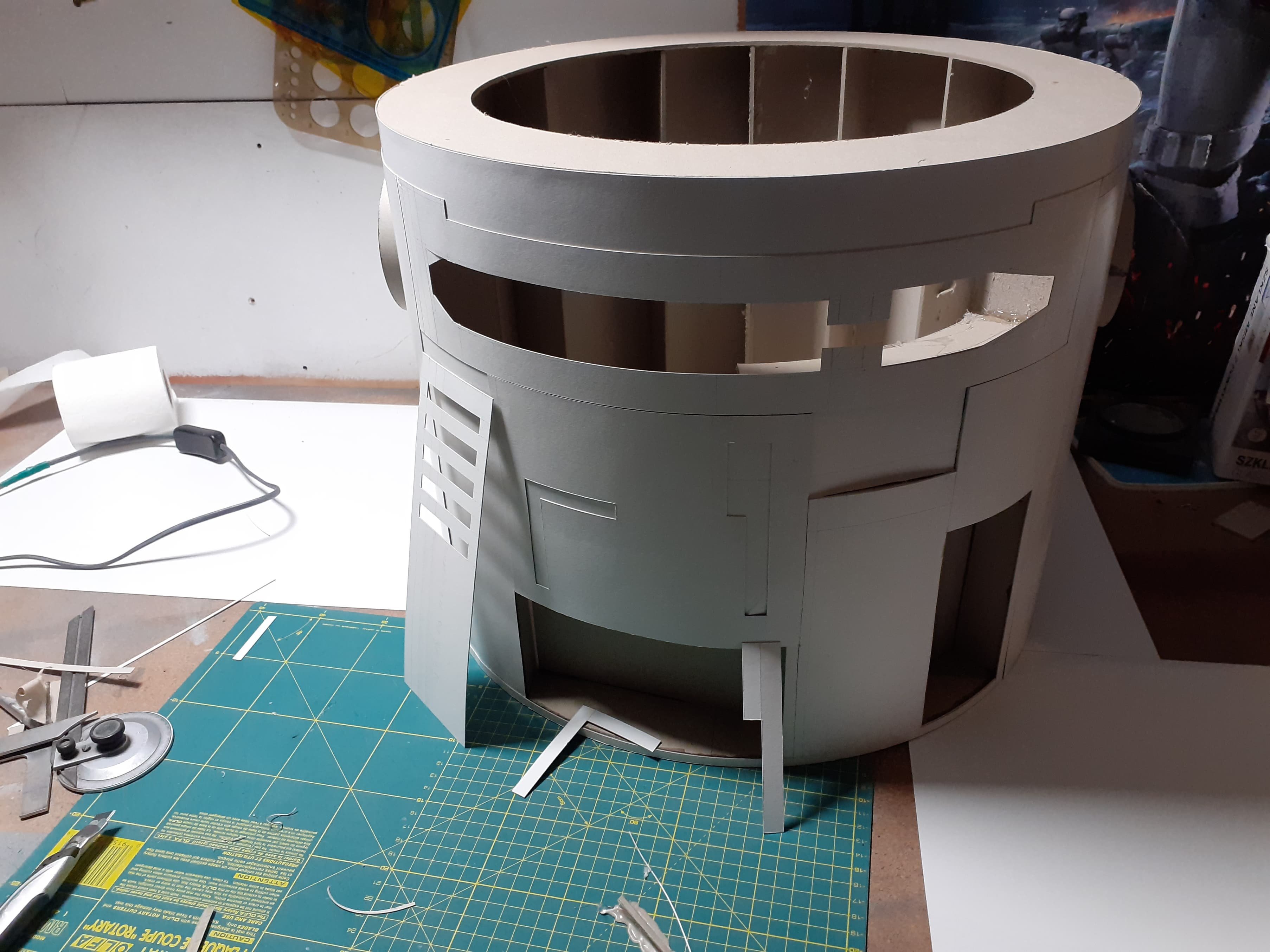Cześć wszystkim!! Wziąłem na warsztat nowy projekt. Zacząłem budowę Choppera. Droid Droida z serialu Rebelianci. Obecnie zakończyłem na szkielecie korpusu oraz położeniu powłok zewnętrznych. Póki co stan surowy bez dodanych szczegółów.