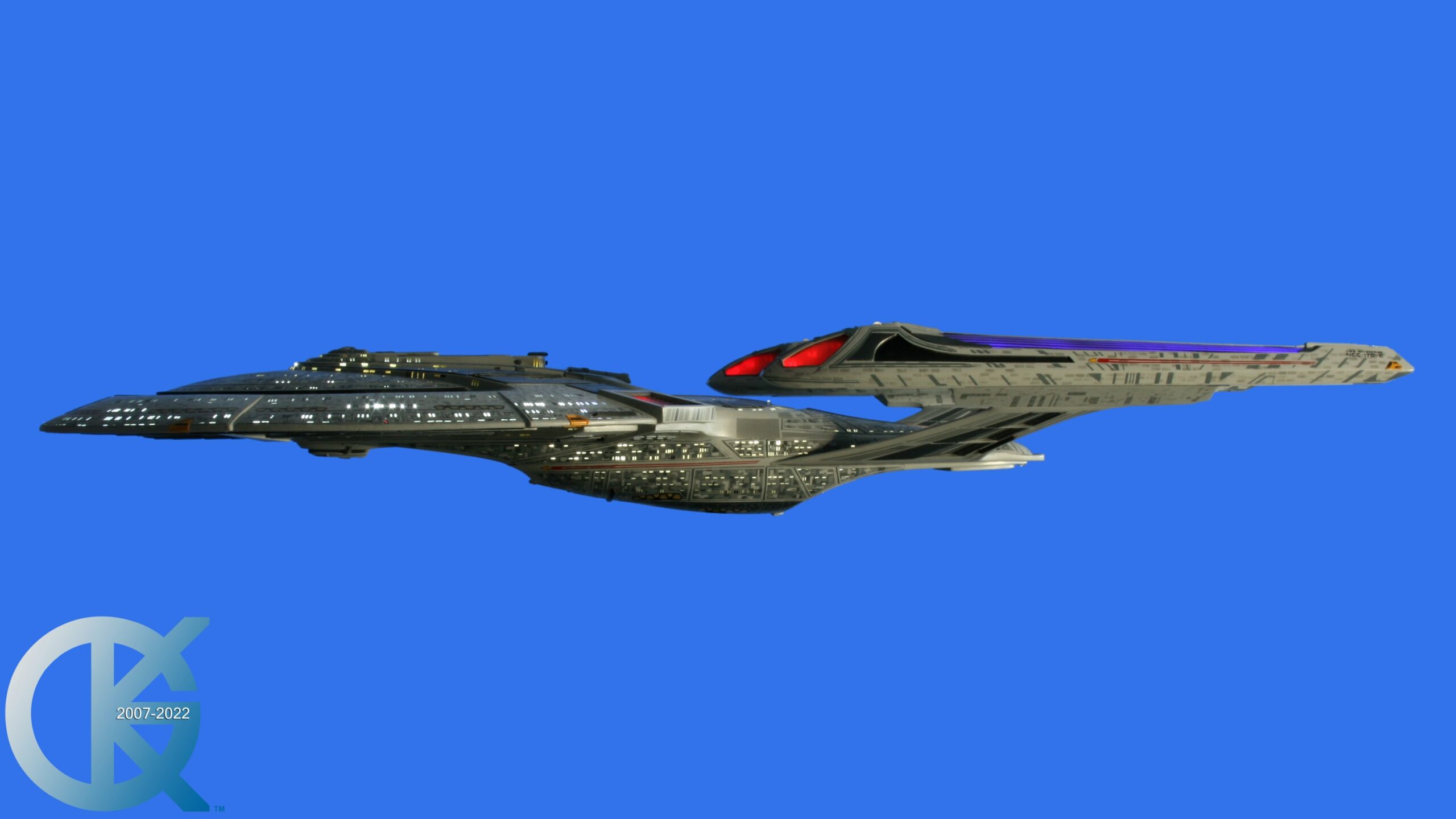 As the story goes: The first Kuhn Global build, using Cast #001 (which I refer to as “Incarnation #001), was first painted in 2007 to replicate the USS Enterprise we viewed in Star Trek: Nemesis. Sadly, while on display, the secondary hull buckled, causing the model to fall forward, thus damaging the model significantly. Aside from a mounting point having originally been glued into it’s hull, we discovered that there was no armature built into the model for strength and stability. As with all Starships named Enterprise, the Enterprise 1701-E is extremely front heavy being that it’s saucer section makes up most of the design. Of course in space this would not be an issue, but since this is a model here on Earth,.. with gravity, it makes every difference…lol. Moving on, with the model significantly damaged, in 2012 artist Marc Elkins took on the commission to fix this fantastic piece, taking it apart, and placing an armature inside of it. After doing so, he re-painted all of the damaged areas and presented it to me. It was beautiful, and that representation can only be seen in one of the videos I made of one of my visits to see Marc years ago. Unfortunately this model representation was never photographed in front of the Blue Screen. It is what I call “Incarnation #002”. Shortly after receiving the fixed model from Marc, the Port side Bussard Collector on the Nacelle stopped working, with the lighting effects no longer lighting. Something had obviously become disconnected, or shorted out. Instead of having Mark take the model apart again, I asked Marc to instead place a battle damaged paint job on it, then making it a replica miniature of the 1701-E from Star Trek: Insurrection. The battle damaged Insurrection 1701-E is what I refer to as “Incarnation #003”. The model was then sold on May 6, 2013 to my friend and collector Albert Siow, who promptly commissioned artist Dan Grumeretz to re-build it entirely.