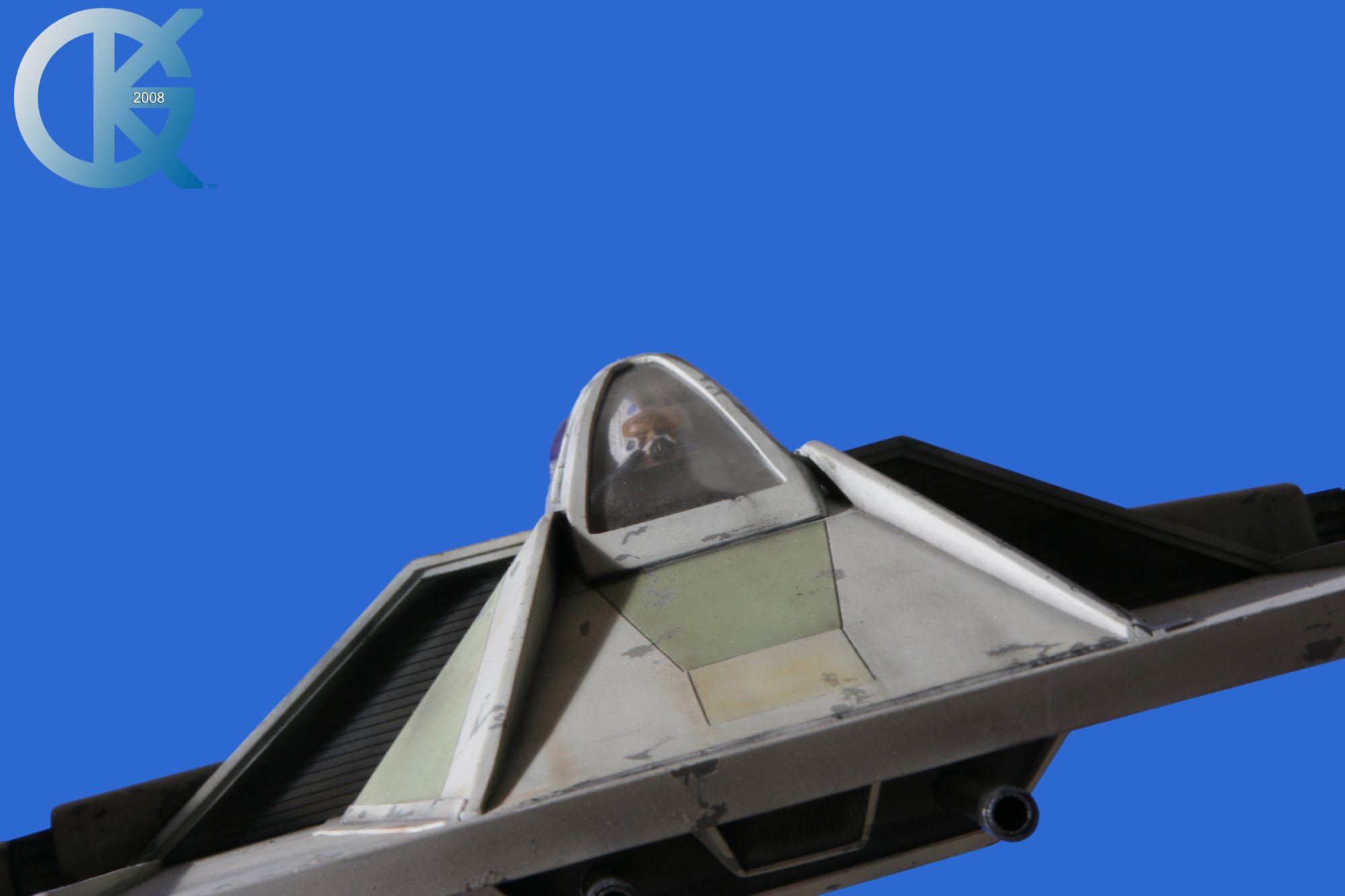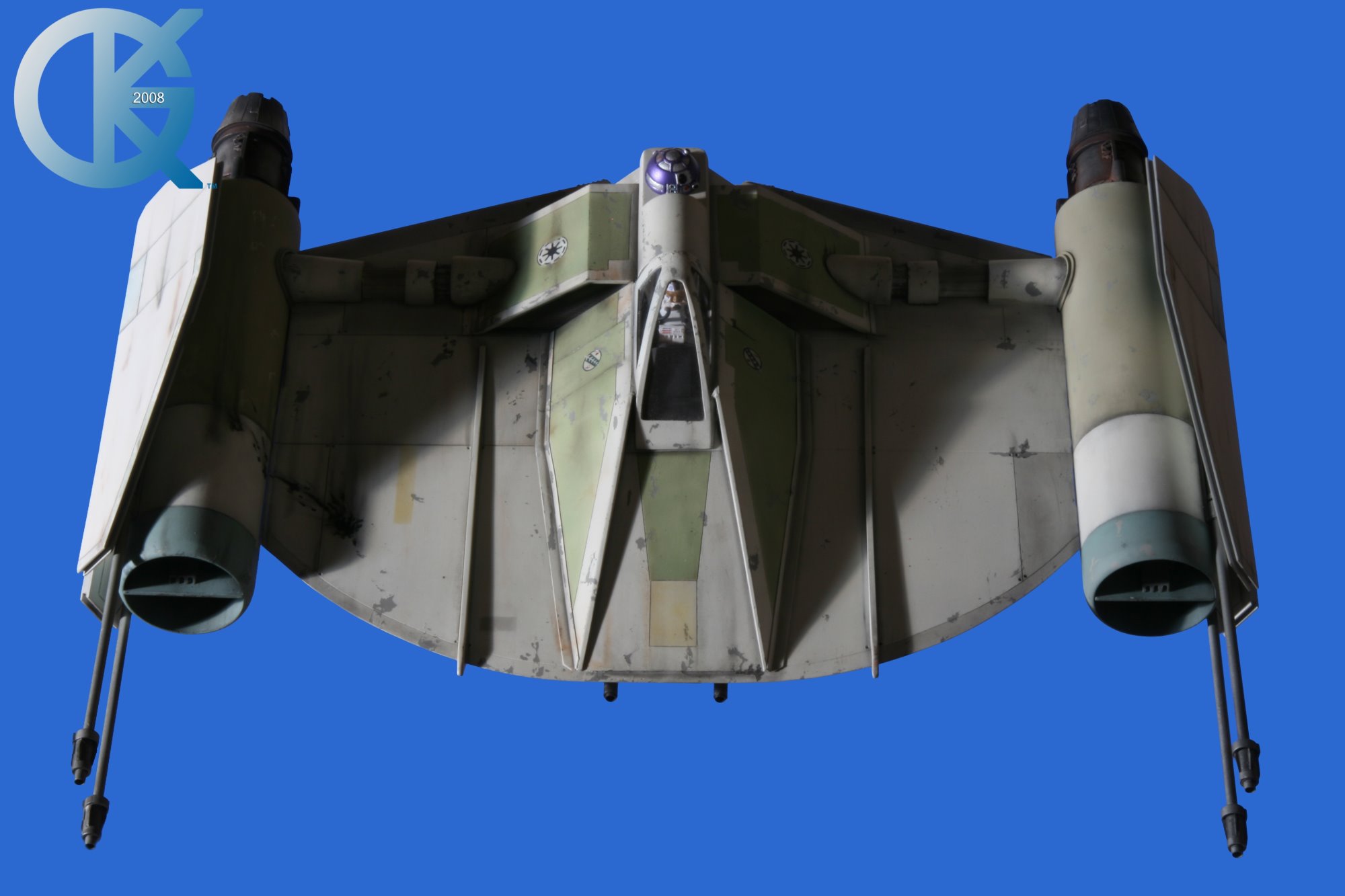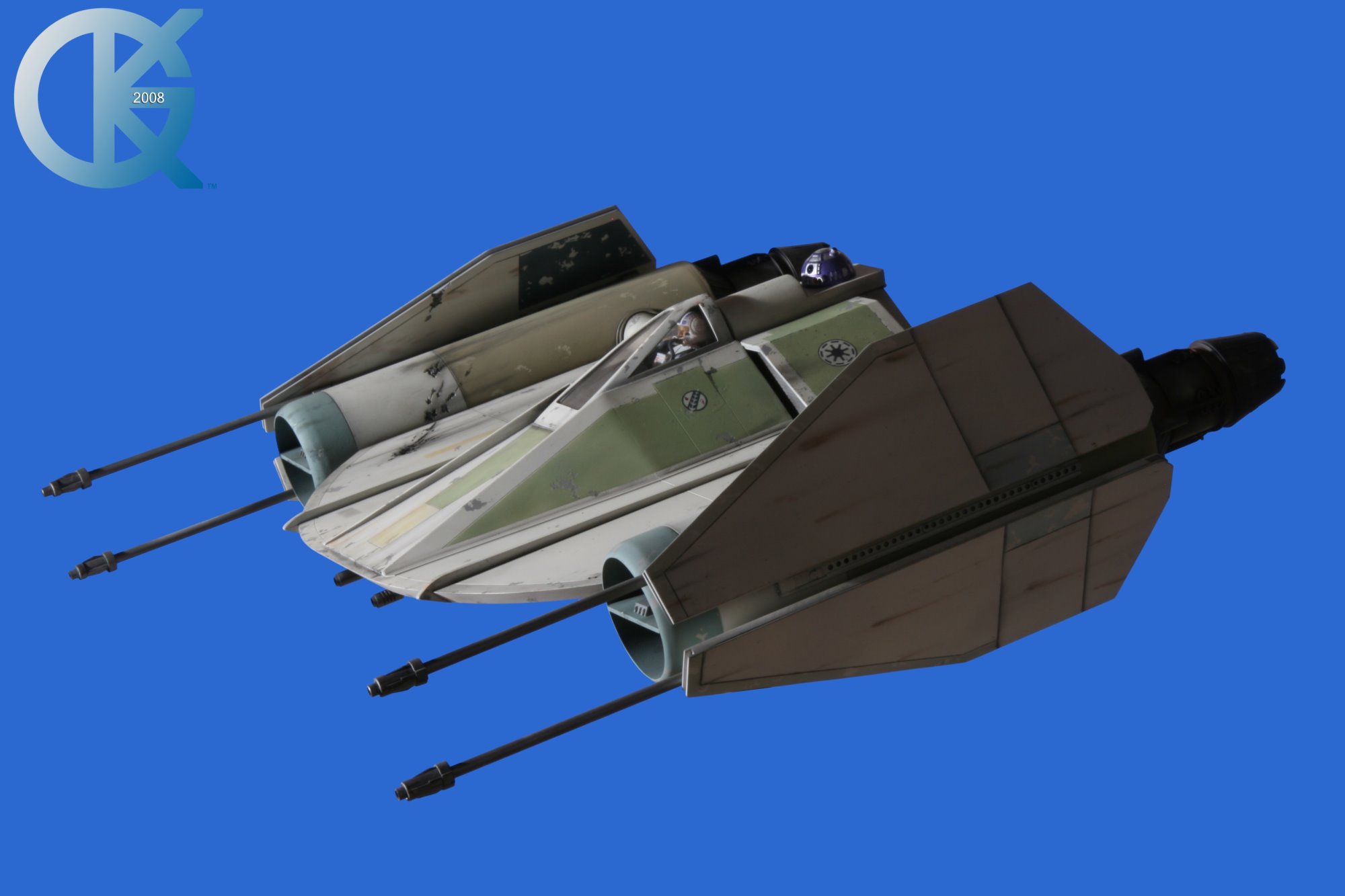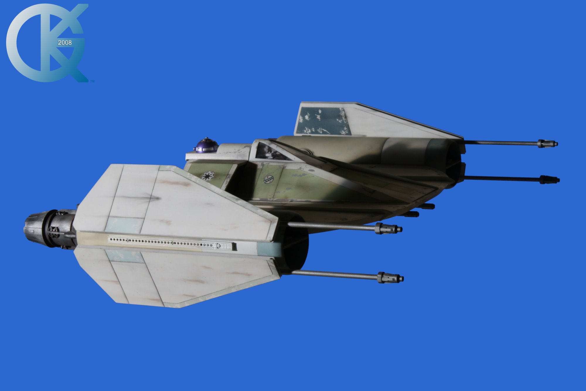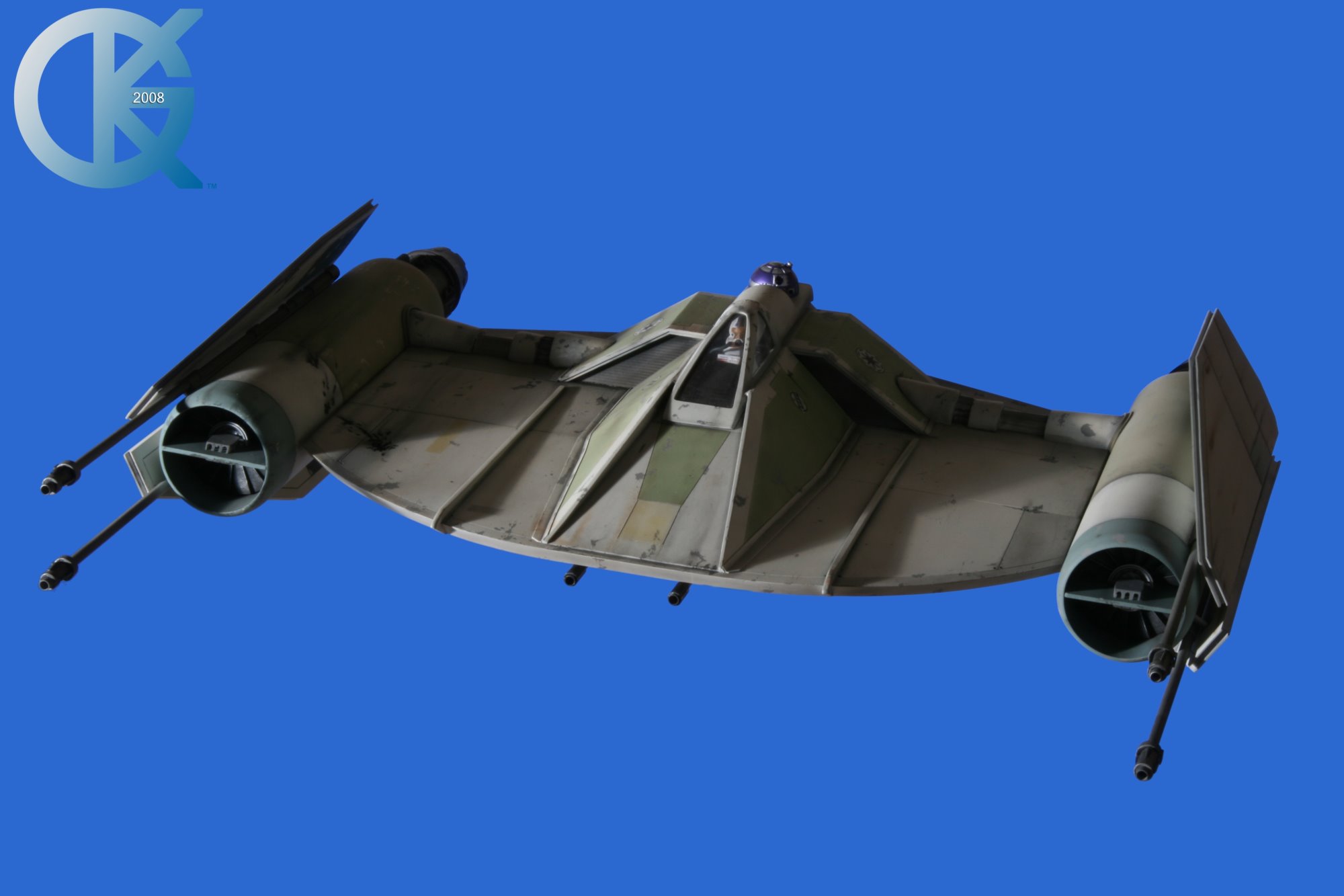 A little over a decade ago, a talented artist created something for me from the concept artwork of ILM artist Warren Fu. It is a design that I thought quite fantastic, and sadly it did not make the cut for the STAR WARS Prequel Films (as it was designed for Return of the Sith). Never the less…. this was the first to be replicated from Warren’s concept… and it was done in 1/18 scale. Another was made in a smaller scale a year or so later by famed artist Lasse Henning. In this one, we placed Captain Rex in the pilot seat, as I thought it appropriate to do so given the time line this fighter represented. I love this piece…. and it shall not be left behind in any less featured ship designs. This one is the only one in known existence in this size.