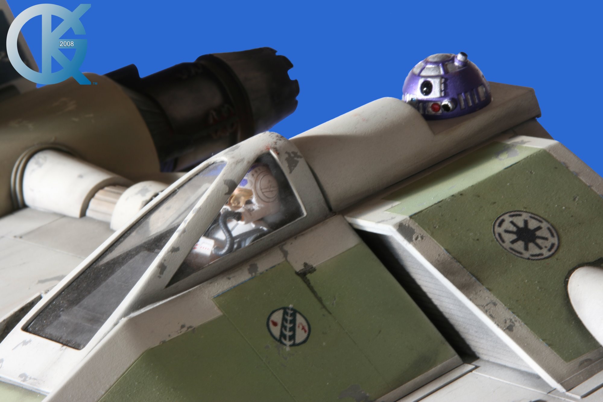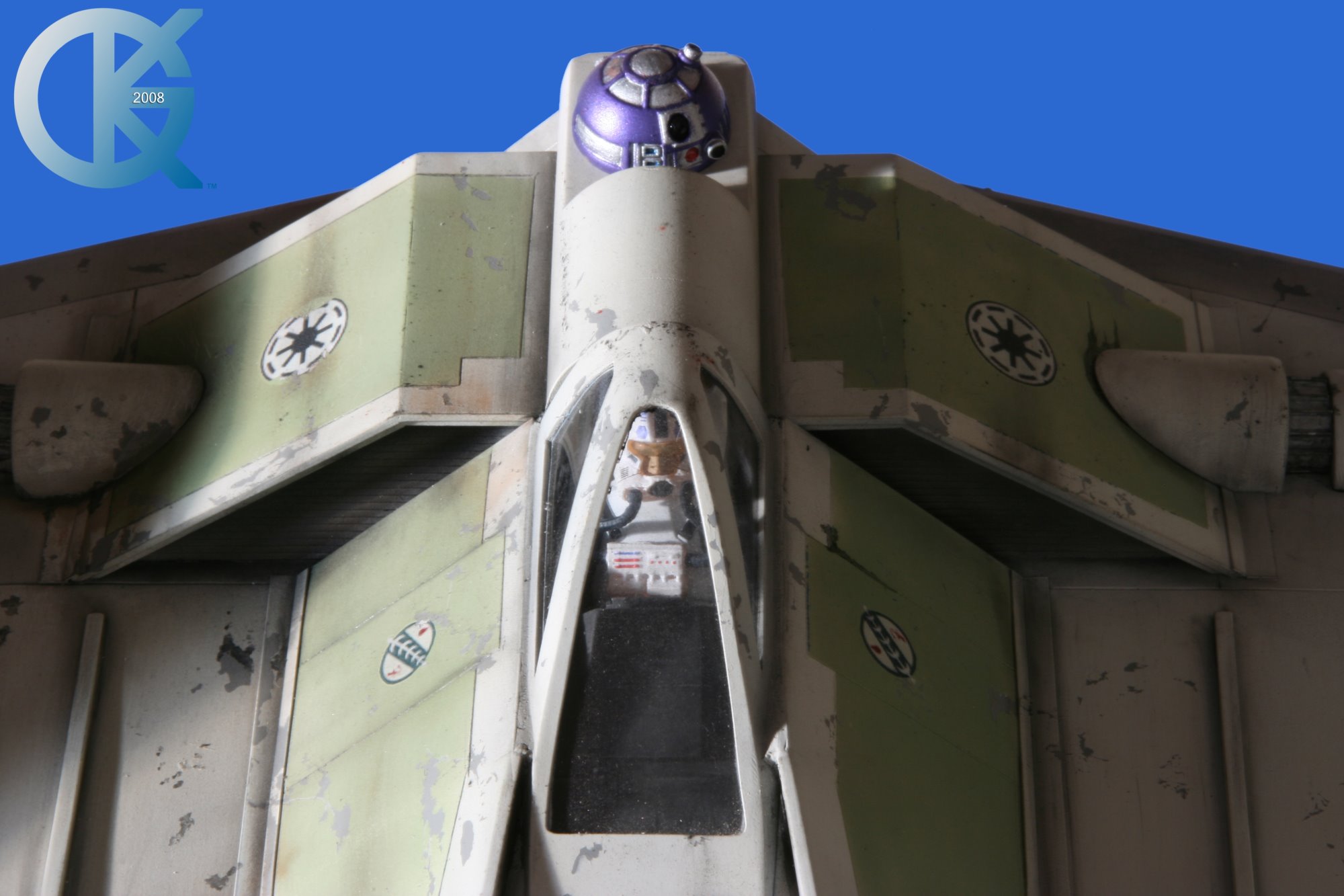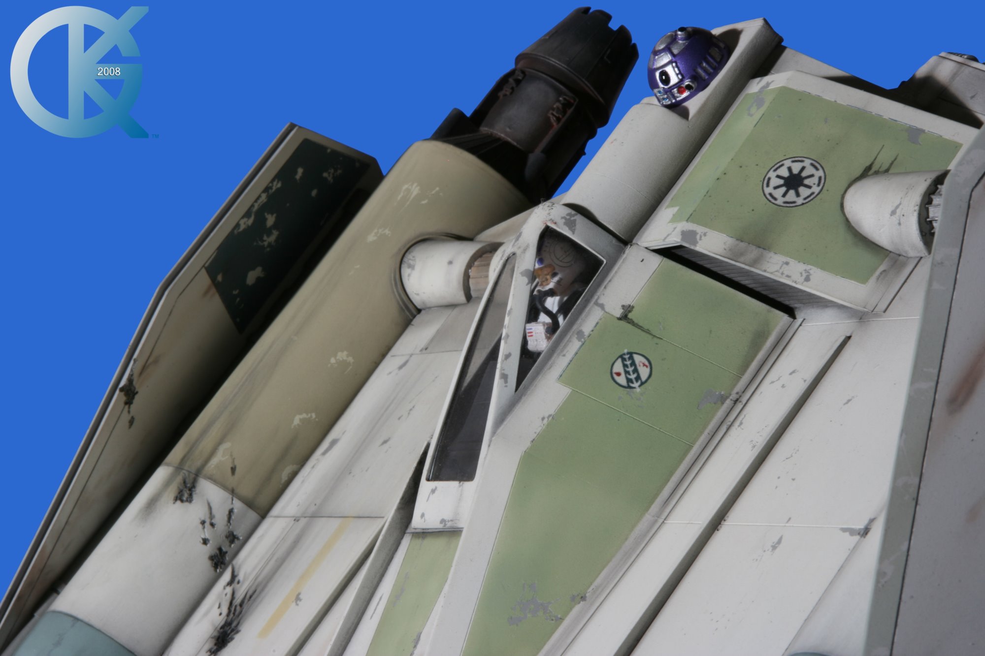 Of the Composite I created back then, utilizing my Blue Screen Photos of the model, I featured it here on Modeler Magic on November 20, 2009. I felt it greatly fit into the films… and I hope you enjoy it. It is called “The Clone Wars”.